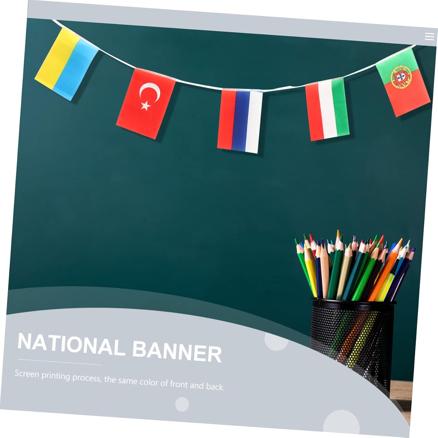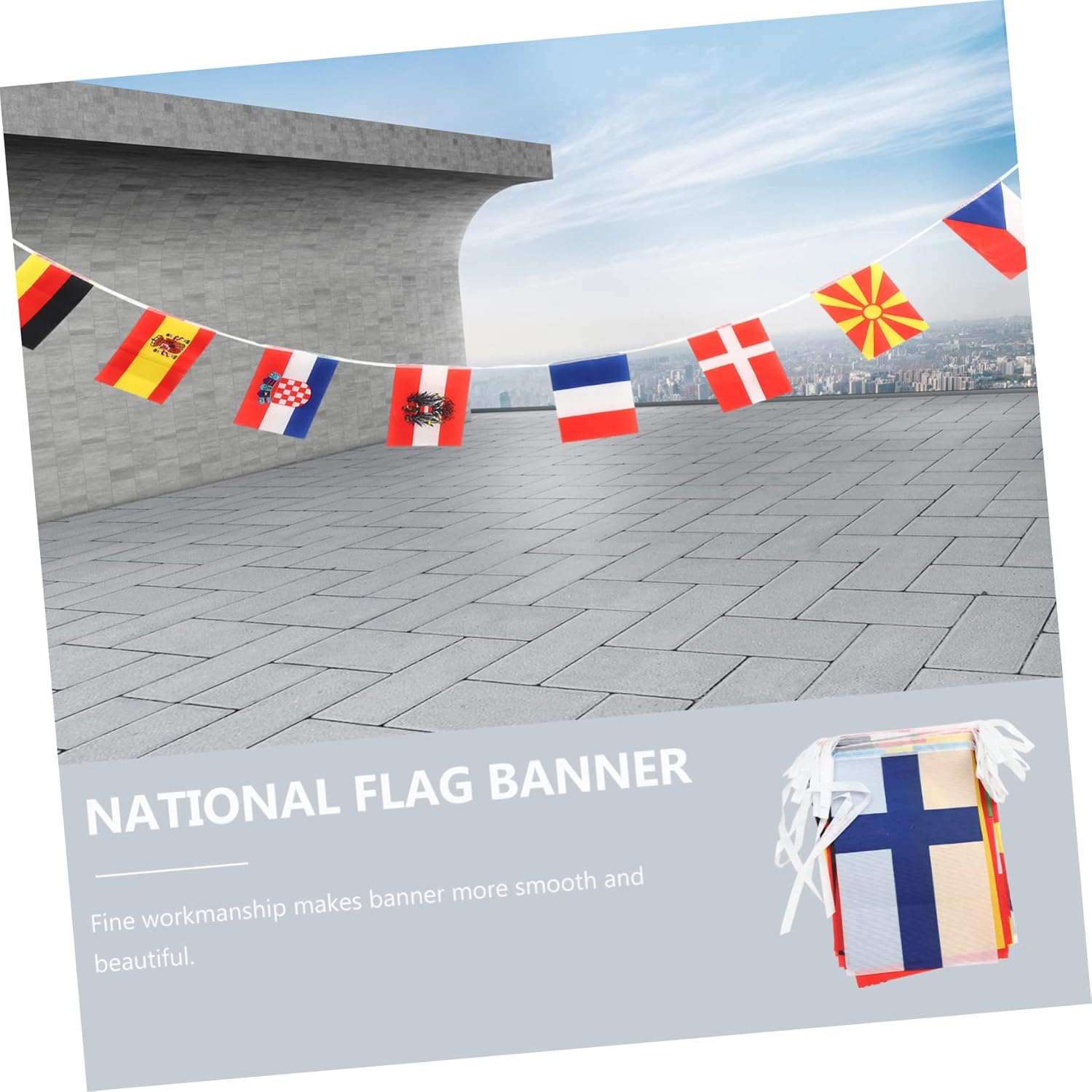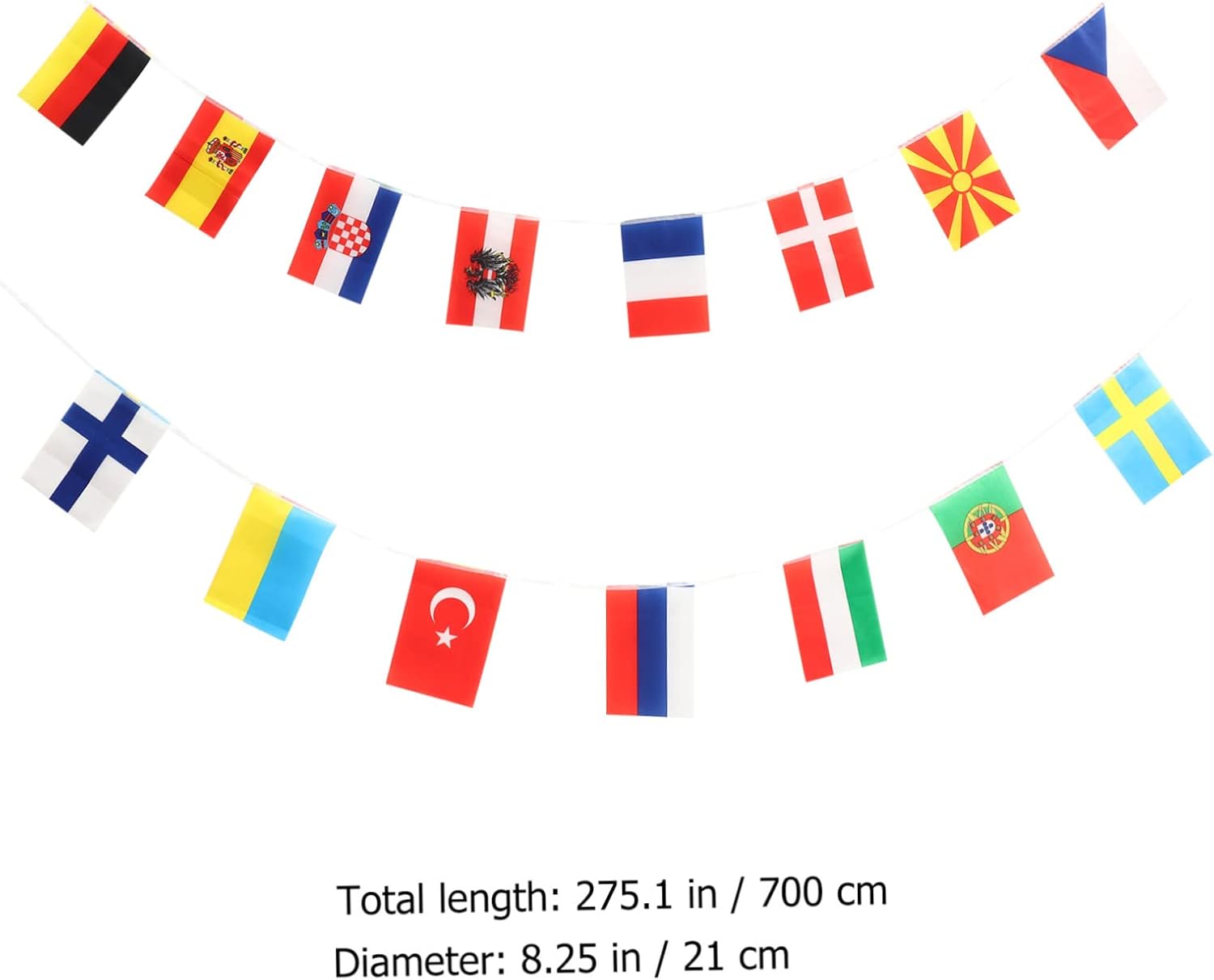 Realizzato in poliestere con la corda a doppio strato che non si rompe facilmente. Apprezzerai appieno l'artigianalità e la qualità di queste bandiere a corda. Concorsi internazionali, simposi, feste di benvenuto o l'inaugurazione della vostra azienda, qualunque sia l'occasione, queste bandiere Sait possono essere combinate direttamente con altre decorazioni! Preparatevi per la Coppa dei Campioni 2021! Non importa se sei un appassionato di calcio o il proprietario di un bar sportivo. Lo augurerai al tuo prossimo evento! Aggiunge una bellissima atmosfera per feste a tema, giochi sportivi, eventi celebrativi internazionali, fiere del patrimonio culturale, cene e altri festival. Facile per decorare la serata interculturale della scuola, il locale/area ristorazione e celebrare la festa per iniziare la circumnavigazione.
