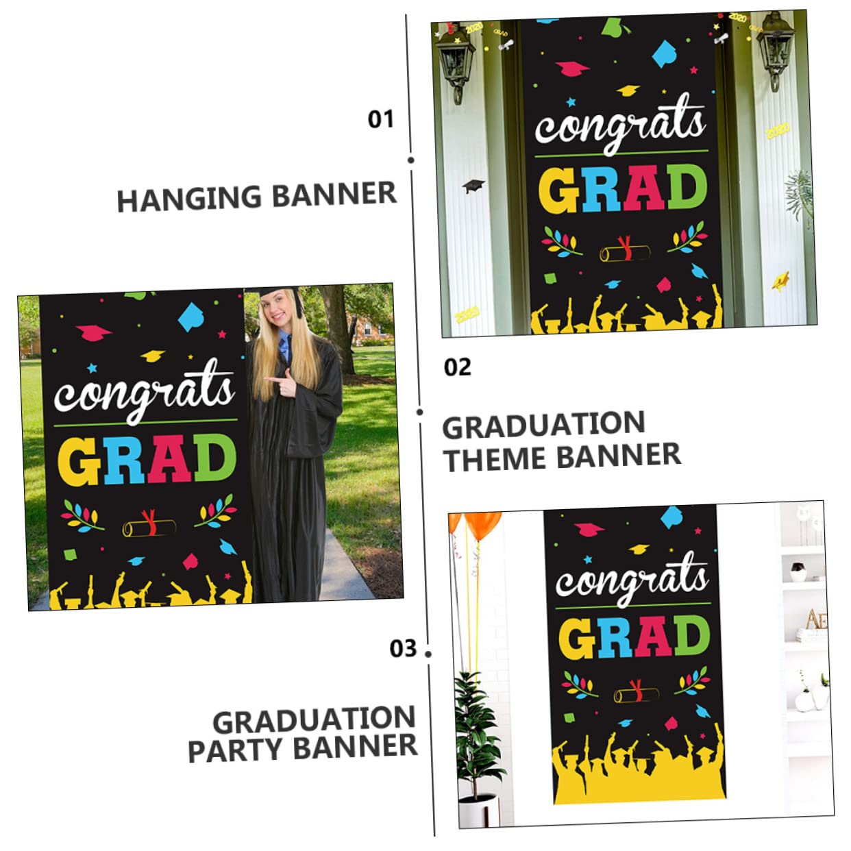 Ghirlanda di striscioni di laurea - per college, scuola superiore, laurea 2021, festa di laurea. Banner a tema di laurea - Con un design raffinato, motivi di stampa chiari e dimensioni adeguate, facile da appendere, festa di laurea. Banner fotografico: adatto per lauree, feste, riunioni, ecc., facile da creare un'atmosfera festosa, forniture per feste. Banner di sfondo: uno striscione per feste come divertente supporto fotografico di laurea per le foto della festa!, forniture per feste. Sfondo fotografico di laurea: presenta dettagli e lavorazione, banner per feste di laurea.