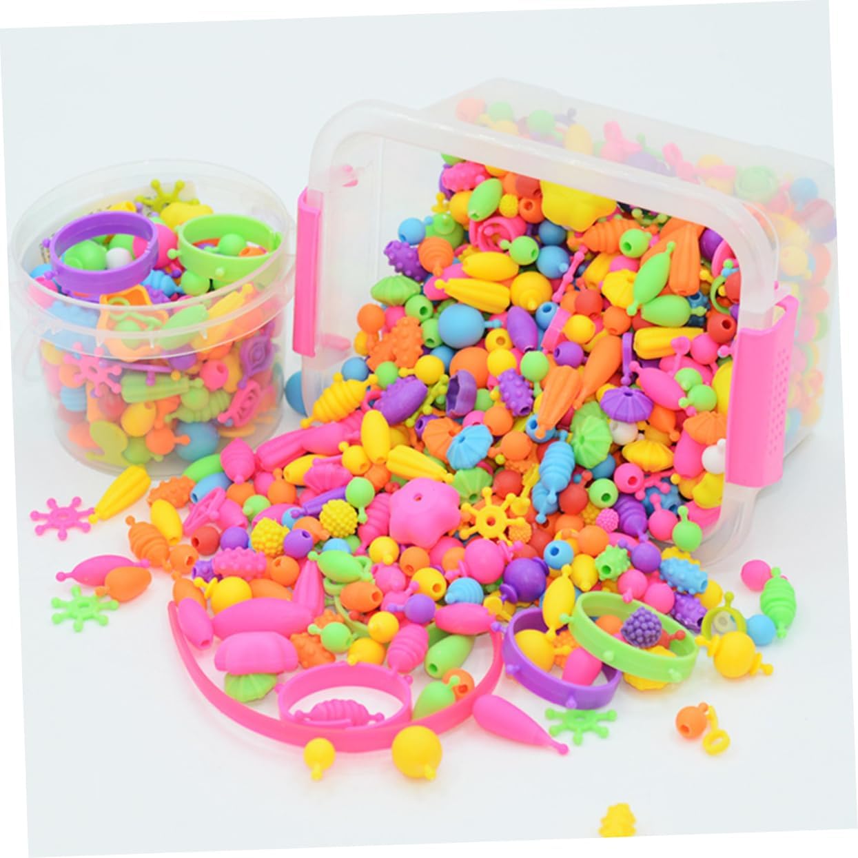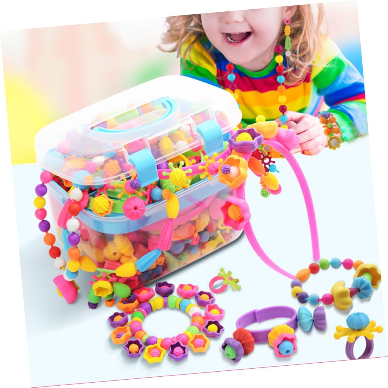 Rendere i bambini silenziosi, aiutare i bambini a migliorare la coordinazione occhio-mano, la creatività e così via Viene fornito con una scatola, la scatola è composta da tipi di perline fai da te colorate e adorabili con diverse dimensioni e forme Che è adatto alle ragazze per realizzare braccialetti, collane e altri mestieri Realizzato in materiale plastico per un uso duraturo, e decorativo Questi reperti di gioielleria sono conservati separatamente in un contenitore trasparente, il che è utile per scoprire rapidamente i componenti