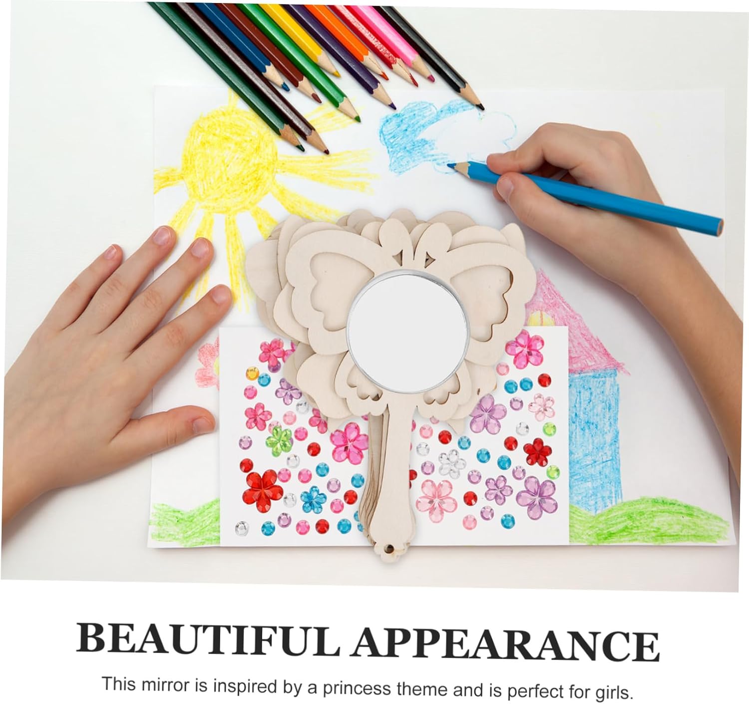 Artigianato eccezionale: questo specchio in legno è realizzato con un artigianato eccezionale, che lo rende un pezzo decorativo ideale per bambini, artigianato con farfalle, specchio carino Facile da trasportare: le sue dimensioni portatili lo rendono comodo da portare in , adatto a diverse occasioni e utenti, specchio fatto a mano vuoto, specchi portatili Design a tema principessa: con un design ispirato alle principesse, è adatto ai piccoli che amano e raccontano storie, dipingono specchi, delicati specchietti a mano Comodo e portatile: le sue dimensioni compatte e la sua leggerezza lo rendono facile da trasportare, adatto a varie occasioni e utenti, specchio portatile, specchi in legno non finiti Fai da te creativo: consente ai bambini di esprimere la propria creatività dipingendo e decorando lo specchio, promuovendo le proprie capacità artistiche, specchio portatile non finito, specchietti manuali con maniglia