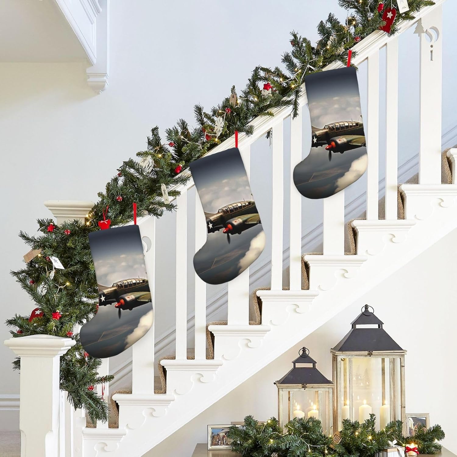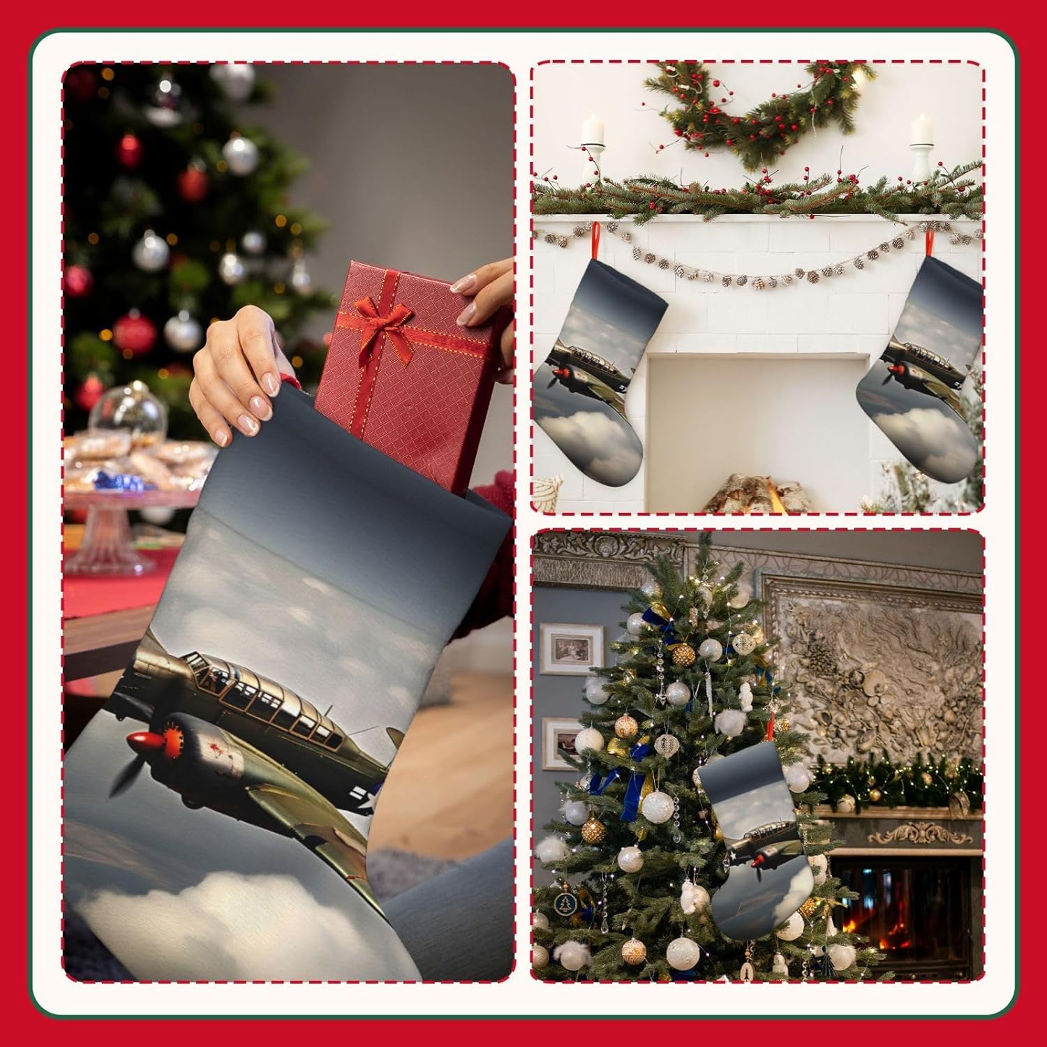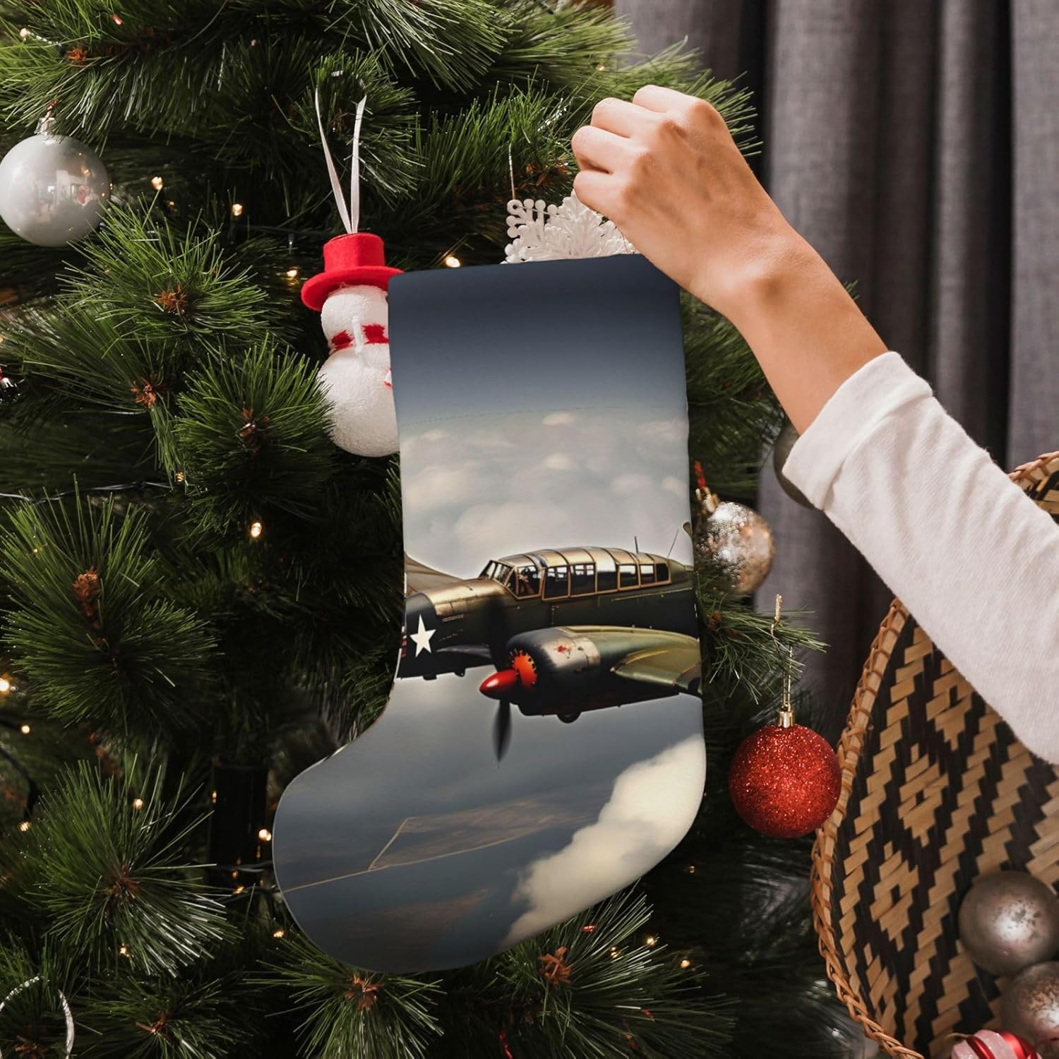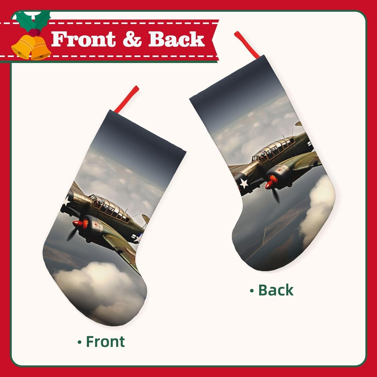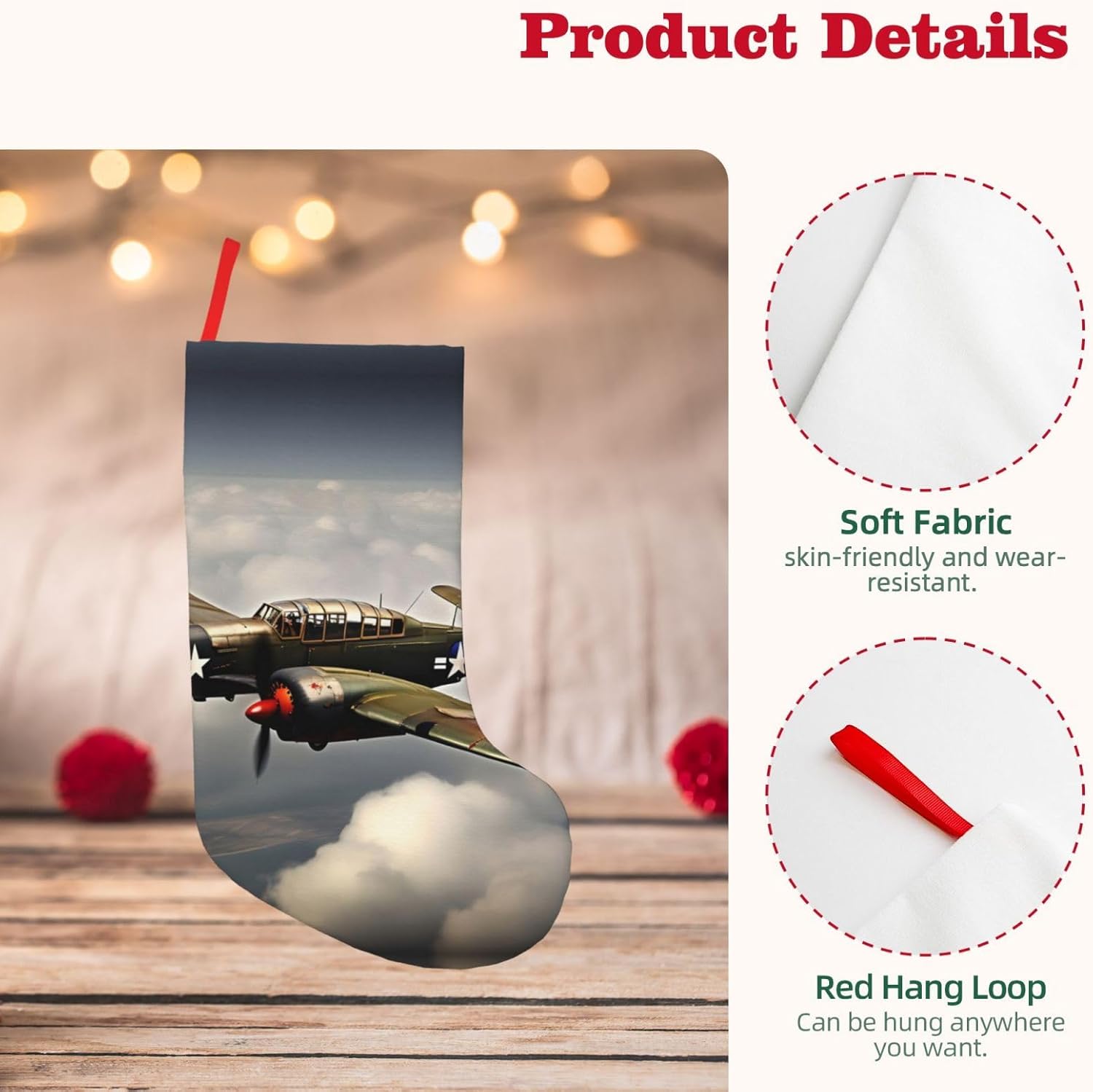 KoNsev Calza di Natale da 45,7 cm per ragazzi e ragazze, grandi calze di Natale per vacanze in famiglia, festa di Natale, stampa aerei della seconda guerra mondiale