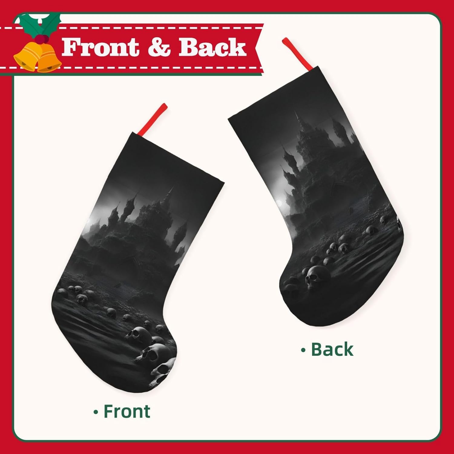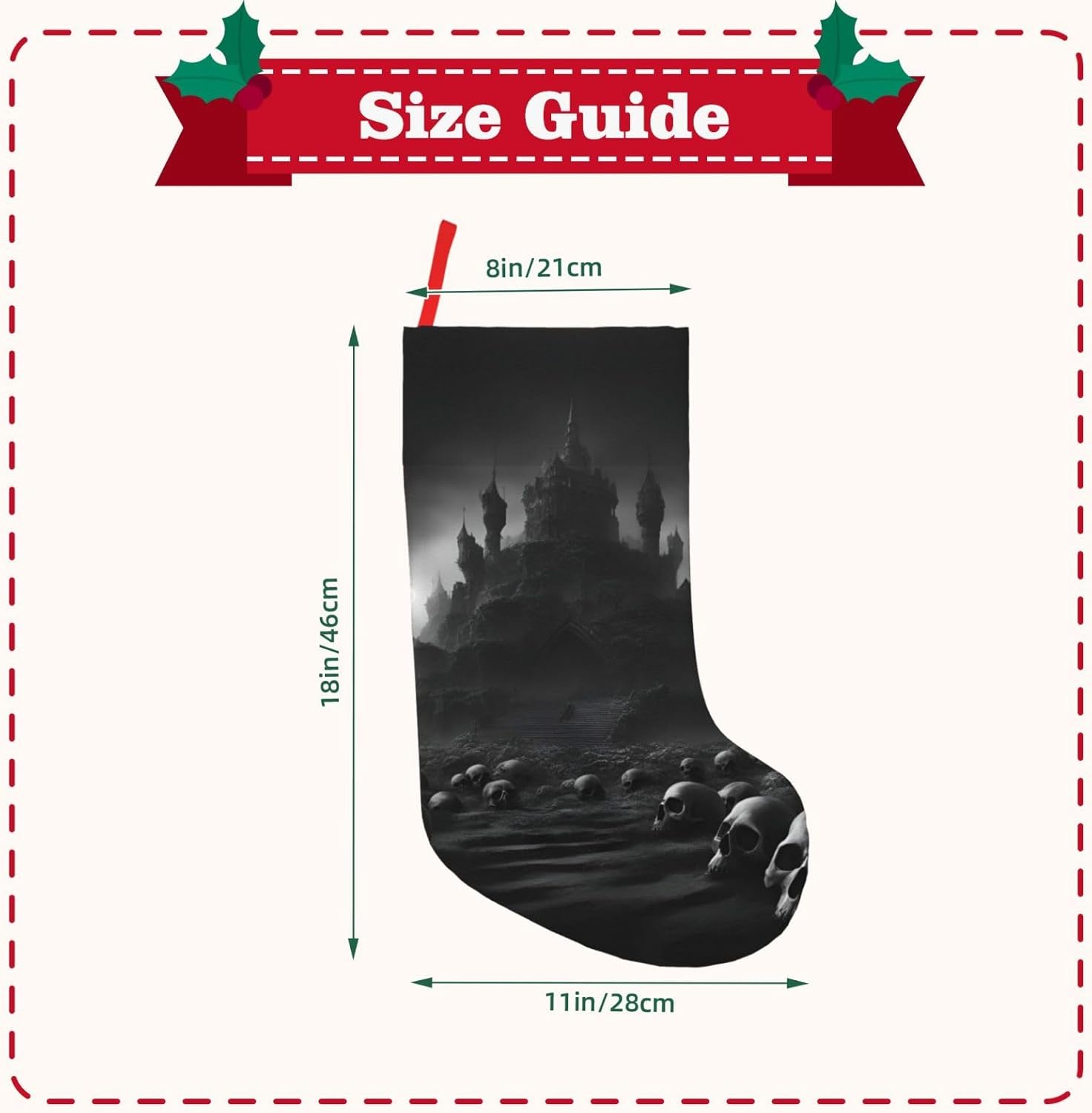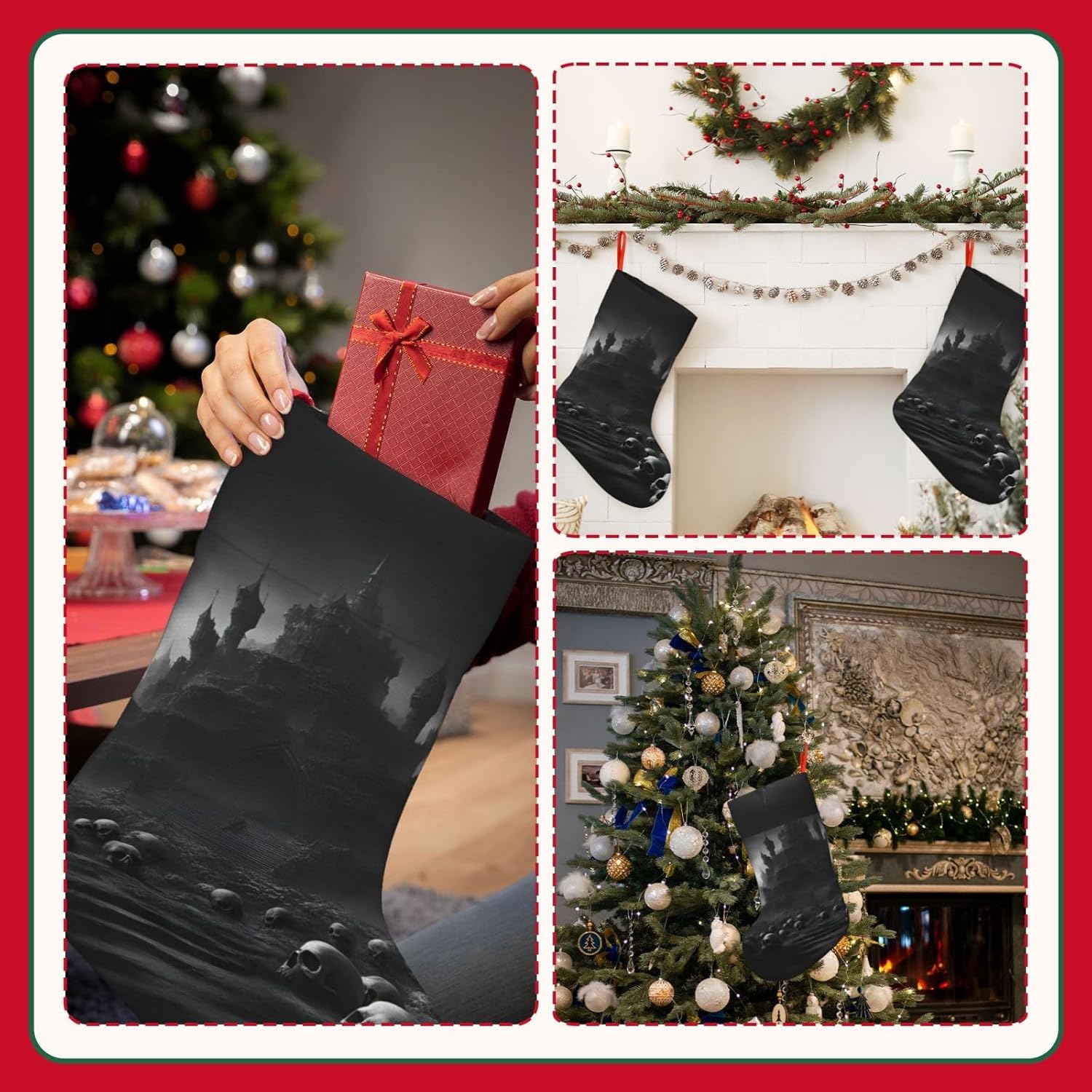 KoNsev Calza di Natale da 45,7 cm per ragazzi e ragazze, grandi calze di Natale per vacanze in famiglia, festa di Natale, stampa con teschi bianchi e neri