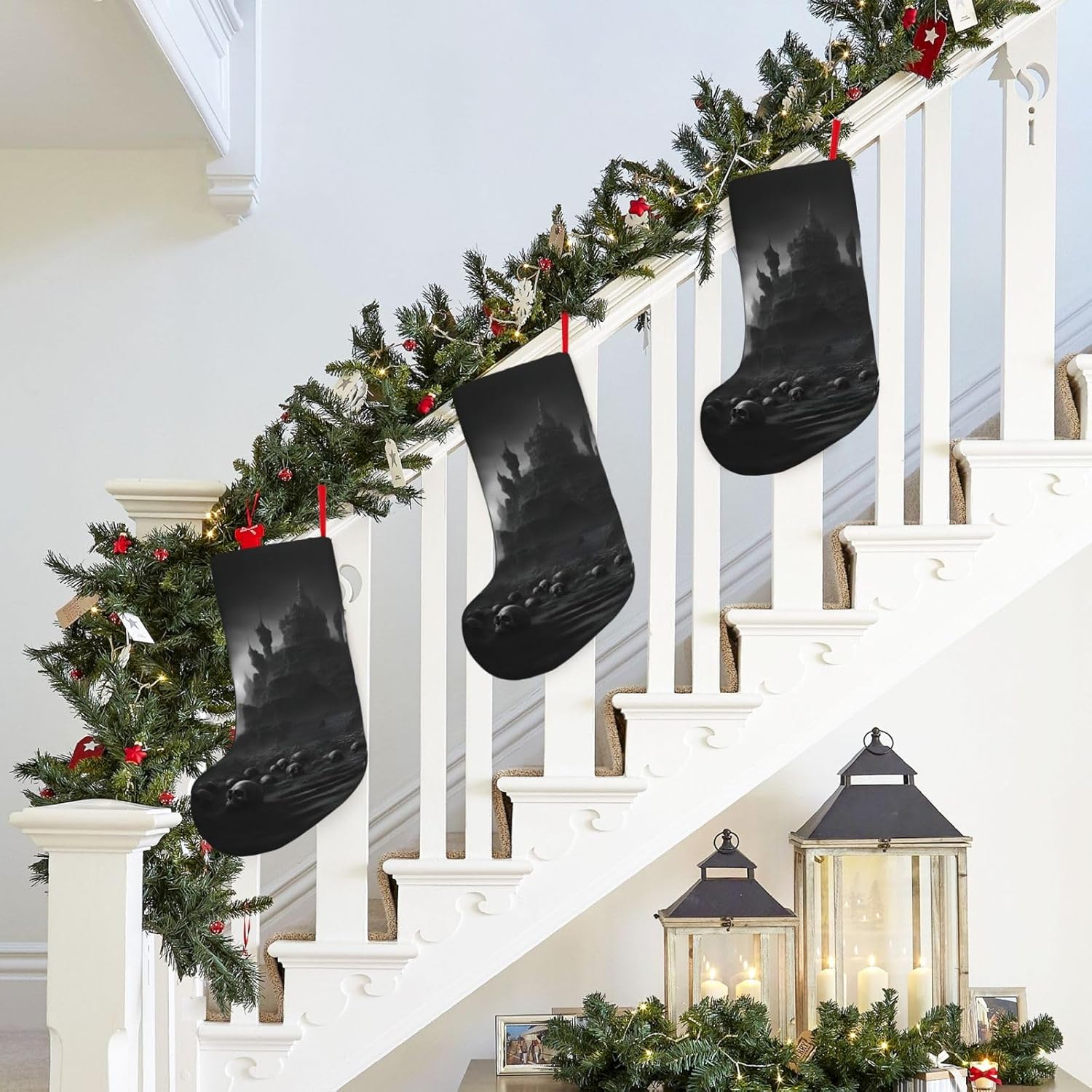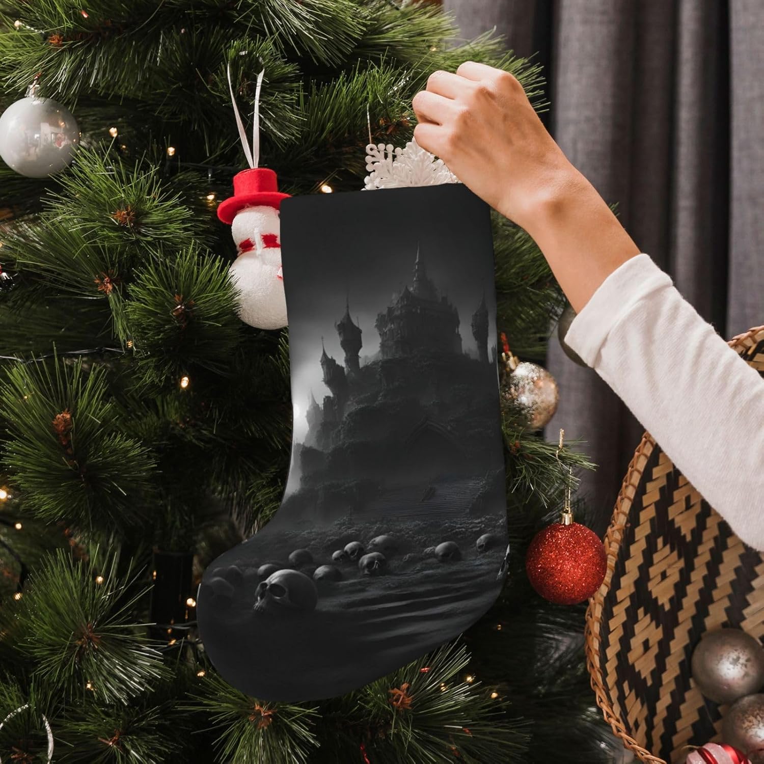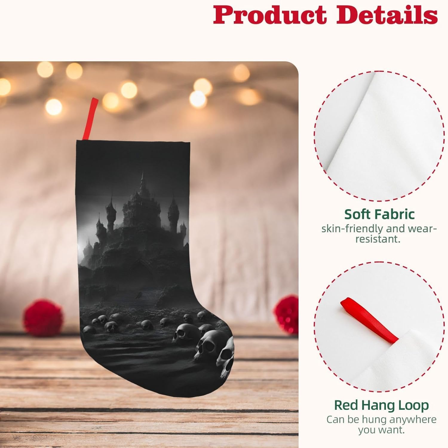 KoNsev Calza di Natale da 45,7 cm per ragazzi e ragazze, grandi calze di Natale per vacanze in famiglia, festa di Natale, stampa con teschi bianchi e neri