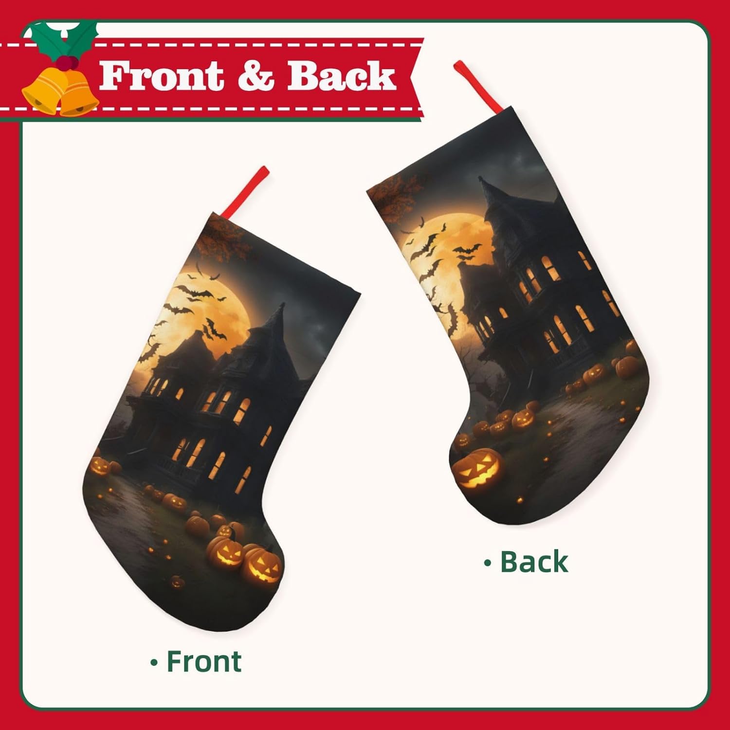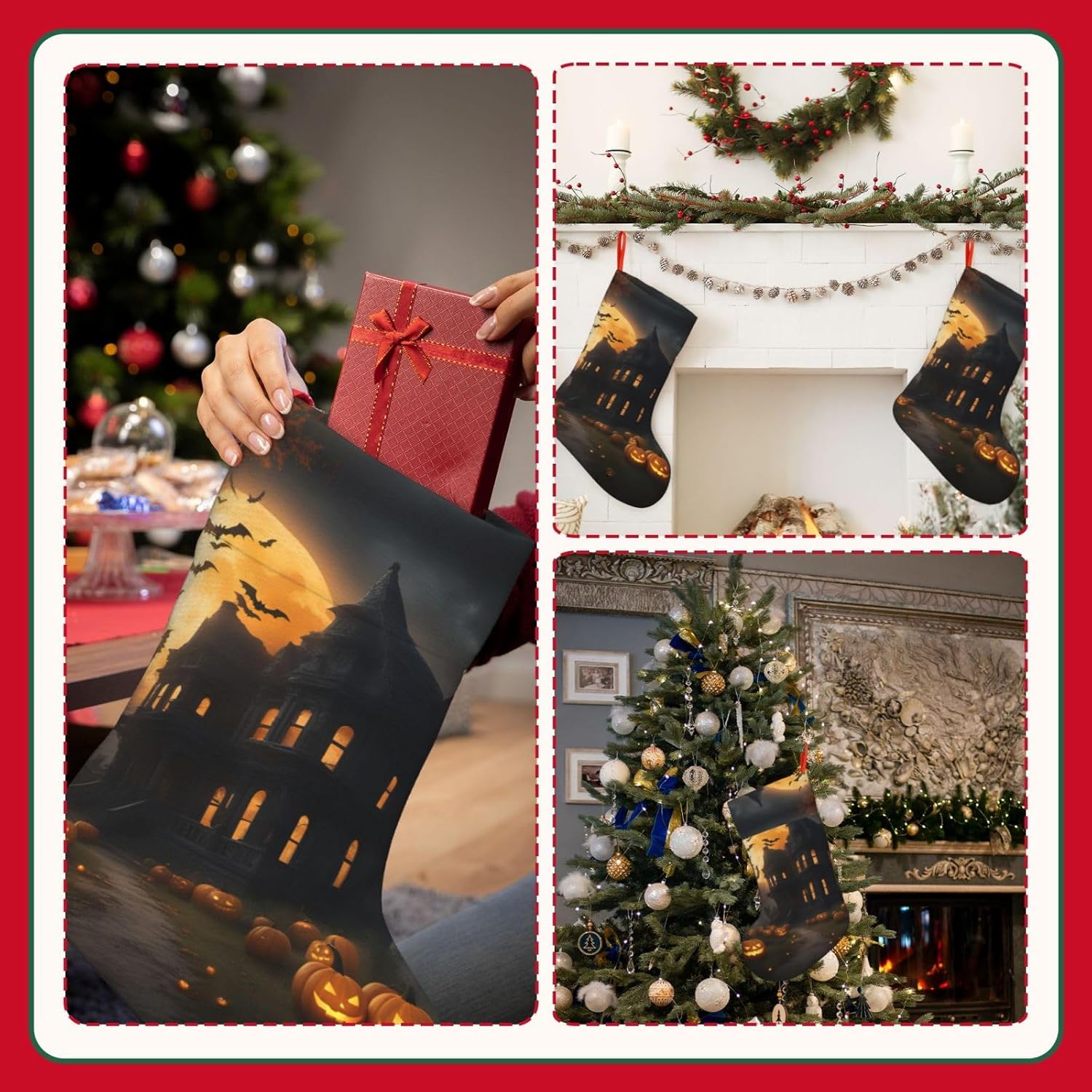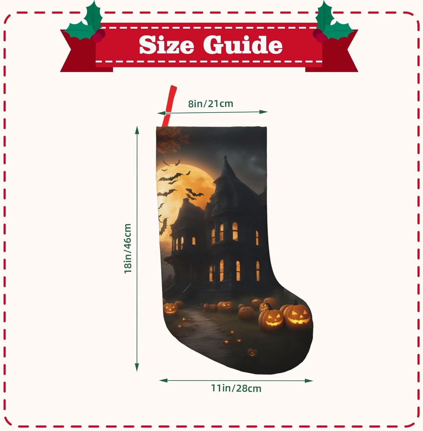 KoNsev Calza di Natale da 45,7 cm per ragazzi e ragazze, grandi calze di Natale per vacanze in famiglia, festa di Natale, stampa Happy-Halloween-Day-Trick-Or-Treat