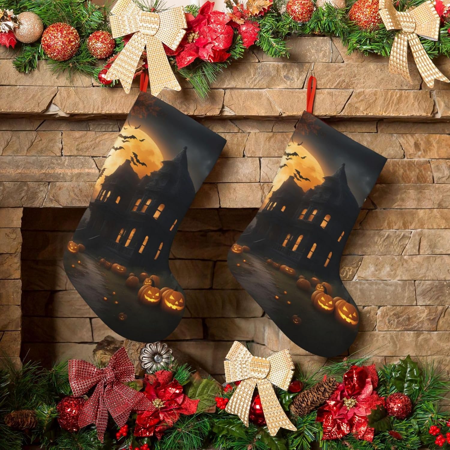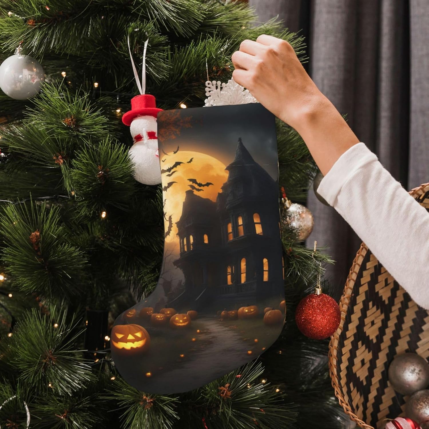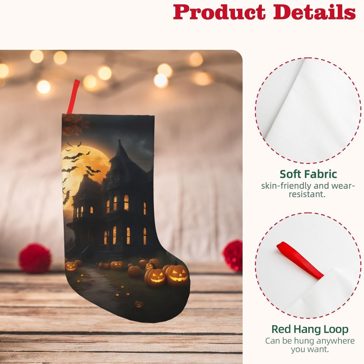 KoNsev Calza di Natale da 45,7 cm per ragazzi e ragazze, grandi calze di Natale per vacanze in famiglia, festa di Natale, stampa Happy-Halloween-Day-Trick-Or-Treat