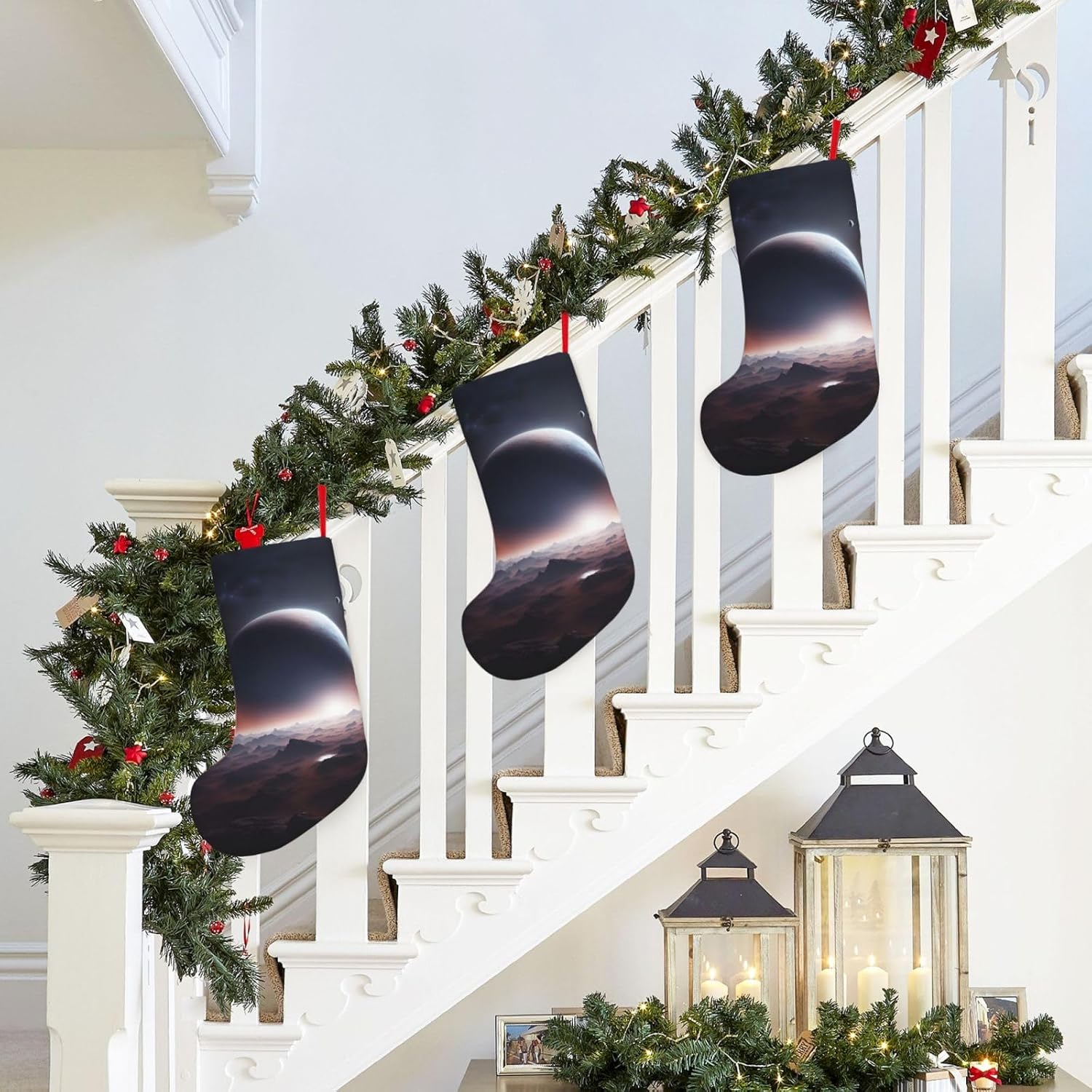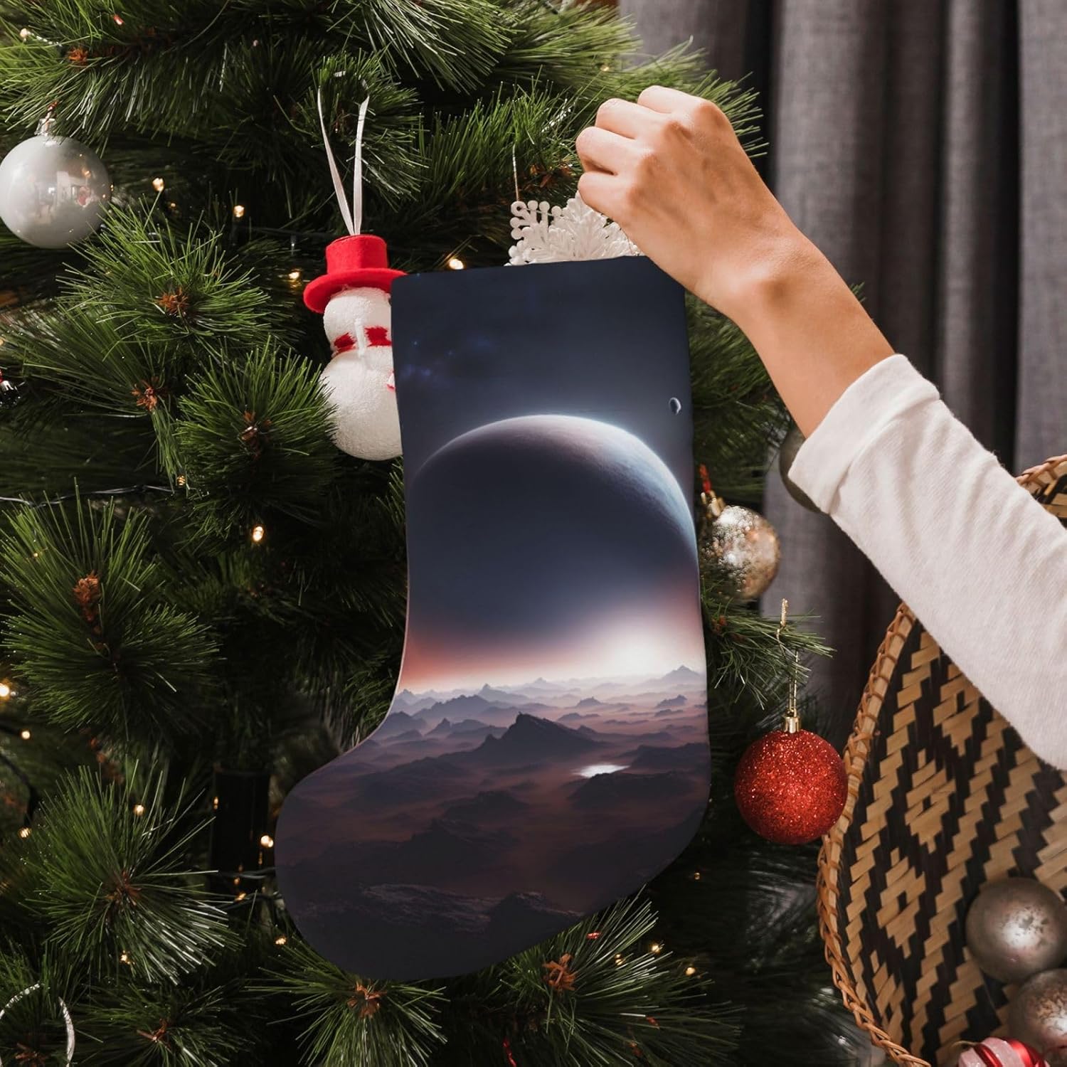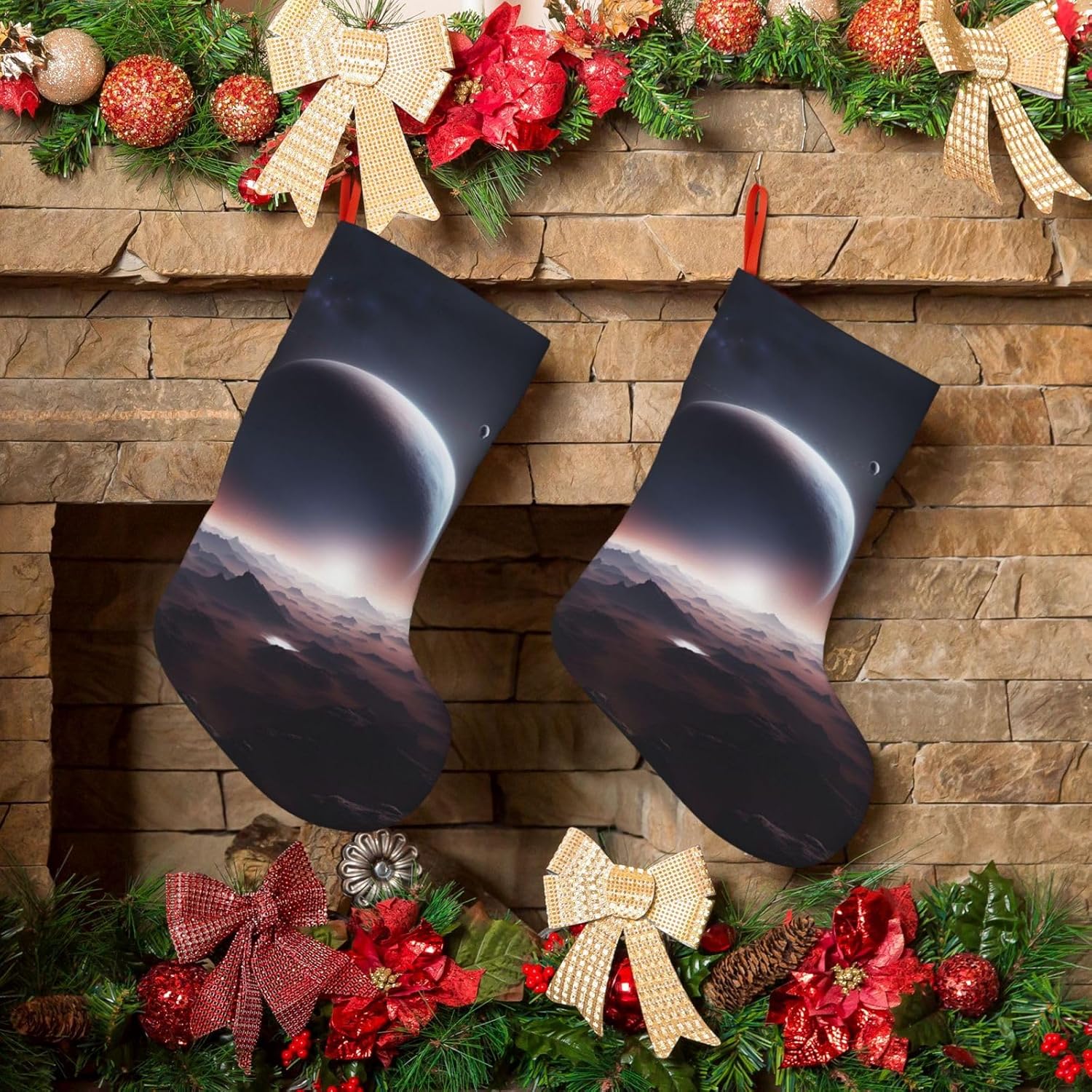 KoNsev Calza di Natale da 45,7 cm per ragazzi e ragazze, grandi calze di Natale per vacanze in famiglia, festa di Natale, stampa pianeta spaziale