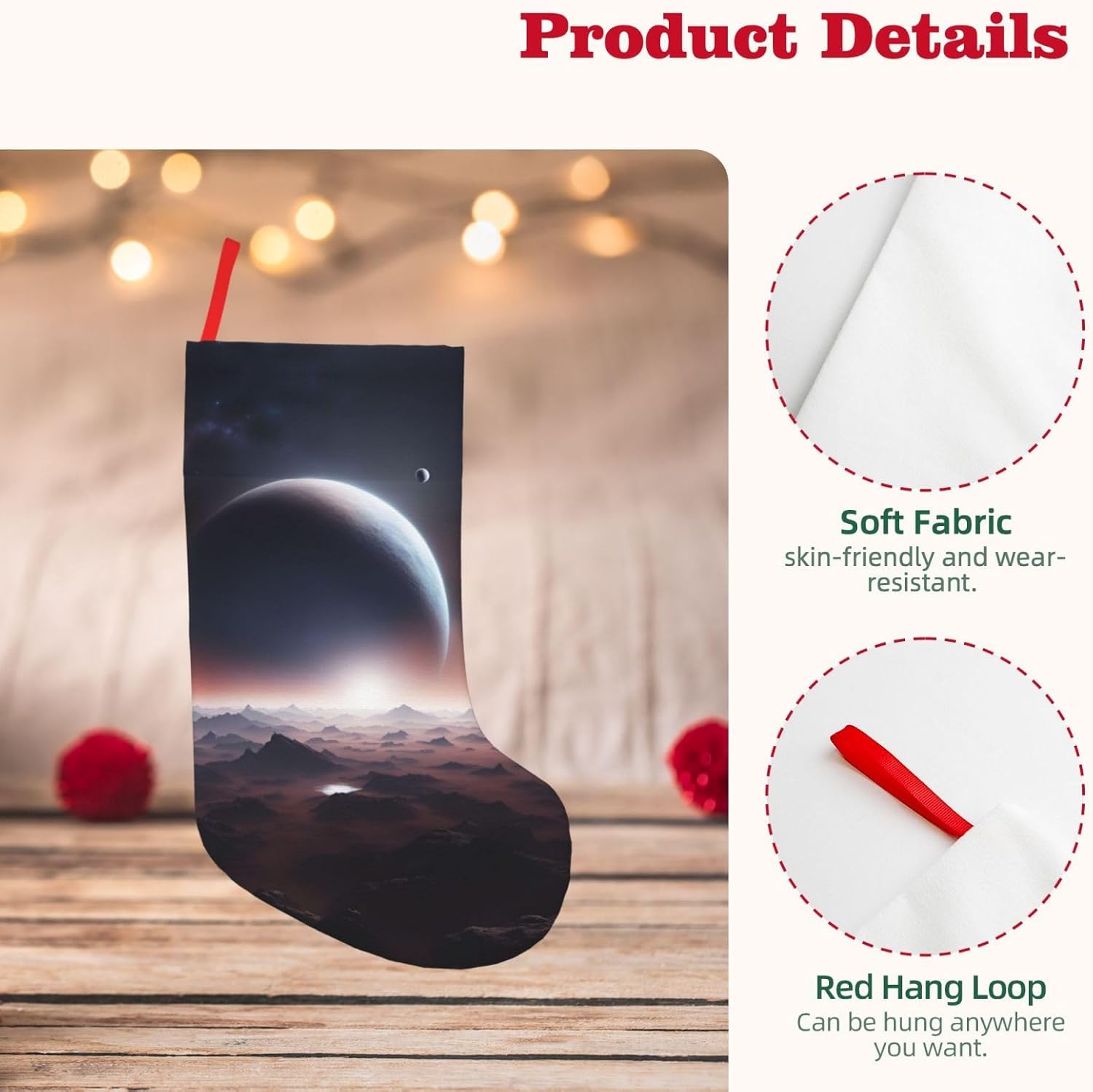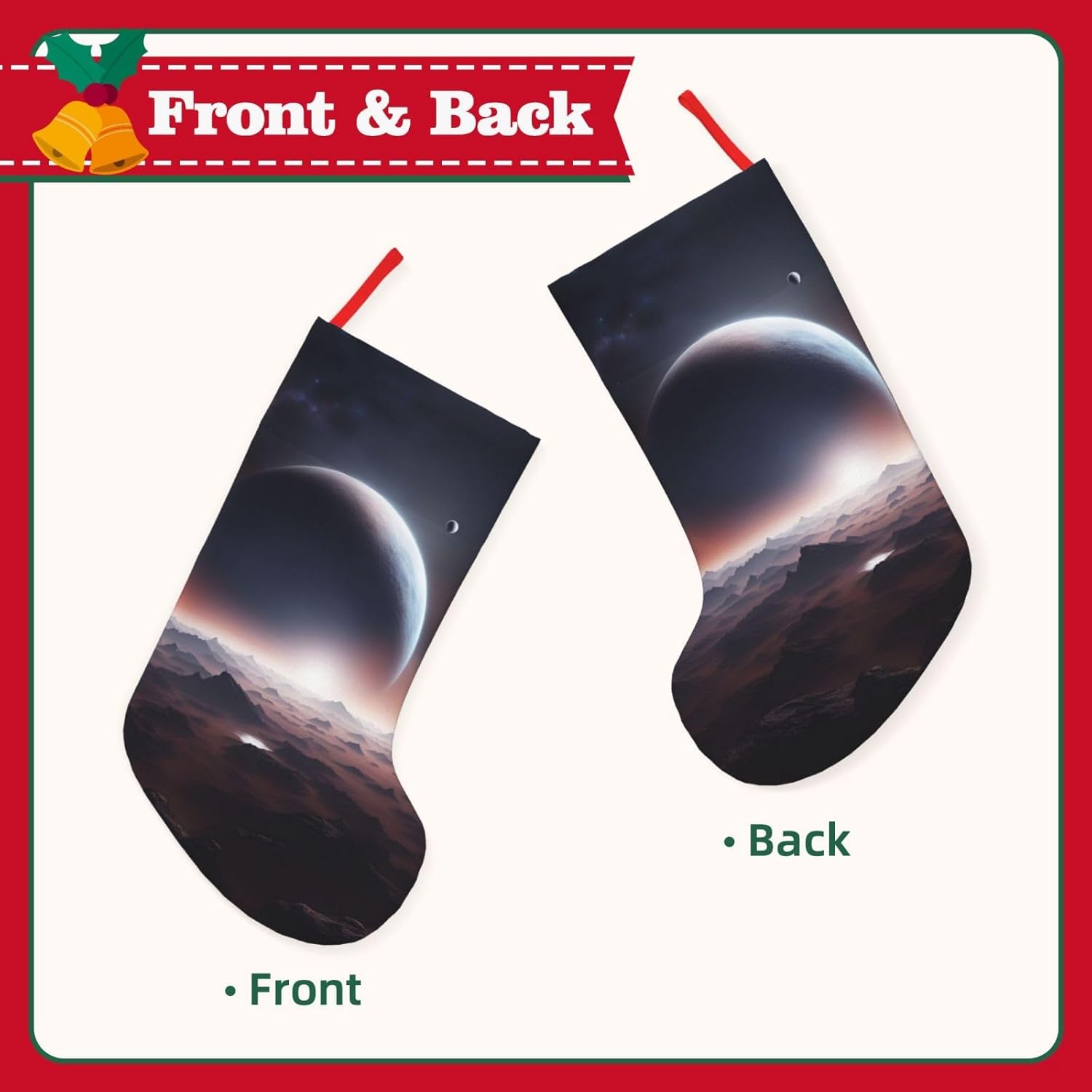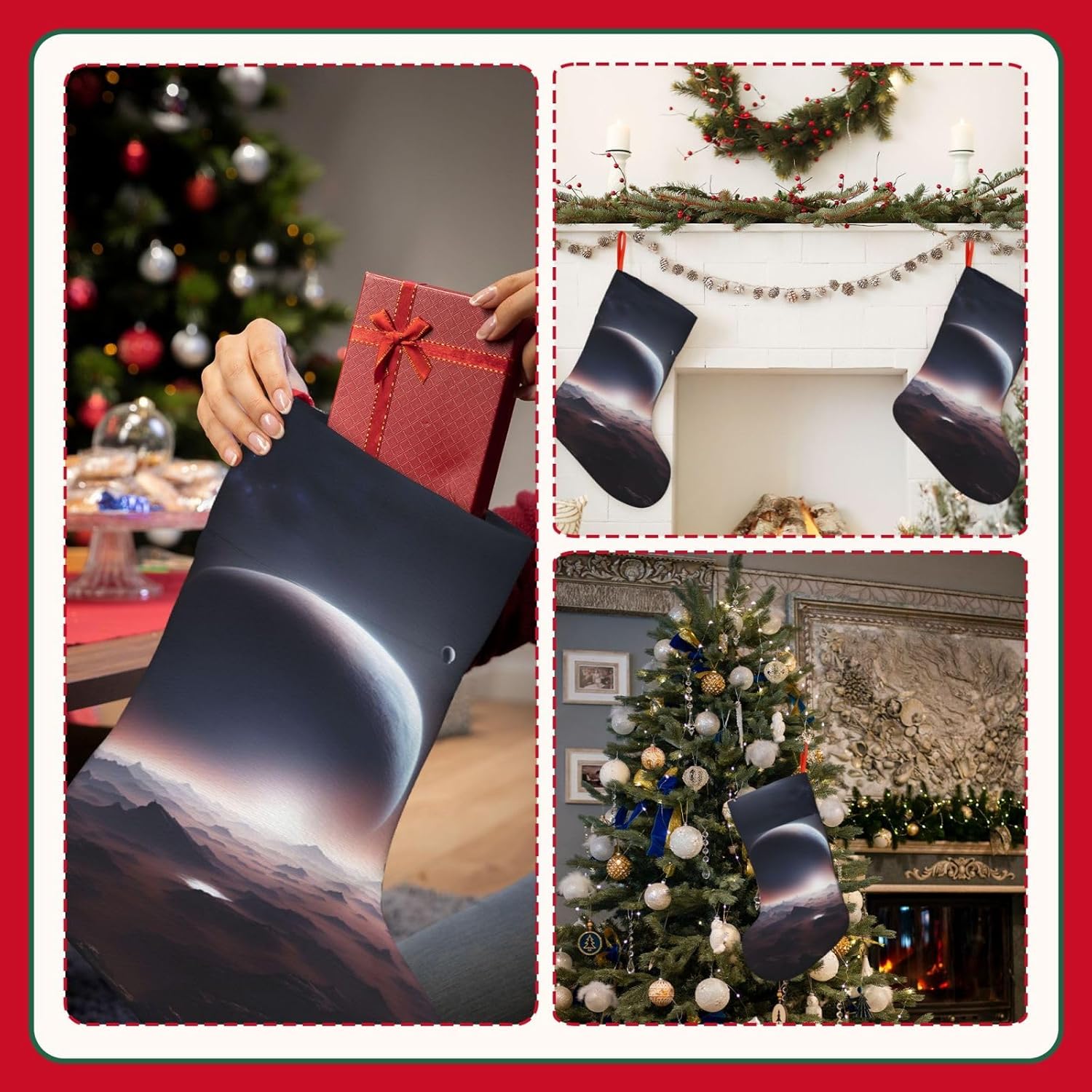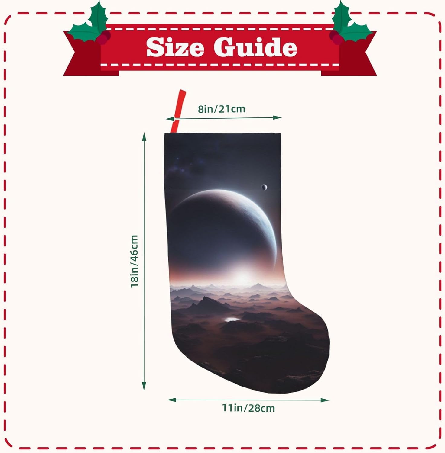 KoNsev Calza di Natale da 45,7 cm per ragazzi e ragazze, grandi calze di Natale per vacanze in famiglia, festa di Natale, stampa pianeta spaziale