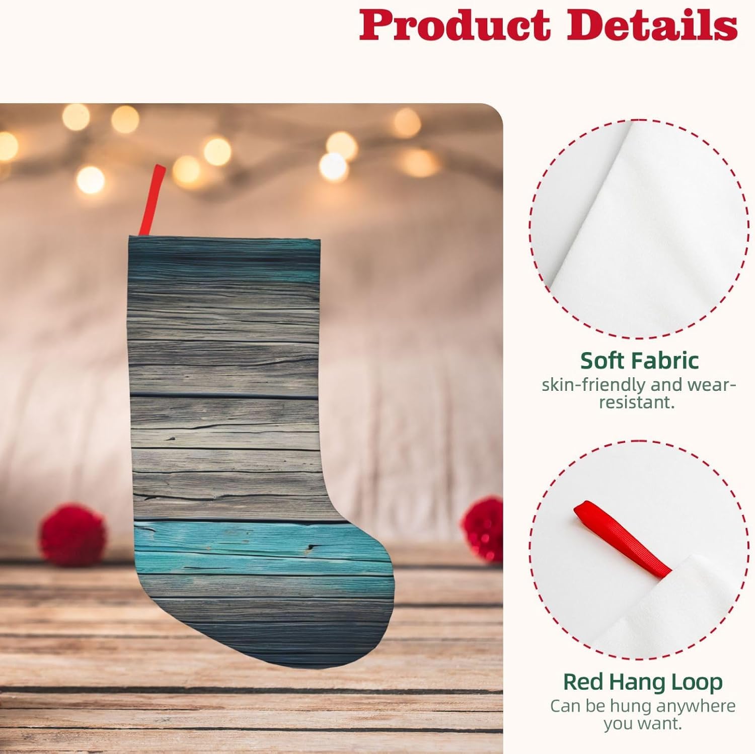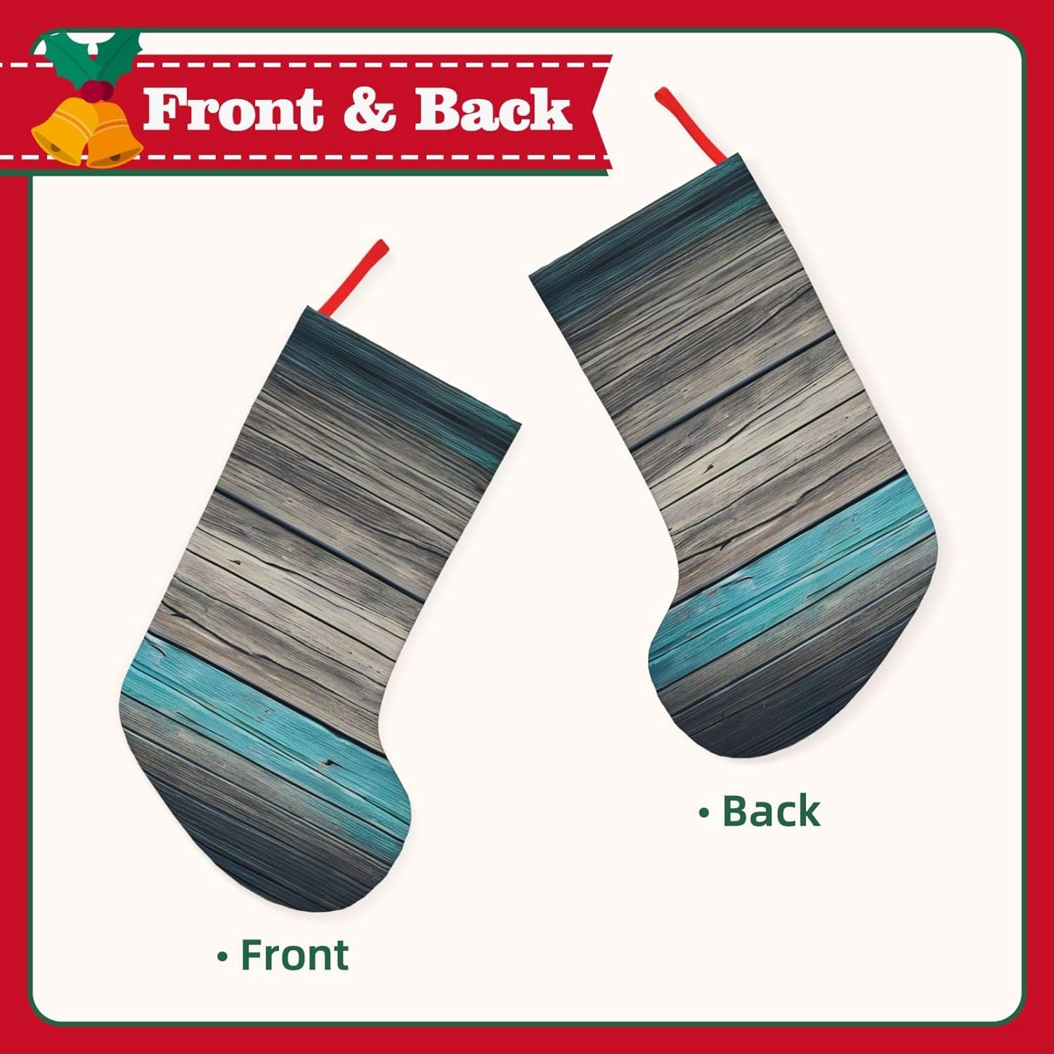 KoNsev Calza di Natale da 45,7 cm per ragazzi e ragazze, grandi calze di Natale per vacanze in famiglia, feste di Natale, stampa con assi invecchiate