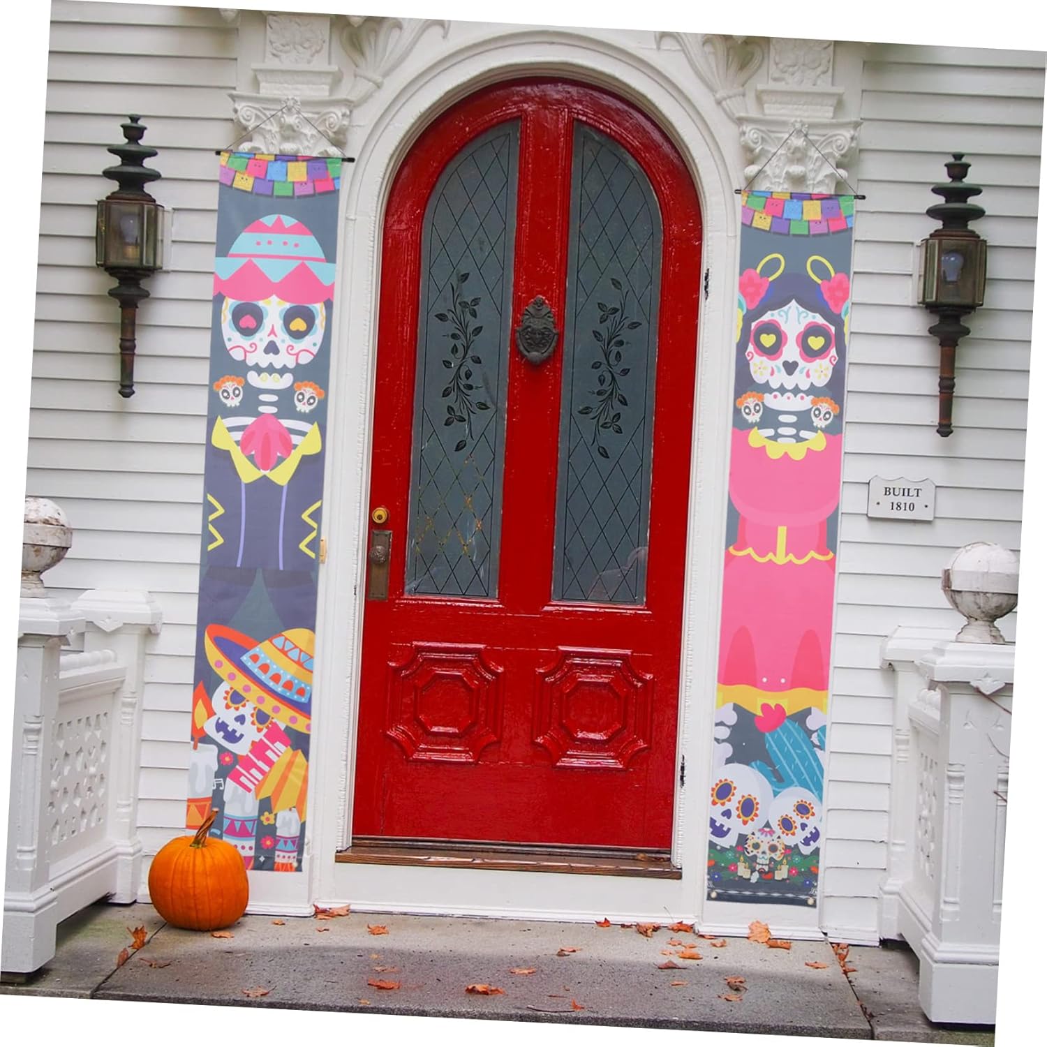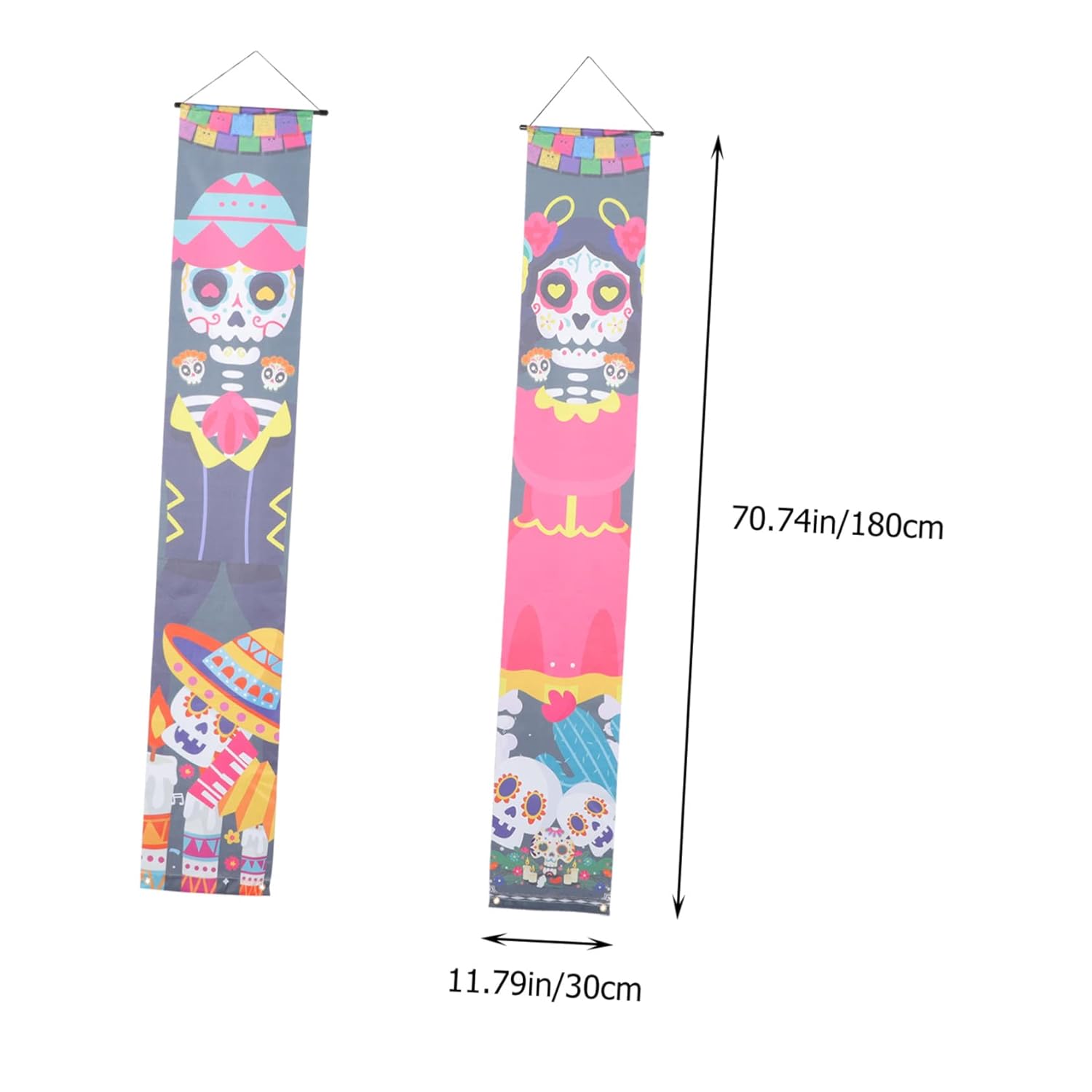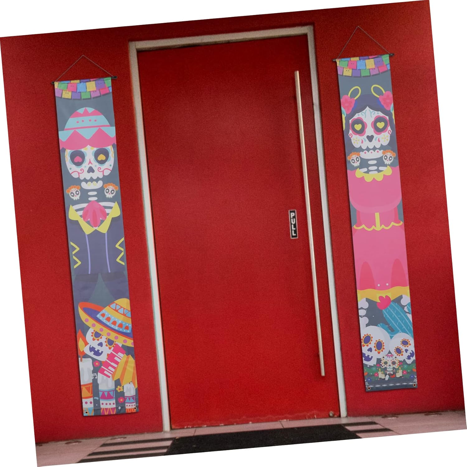 Decorazione della porta d'ingresso: appendi il cartello del portico del Giorno dei Morti a casa, ufficio, patio, portico, porta d'ingresso o finestra. È uno per le celebrazioni del festival e gli striscioni delle coppie di Halloween. Decorazioni per portico: puoi anche usarlo come fantastico sfondo per cabine fotografiche per feste, colori vivaci e lavorazione meravigliosa, decorare come ornamenti per esterni. Decorazioni di Halloween: struttura semplice, molto facile da installare sulla porta d'ingresso e facile da rimuovere quando non in uso, da appendere alla porta. Insegne per porte di Halloween: questa coppia di striscioni per porte può essere ampiamente utilizzata per casa, ufficio, centro commerciale, negozio, ristorante, ecc. ad Halloween. Finiture della tappezzeria: questo prodotto può essere utilizzato in una varietà di scene, come: b. Per una festa di Halloween a casa, a scuola o come striscione in veranda.