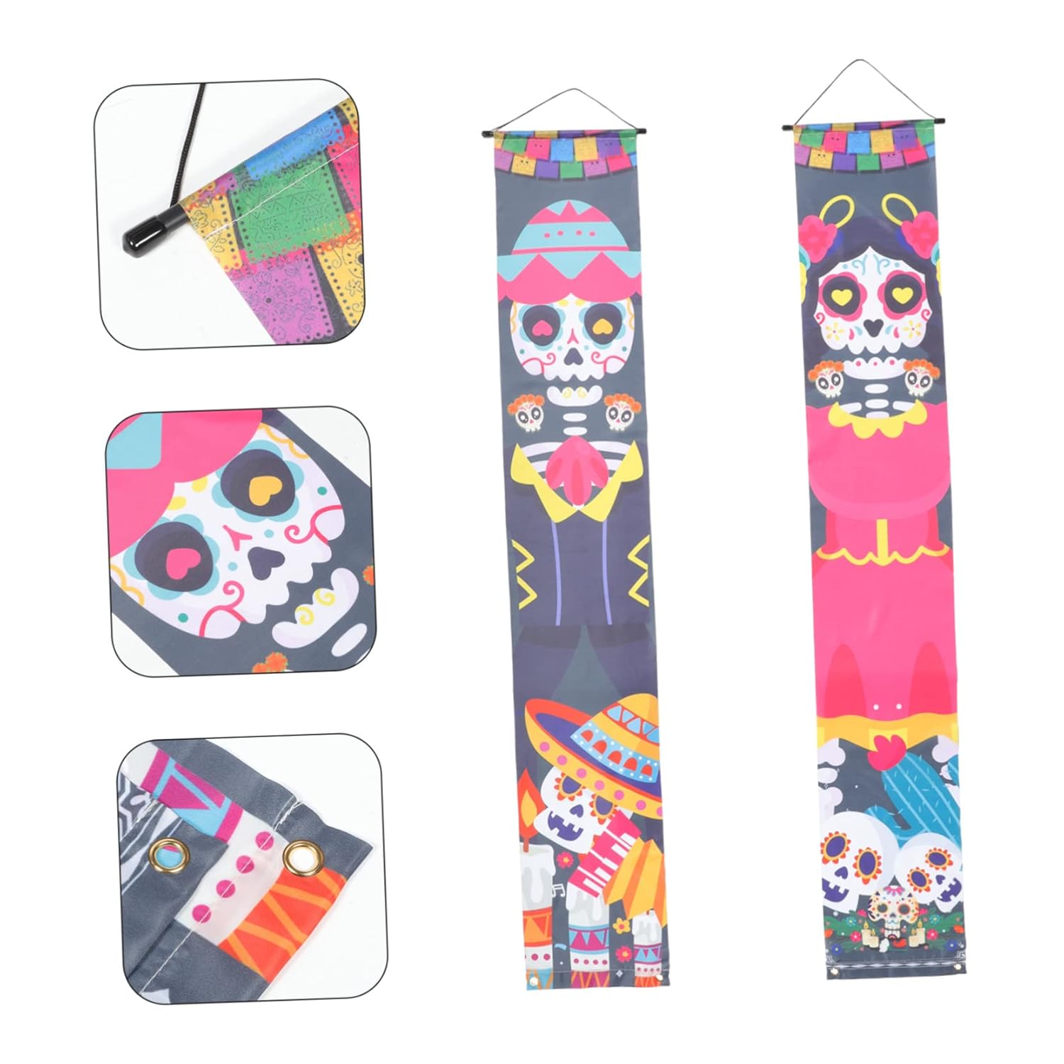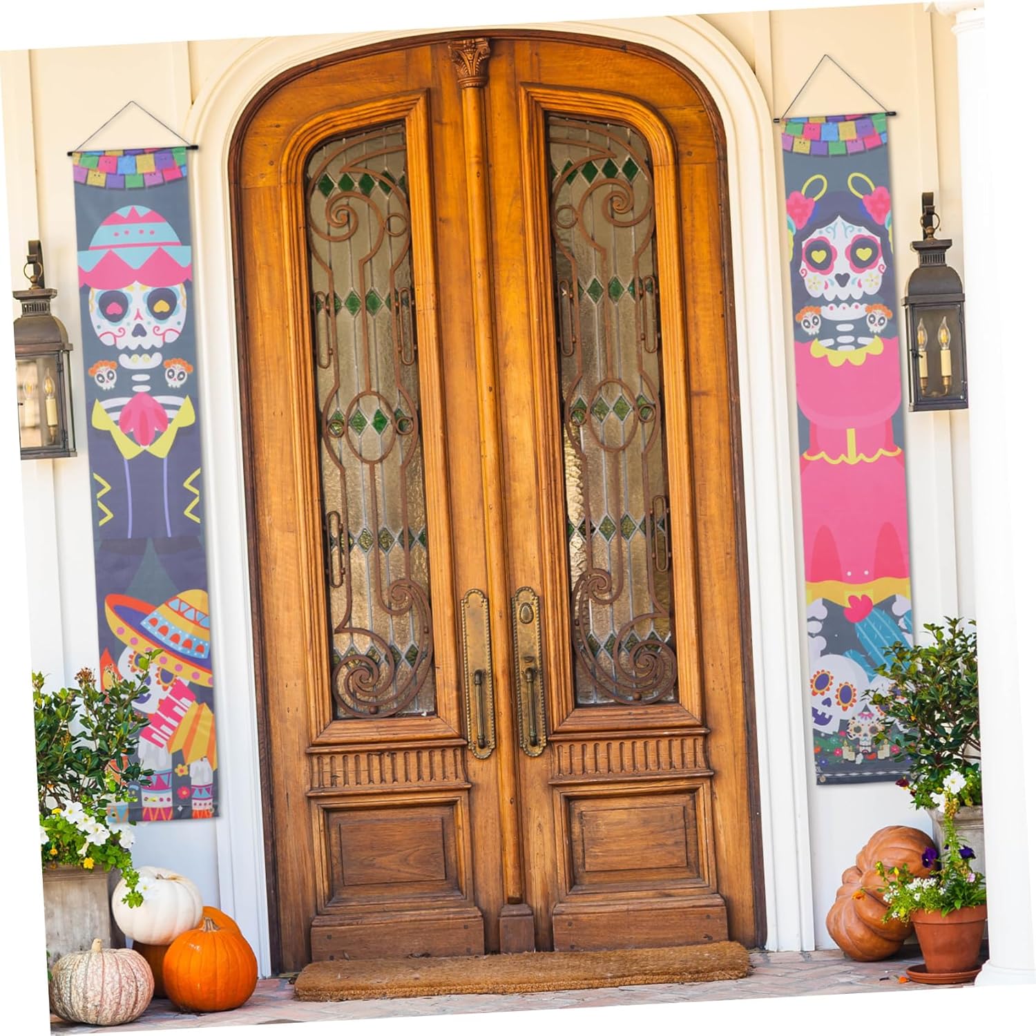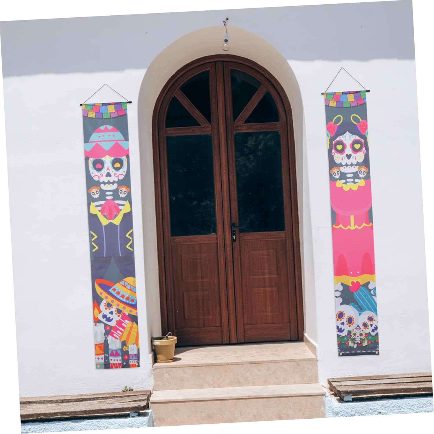 Decorazione della porta d'ingresso: appendi il cartello del portico del Giorno dei Morti a casa, ufficio, patio, portico, porta d'ingresso o finestra. È uno per le celebrazioni del festival e gli striscioni delle coppie di Halloween. Decorazioni per portico: puoi anche usarlo come fantastico sfondo per cabine fotografiche per feste, colori vivaci e lavorazione meravigliosa, decorare come ornamenti per esterni. Decorazioni di Halloween: struttura semplice, molto facile da installare sulla porta d'ingresso e facile da rimuovere quando non in uso, da appendere alla porta. Insegne per porte di Halloween: questa coppia di striscioni per porte può essere ampiamente utilizzata per casa, ufficio, centro commerciale, negozio, ristorante, ecc. ad Halloween. Finiture della tappezzeria: questo prodotto può essere utilizzato in una varietà di scene, come: b. Per una festa di Halloween a casa, a scuola o come striscione in veranda.