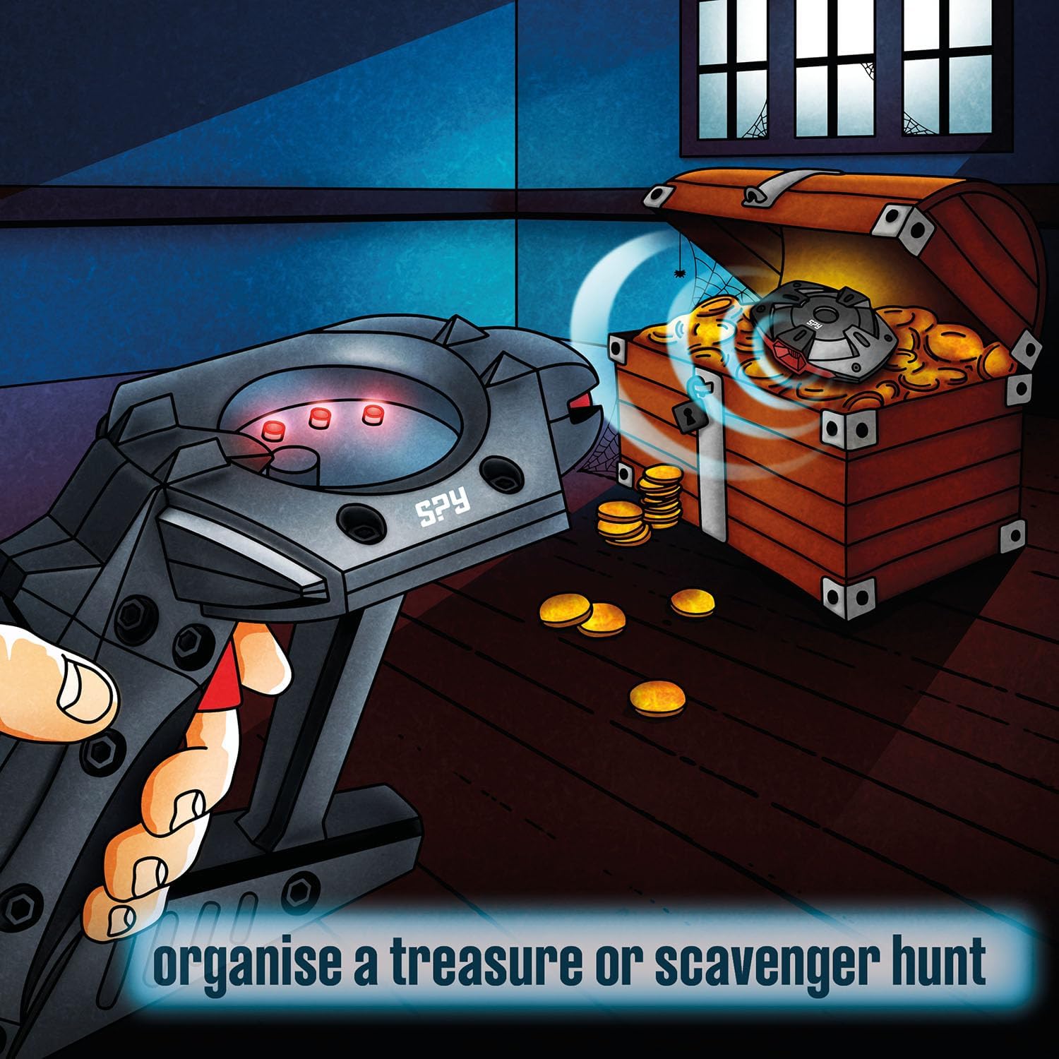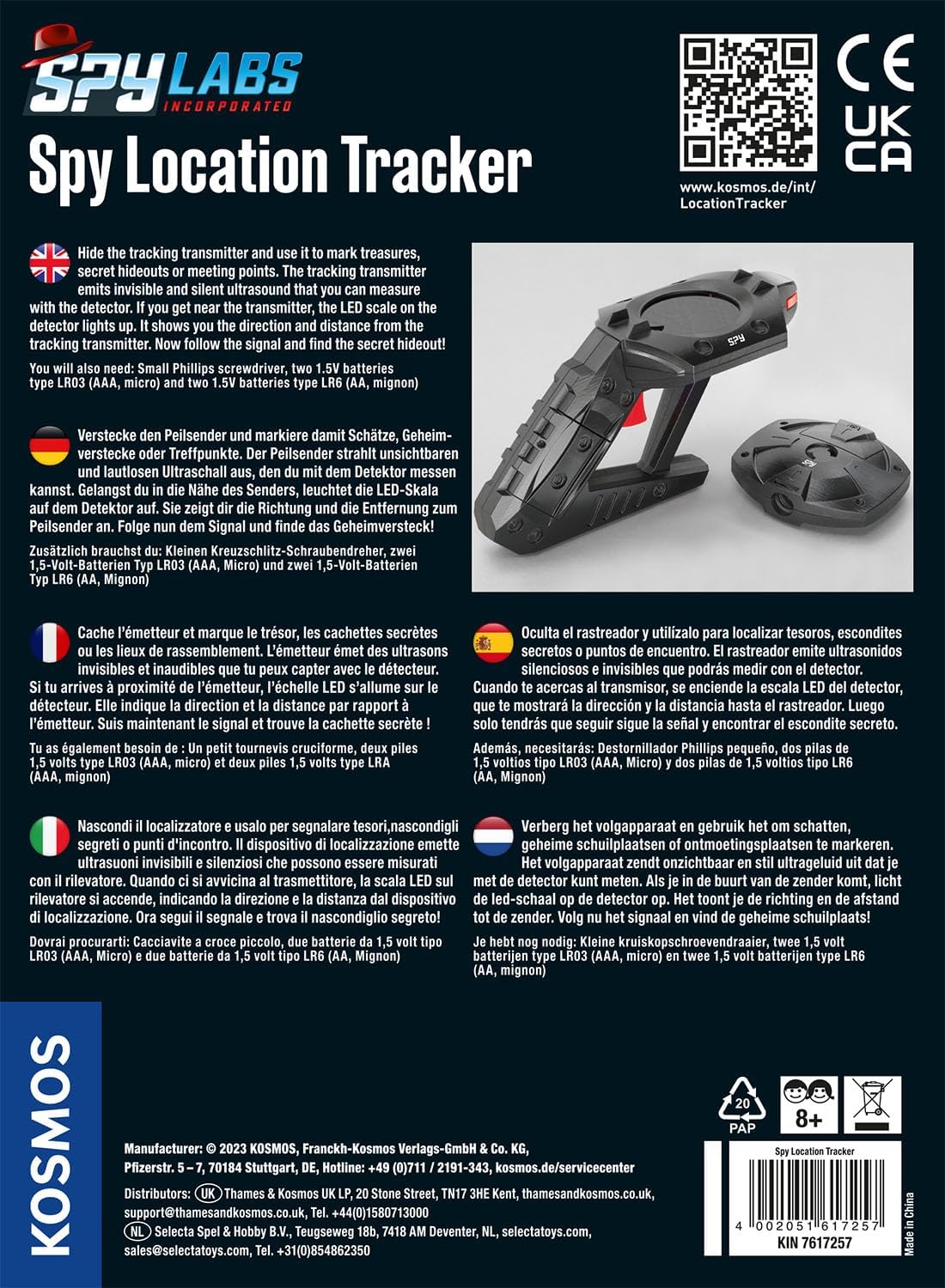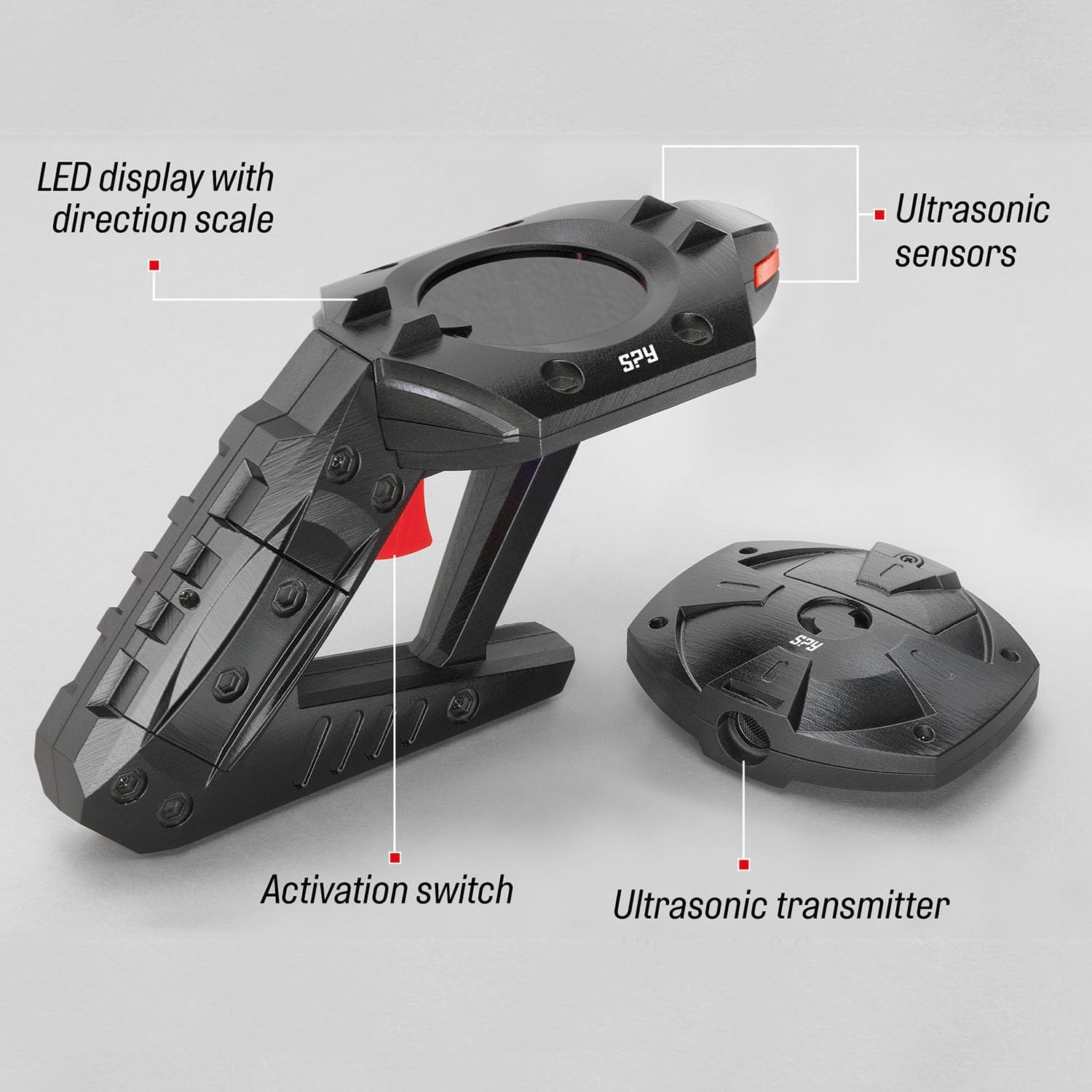 Dispositivo high-tech per giochi di ruolo detective Nascondere e rintracciare il trasmettitore con il rivelatore Rivelatore indica la direzione e la distanza del trasmettitore tramite scala LED Per emozionanti cacce al tesoro anche al buio Per bambini da 8 anni in su