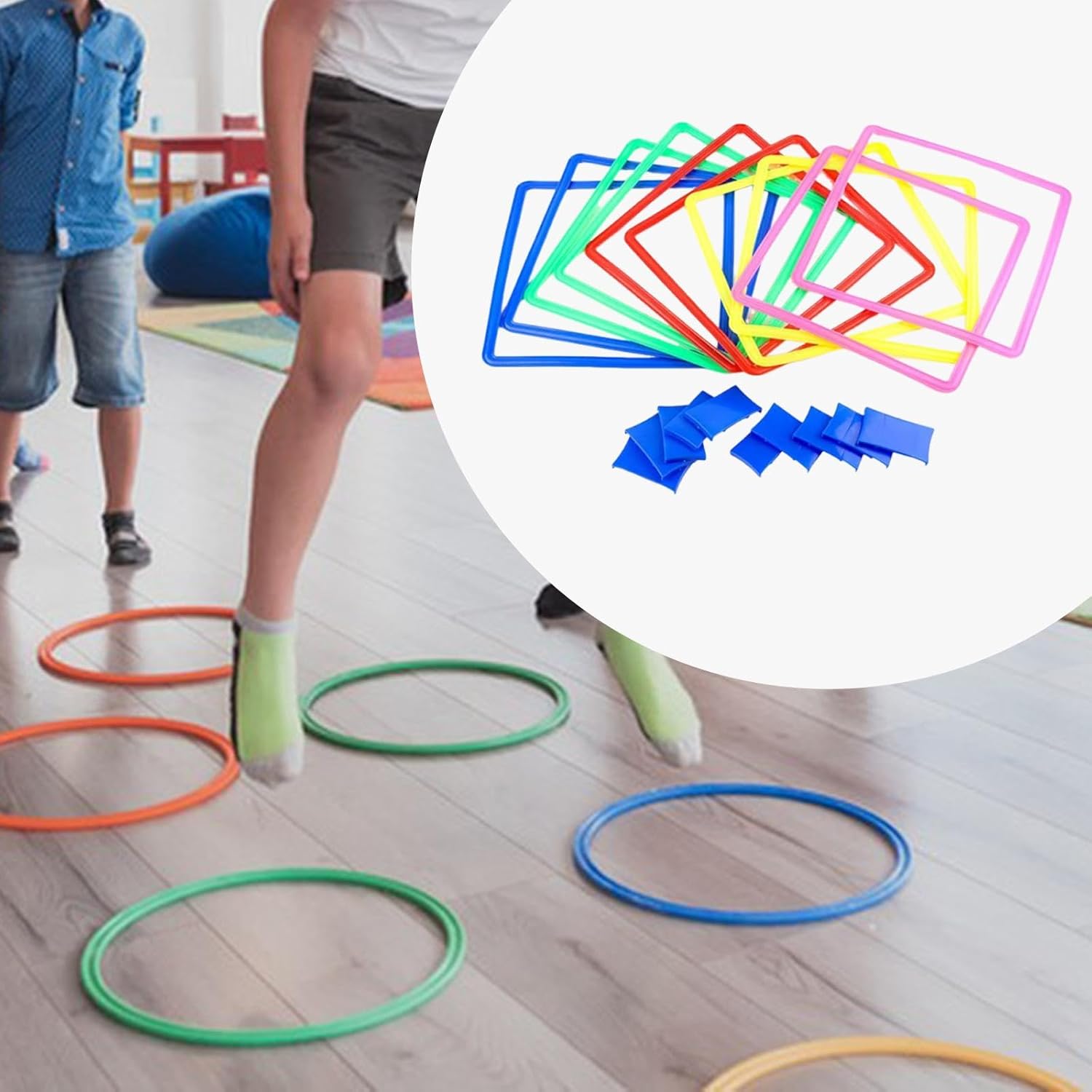 Robusto per un uso prolungato: il percorso a ostacoli al coperto per bambini è realizzato principalmente in PP con colori vivaci, liscio e robusto, non facile da deformare, rompere, può servirti a lungo Ampia quantità da usare e condividere: il pacchetto include 1 set di giochi da esterno a campana a forma di cerchio, contenente 10 cerchi, 10 connettori, 1 borsa portaoggetti e 1 sacchetto di fagioli, comodo da riporre e giocare con altri Goditi il tuo tempo libero: il gioco del pavimento saltellante è adatto ad adulti e bambini per giocare a casa, passando il tempo noioso, rafforzando il rapporto reciproco, facendo esercitare tutta la famiglia e Migliora le capacità motorie: il percorso a ostacoli per bambini non solo può aggiungere divertimento, ma può anche aiutare i bambini a migliorare le loro capacità motorie, sviluppare la loro capacità di pensiero e promuovere l'equilibrio e l'agilità durante il gioco Ampiamente applicabile: i giochi da esterno della campana per la famiglia possono essere applicati dopo un semplice assemblaggio, adatti per interni ed esterni