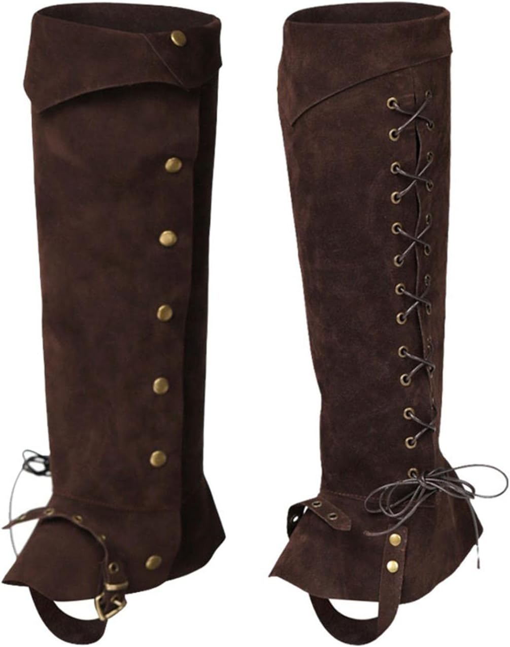 Dimensioni adeguate: la lunghezza delle coperture delle scarpe delle parti superiori degli stivali dei pirati è di 43 cm / 16,93 pollici, adatta per la maggior parte degli adulti. Ghette medievali: i copriscarpe per stivali da pirata sono progettati con cinturini con occhielli allacciati, alla moda, classici e di buon gusto. Ampie applicazioni: queste versatili coperture per bagagliaio sono ampiamente adatte per viaggi, , spettacoli teatrali, feste a tema, ecc. Alta qualità: i copristivali dei pirati sono realizzati in pelle scamosciata di alta qualità, resistenti, leggeri, comodi da toccare e da indossare. Ottimo regalo: i copriscarpe con una buona fattura di cucito sono anche un'ottima scelta regalo per famiglie e amici.