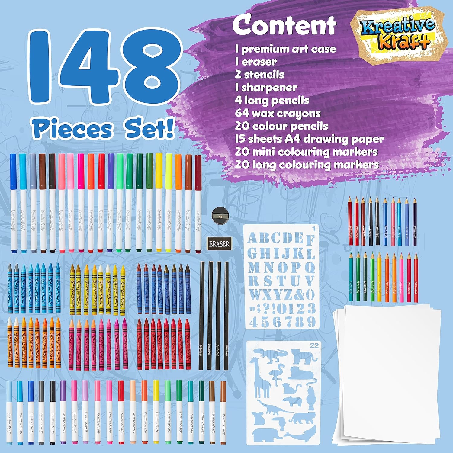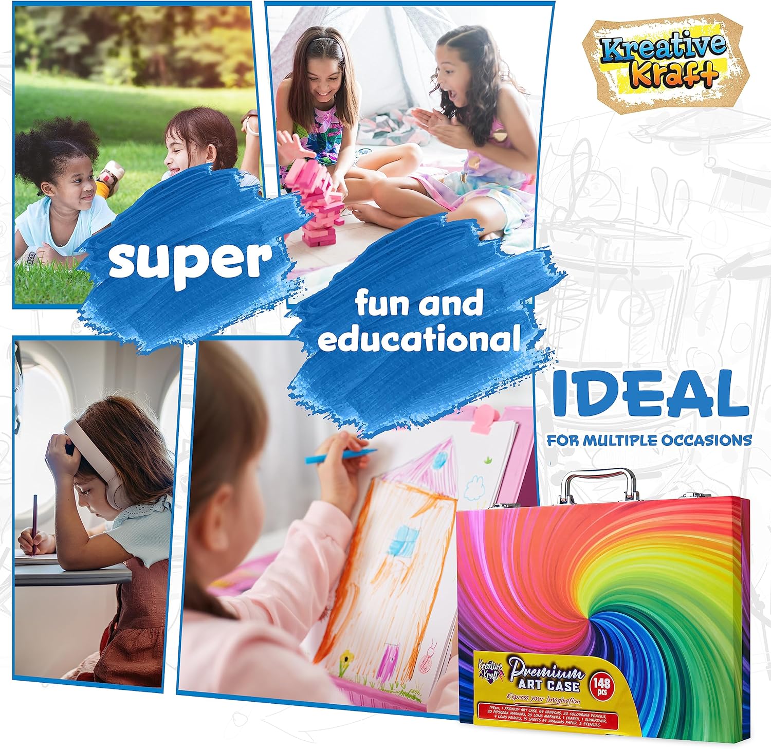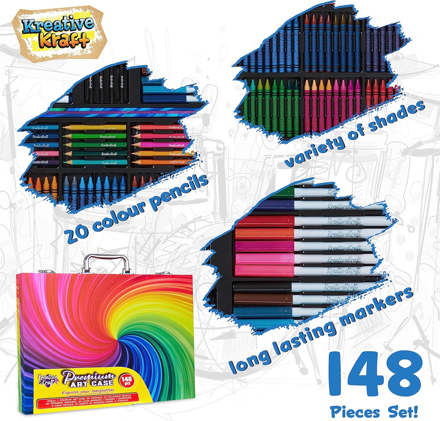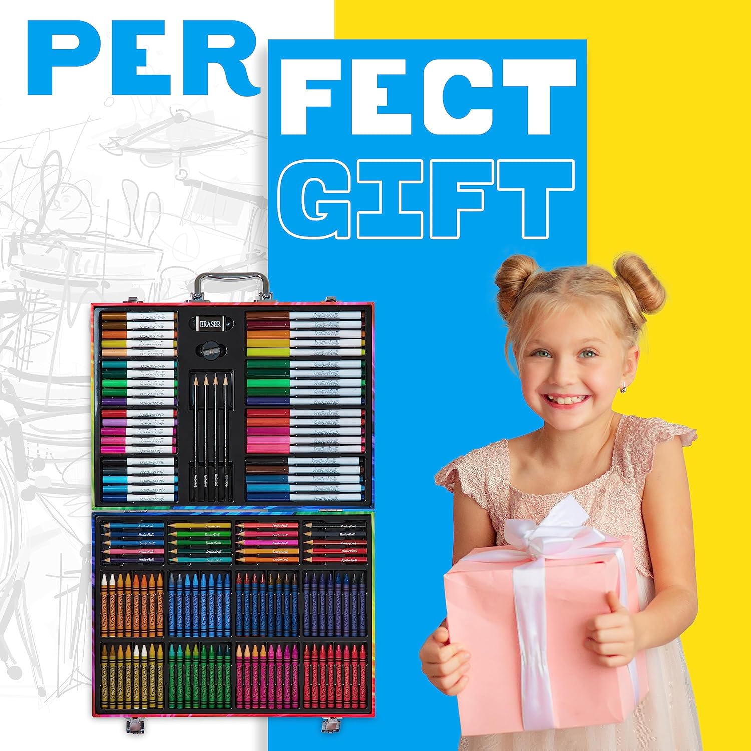 Kit Disegno Bambini - Intrattieni i bambini e stimola la loro creatività con questo kit colori per bambini, completo di una pratica valigetta che li terrà occupati per ore. Ore di Divertimento con Colori - Questo kit da disegno contiene tutto il necessario per colorare e disegnare a piacimento. Consulta il menu a discesa per le opzioni disponibili e le immagini per i contenuti delle varianti. Stimola la Creatività - Questo straordinario set da disegno per bambini include tutto il necessario per disegnare, colorare e sperimentare nuove tecniche. Il tutto riposto ordinatamente in una pratica valigetta da viaggio. Set da Colorare da Viaggio per Bambini - Ideale per portare dai loro amici, in vacanza e altro ancora, grazie alla comoda valigetta con manico. Creativo Regali Bambini - Cerchi un regalo che ispiri la creatività e accenda la loro immaginazione? Questo set disegno bambini di forniture artistiche è l’idea regalo ideale per Natale, compleanni o occasioni speciali.