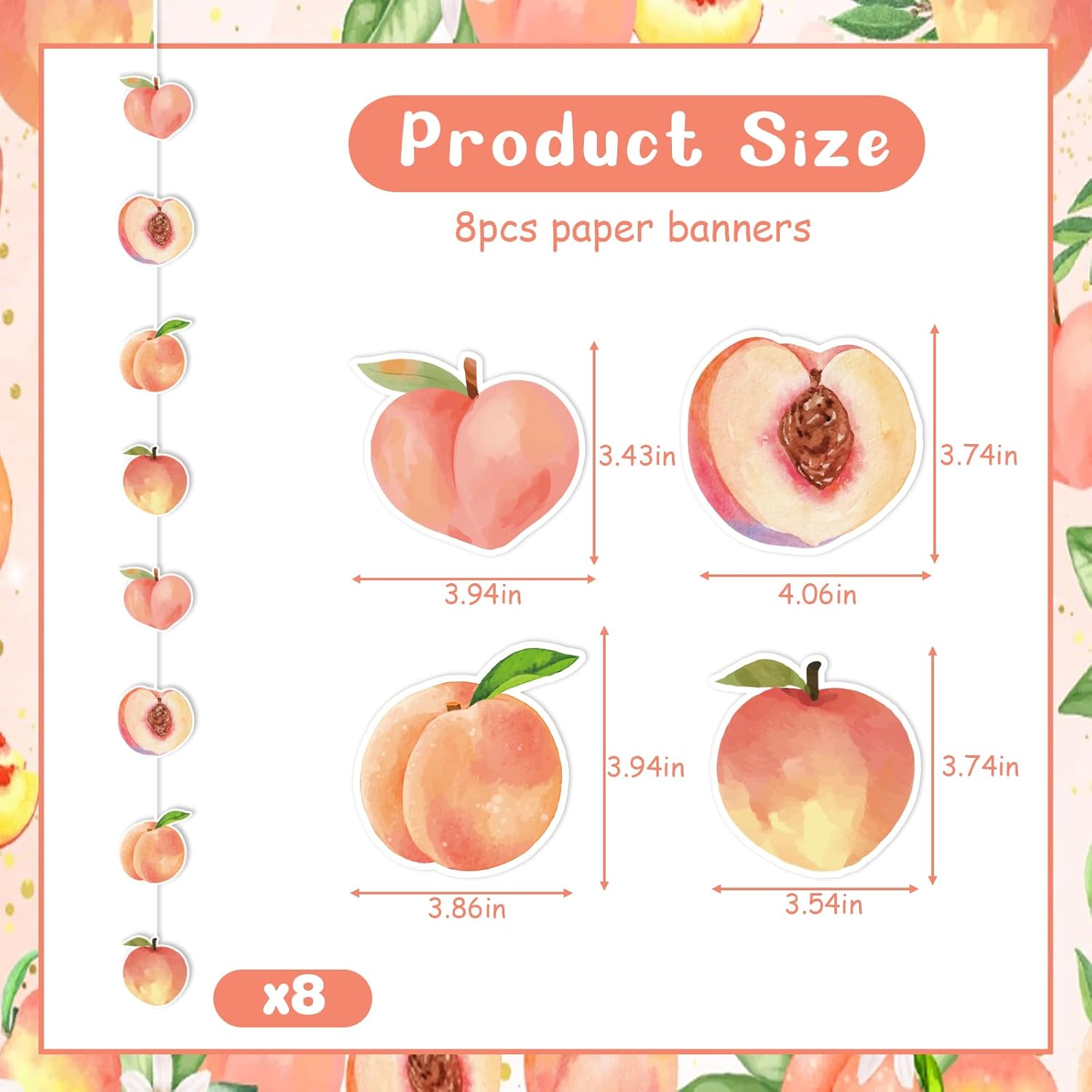 Decorazione da appendere per feste alla pesca: riceverai 8 stelle filanti da appendere per feste color pesca. Ogni stella filante da appendere misura 120 cm di lunghezza ed è decorata con 8 elementi color pesca. Ogni elemento pesca è di circa 10 x 10 cm, più grande delle dimensioni comuni sul mercato Attraente design pesca: le nostre decorazioni color pesca sono progettate con un'estetica fresca e accattivante. Le pesche sono illustrate con colori vivaci e sfumature dettagliate, dando loro un aspetto fantastico. Questo design è ideale per aggiungere un tocco di dolcezza naturale a qualsiasi celebrazione Stampa su carta su entrambi i lati: realizzate con carta di alta qualità, queste decorazioni presentano una stampa fronte/retro che il design color pesca è visibile da tutte le angolazioni. Il materiale di carta di qualità rende queste stelle filanti un'aggiunta robusta e attraente all'arredamento della tua festa Pre-assemblate: queste stelle filanti a tema pesca sono pre-assemblate, risparmiando tempo e fatica. Non c'è bisogno di installazione manuale, basta semplicemente appenderli e sono pronti per migliorare lo spazio della tua festa Ampiamente applicazioni: è possibile utilizzare lo striscione di pesca per feste a tema pesca, baby shower alla pesca, un compleanno dolce alla pesca, dolce come festa di compleanno alla pesca, una dolce piccola pesca è sulla strada festa di baby shower, feste a tema estivo, feste a tema frutta, rivelazione di genere, addio al nubilato, matrimonio o altre occasioni che ti piacciono, questo banner è riciclaggio e utile