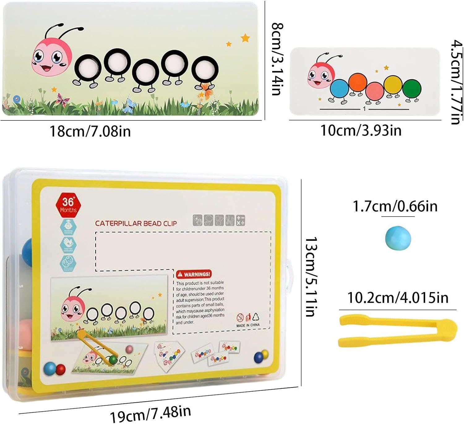 【Costruisci il pensiero logico】 Rispetto ai giocattoli dell'abaco, il gioco da tavolo con perline Montessori può aiutare i bambini a sviluppare la coordinazione occhio-mano, comprendere l'equilibrio e iniziare a contare. 【Modello di pensiero creativo】 Attraverso il pensiero creativo, i bambini possono utilizzare i giochi con perline Pegboard per definire le loro forme immaginarie. Non è solo un gioco di cucchiai, ma un gioco di abbinamento. 【Artigianato elaborato】 Il gioco con perline in legno è stabile e infrangibile. offre un'educazione della prima infanzia di altissimo livello. È costruito in legno + materiale cartaceo liscio e privo di sbavature. 【Divertimento interattivo】 Il gioco delle perline con peg board Caterpillar migliora l'osservazione, la logica e la coordinazione occhio-mano. Completa i colori o abbina le forme facendo scorrere i puzzle. Aiuta ad addestrare i bambini a riconoscere i colori e le forme 【Scelta/Opzione di intrattenimento】 Lo sviluppo generale dei bambini è esercitato dal gioco delle perline di selezione dei colori. Il gioco da tavolo più interattivo per genitori e bambini è la sfidda multigiocatore con perline a clip, che mette insieme i PK contro perline di legno colorate.
