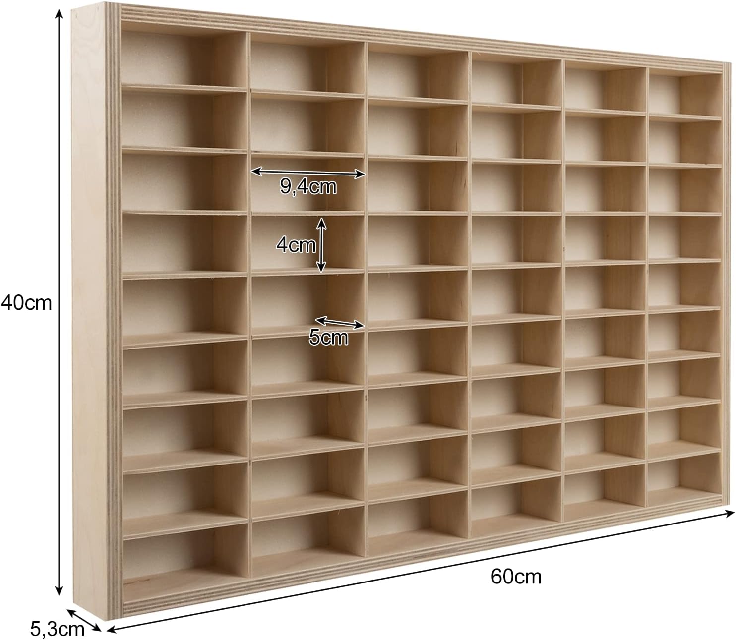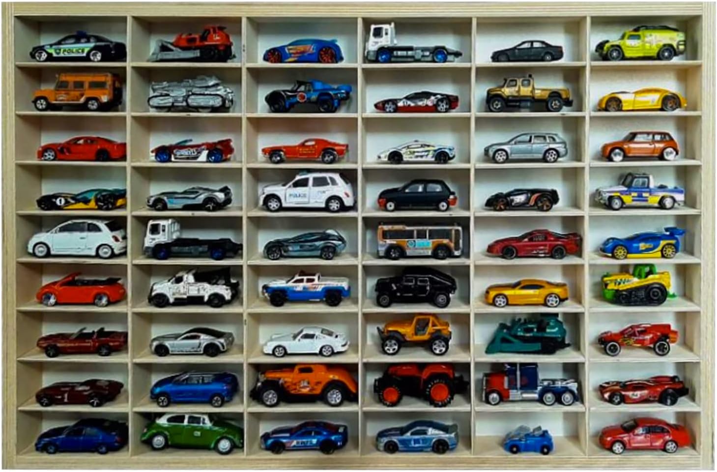 54 scomparti: perfetti per riporre fino a 54 macchinine, ruote calde o altri piccoli oggetti da collezione. Adattabile individualmente: i divisori rimovibili consentono una divisione flessibile degli scomparti. Con kit di montaggio - Viti e fissaggio a parete inclusi - Pronto all'uso. Multifunzione: ideale per la cameretta, il laboratorio, la cucina. Decorativo e funzionale: unisce stile e ordine in modo elegante.