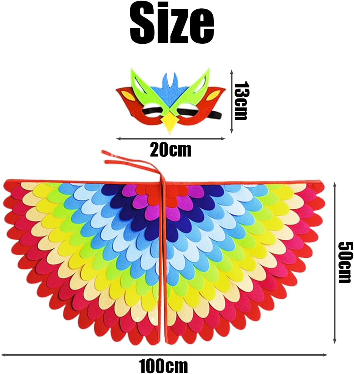Descrizione del prodotto Caratteristiche del prodotto: Cappotto. Materiale: feltro Dimensioni: 100 x 50 cm Colore: multicolore. Quantità: 1 maschera protettiva. Materiale: feltro Dimensioni: 20 x 13 cm Colore: multicolore. Quantità: 1 Caratteristiche: 1. Ogni punto e filo di questo capo è rigorosamente controllato per garantire che il prodotto passi in modo uniforme e pulito senza difetti. 2. Questo abbigliamento è progettato con forme e motivi multistrato, ricchi di colori, belli nell'aspetto e pieni di moda. Avviso di sicurezza Nessun avviso applicabile