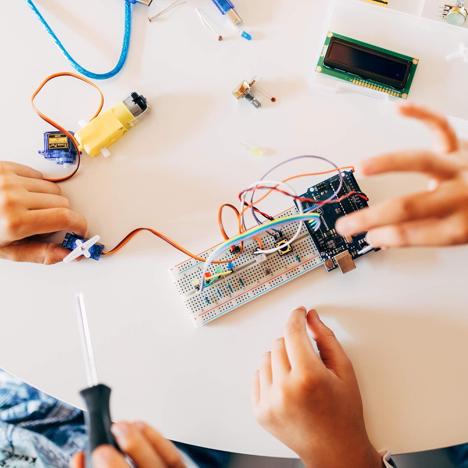 Il kit Build & Code Plus include una selezione di 240 componenti elettronici con i quali è possibile sviluppare una grande quantità di progetti di robotica e domotica a diversi livelli e iniziare a utilizzare il linguaggio di programmazione Arduino.È un'estensione del kit Build & Code Basic: include più componenti elettronici, rendendo possibile la creazione di più progetti. Crea una scatola sicura, una regola con un sensore a ultrasuoni, una lampada, un morse code coach, un robot "come un dito", un contatore di pallacanestro e molto altro.
