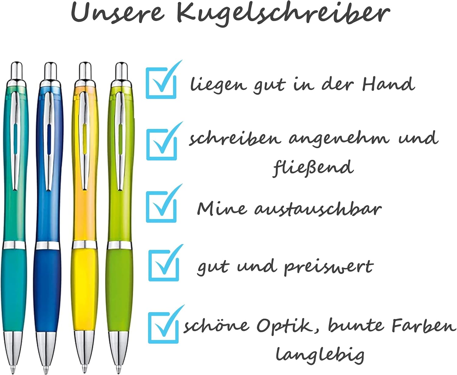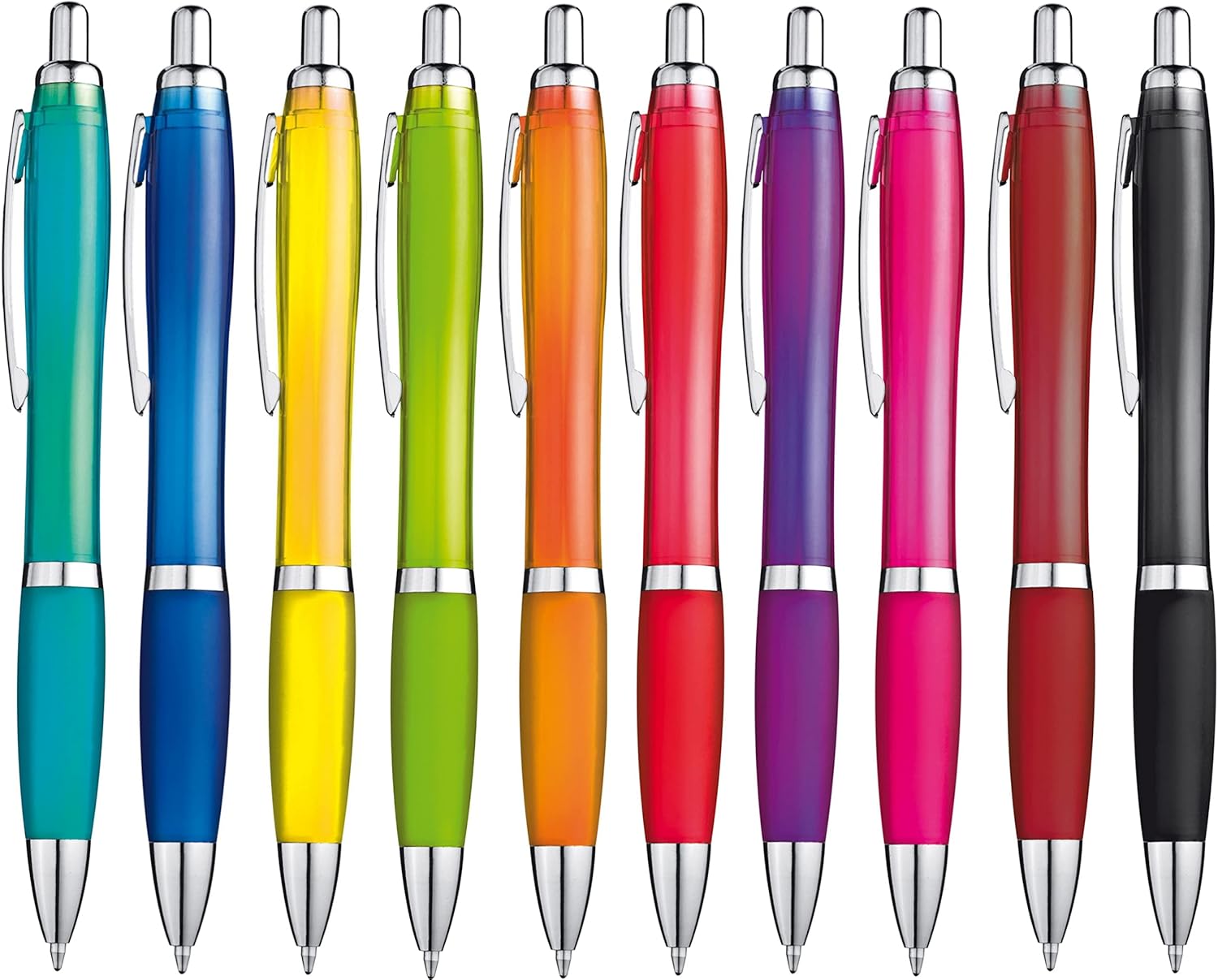 10 penne a sfera – 10 colori, blu – sempre pronte per la presa – le nostre 10 penne a sfera colorate antiscivolo con impugnatura antiscivolo e corpo in plastica in colori alla moda e multicolore Aspetto elegante e accattivante: grazie alla combinazione della cassa trasparente colorata e degli accessori lucidi in pizzo, anelli decorativi, pulsanti e clip in metallo, questa penna a sfera ha un aspetto particolare. Ergonomica: comoda sensazione di scrittura: grazie all'impugnatura antiscivolo, la penna è sicura nella mano, mentre la mina in plastica blu offre un'esperienza di scrittura fluida e confortevole. Con una lunghezza di circa 14 cm e una mina in plastica blu offrono una piacevole esperienza di scrittura Colorate e brillanti: queste penne a sfera colorate sono disponibili in una gamma di colori vivaci, tra cui viola, rosa, blu, verde, lime, giallo, turchese, rosso, bianco e arancione. Ogni colore conferisce alle penne a sfera la propria personalità e le rende un compagno allegro in tutte le situazioni di scrittura. Molteplici possibilità di utilizzo: sia per appunti in ufficio, per scrivere a scuola, diario a casa o per progetti creativi in viaggio, queste penne colorate sono versatili e aggiungono colore alla vita quotidiana. Non importa se per bambini, ragazzi o adulti, sono la scelta perfetta per chi ama scrivere con stile. Regalo ideale: con il loro design elegante e la sua pratica funzionalità, queste penne a sfera sono il regalo ideale per la famiglia, gli amici, i colleghi o i partner commerciali. Che si tratti di occasioni speciali o semplicemente come una piccola attenzione di tanto in tanto, saranno sicuramente apprezzati e utilizzati. Buon inchiostro blu: nella confezione sono incluse 10 penne a sfera ergonomiche con mina blu, custodia in 10 colori. Se un colore non è disponibile, verrà inviato un colore alternativo come ricambio. Lunghezza della penna: 14 cm, lunghezza mina: 9,9 cm Attenzione: pezzi piccoli, pericolo di soffocamento
