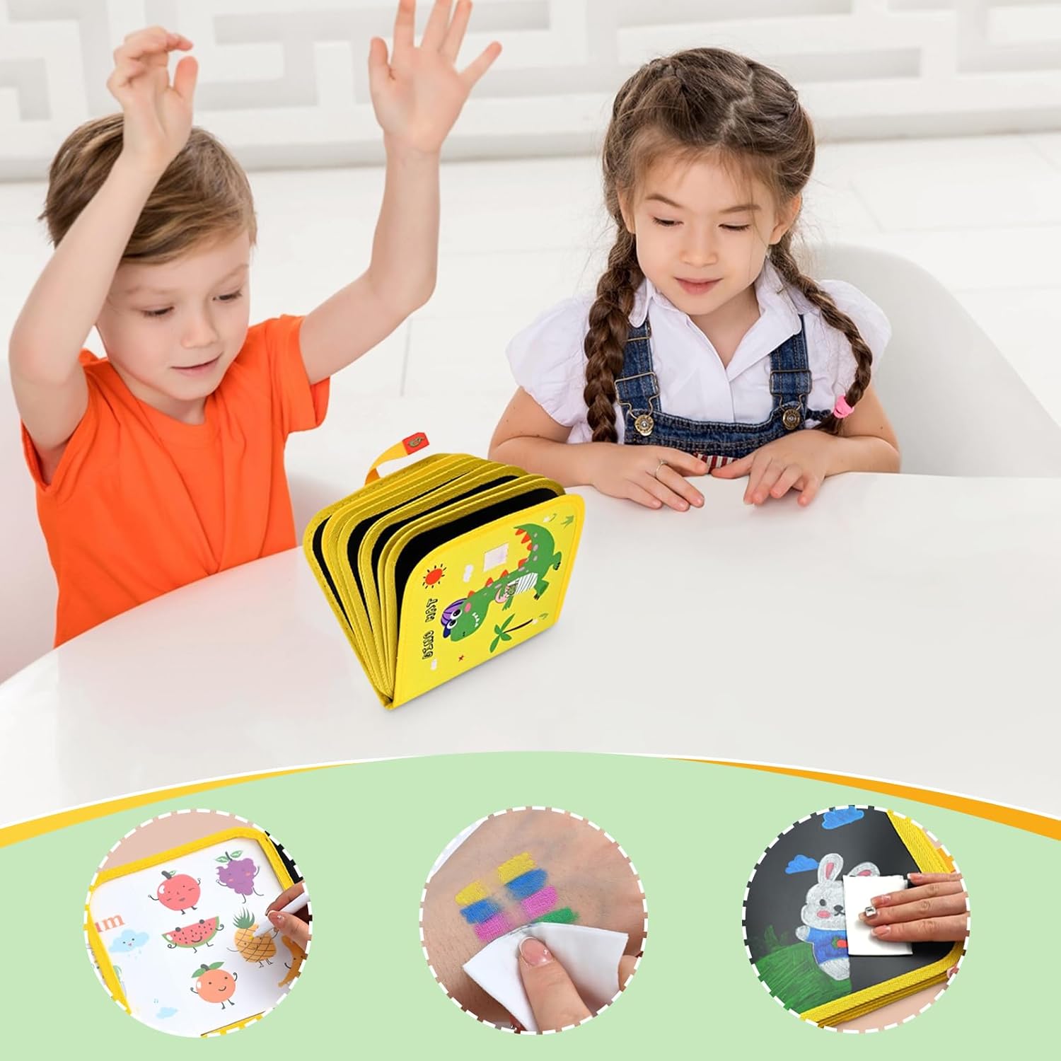 Espressione artistica flessibile: consente di creare e modificare facilmente progetti per migliorare l'apprendimento continuo, sviluppare abilità grafiche ed esplorare nuove idee creative. Formato riutilizzabile che si adatta a tutti i livelli di abilità. Innovazione anti-perdita: superficie di disegno rigenerabile ottimizza le risorse. Fibre speciali assorbono temporaneamente i pigmenti, consentendo riscrittura illimitata senza macchiare. Metodo di pulizia espresso (40 secondi) garantisce disponibilità permanente per nuove creazioni artistiche Design intuitivo: formato ergonomico con bordi arrotondati e peso leggero (circa 450g) facilita la manipolazione sicura da mani piccole, mantenendo una qualità del tratto coerente in ogni utilizzo Design viaggiatore intelligente: struttura ultraleggera con copertura rinforzata antigraffio. Il formato pieghevole occupa 40% meno spazio rispetto alle lavagne tradizionali, perfetto per gite scolastiche, viaggi in treno o attese nei ristoranti. Include spazio di archiviazione integrato per gli accessori. Apprendimento divertente: Metodologia educativa basata sull"arte-terapia con guida ai modelli inclusa, superficie di scrittura ottimizzata per i bambini 3-8 anni che combina formazione di concentrazione con espressione artistica, strumento essenziale per insegnanti e genitori moderni