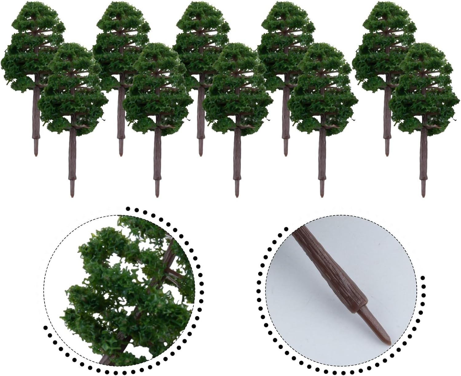 Materiale di alta qualità: realizzato con materiali e materiali sicuri e durevoli. Design realistico: squisita fattura e alto effetto di simulazione, forniscono un tocco realistico ed estetico al paesaggio del tuo modello. Decorazione versatile: perfetta per aggiungere un'atmosfera verde e vivace al layout del treno o alla scena del modello, migliorandone l'aspetto generale. Ampie applicazioni: ideale per modelli di costruzione, layout di treni, modelli di tavoli da sabbia, materiali didattici per studenti e paesaggistica all'aperto. Confezione conveniente: include 20 mini alberi modello con un'altezza di 8 cm, fornendo un'ampia quantità per i tuoi progetti fai da te.