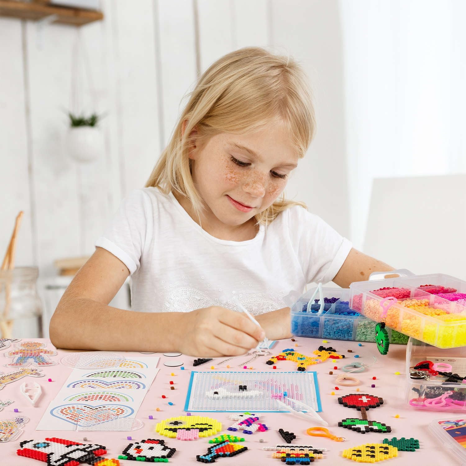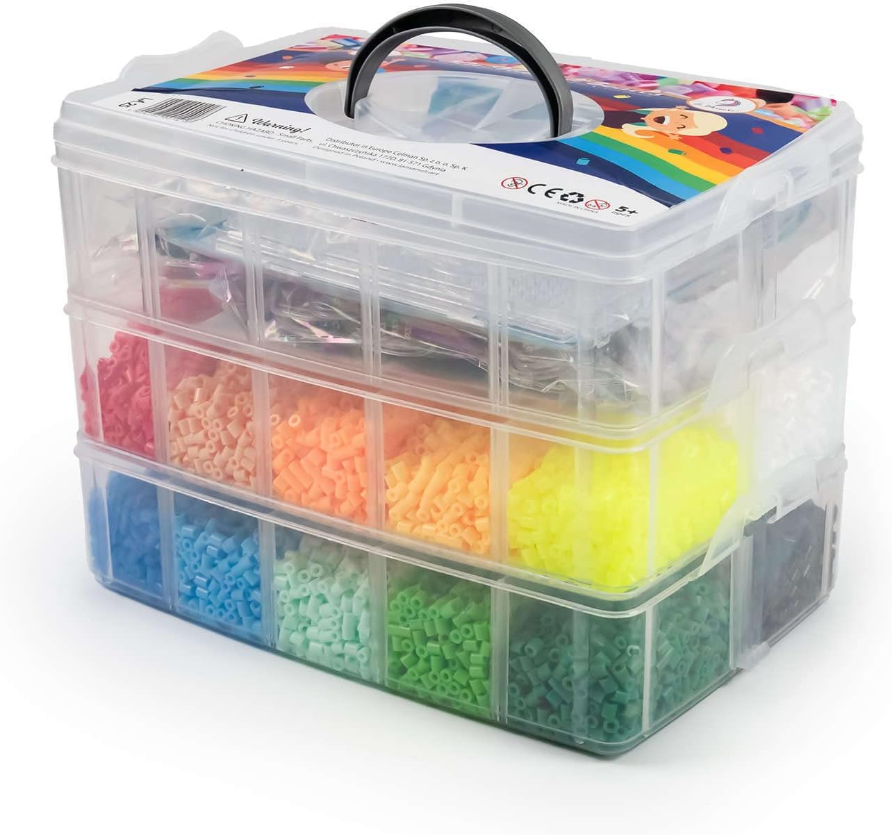 Set di 24.000 perline da stirare: Questo set contiene 24.000 perline da stirare in una varietà di colori, con cui è possibile realizzare molti progetti diversi. La quantità di perline è sufficiente per creare molte interessanti creazioni e permette al bambino di sviluppare la propria immaginazione e le abilità manuali. Pegboards e accessori: Questo set non include solo le perline, ma anche i pegboards e gli accessori necessari per la creazione. Il bambino non dovrà preoccuparsi di acquistare elementi aggiuntivi, poiché tutto è già incluso nel kit. Divertimento creativo: Creare con le perline da stirare è un grande divertimento che stimola l'immaginazione e favorisce le abilità manuali. Il tuo bambino avrà la possibilità di creare i propri disegni e di goderne per molto tempo. Per bambini e bambine dai 5 anni in su: Il set di perline da stirare La Manuli è adatto ai bambini dai 5 anni in su e quindi è anche un regalo perfetto per i bambini più piccoli. I ragazzi e le ragazze possono giocare insieme e sviluppare le loro abilità. Perline da stirare 5 mm Midi: Le perline da stirare di dimensioni 5 mm Midi sono perfette per creare design dettagliati e duraturi con perline colorate.
