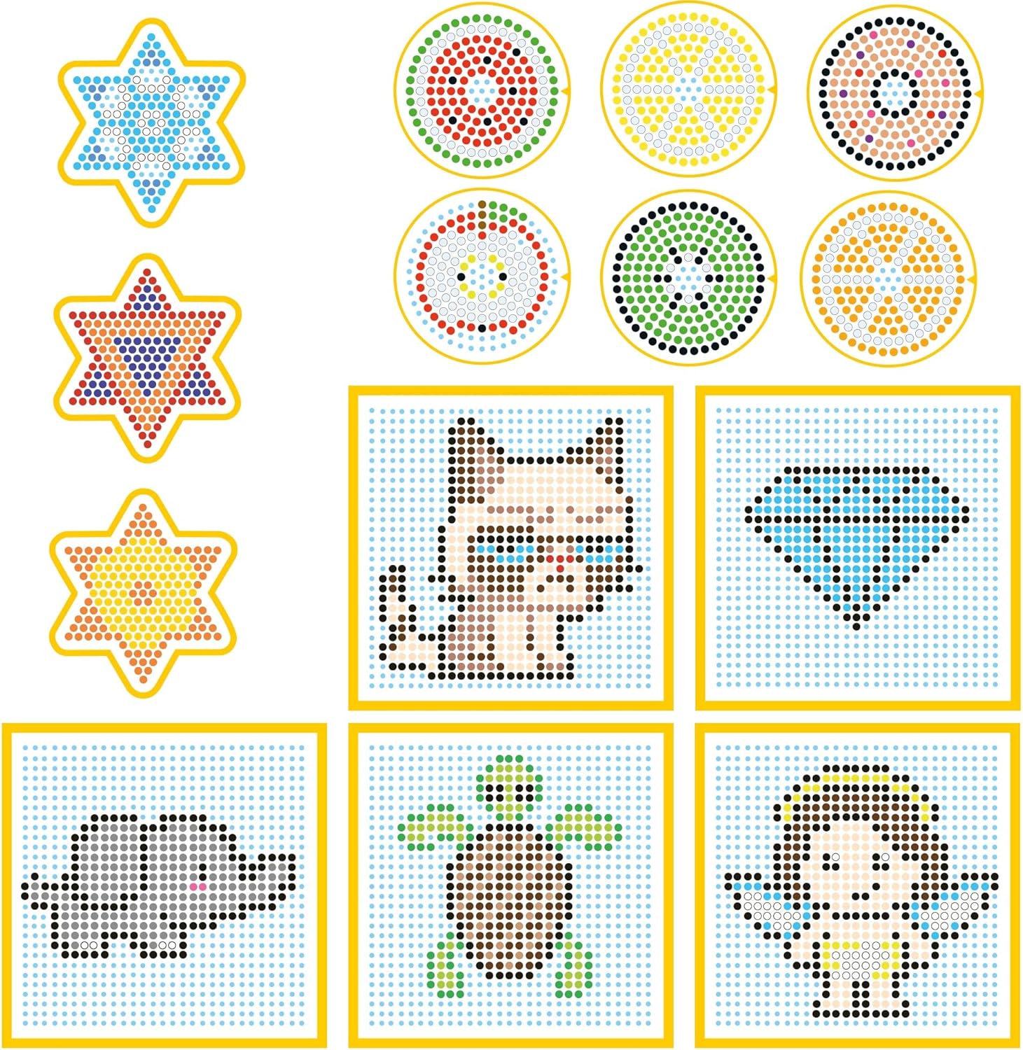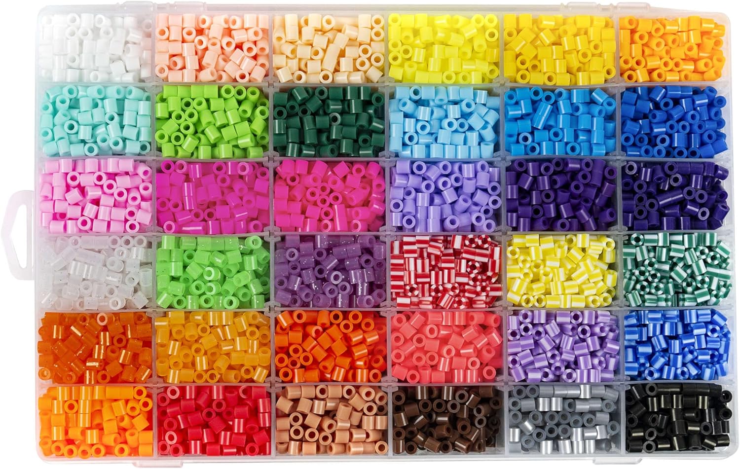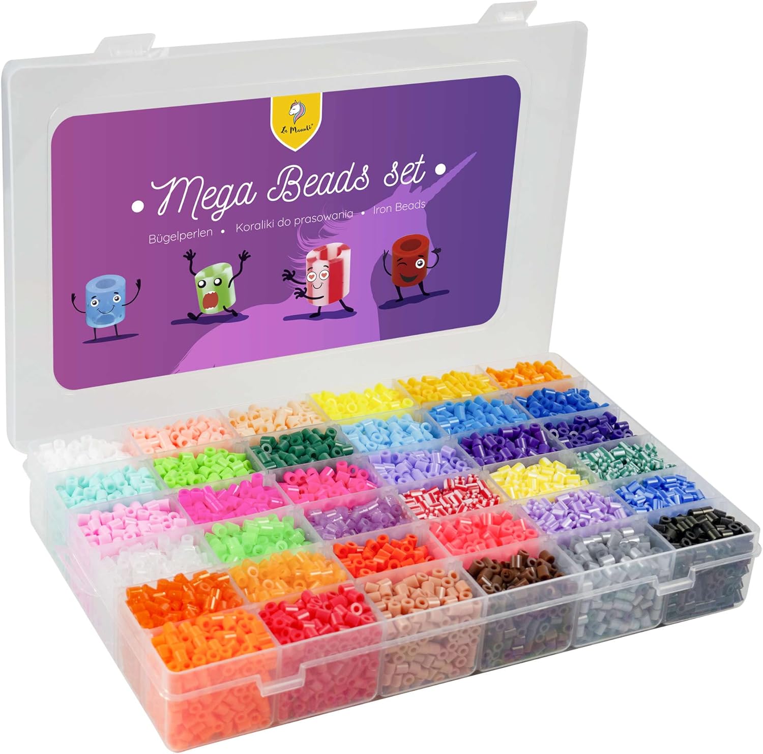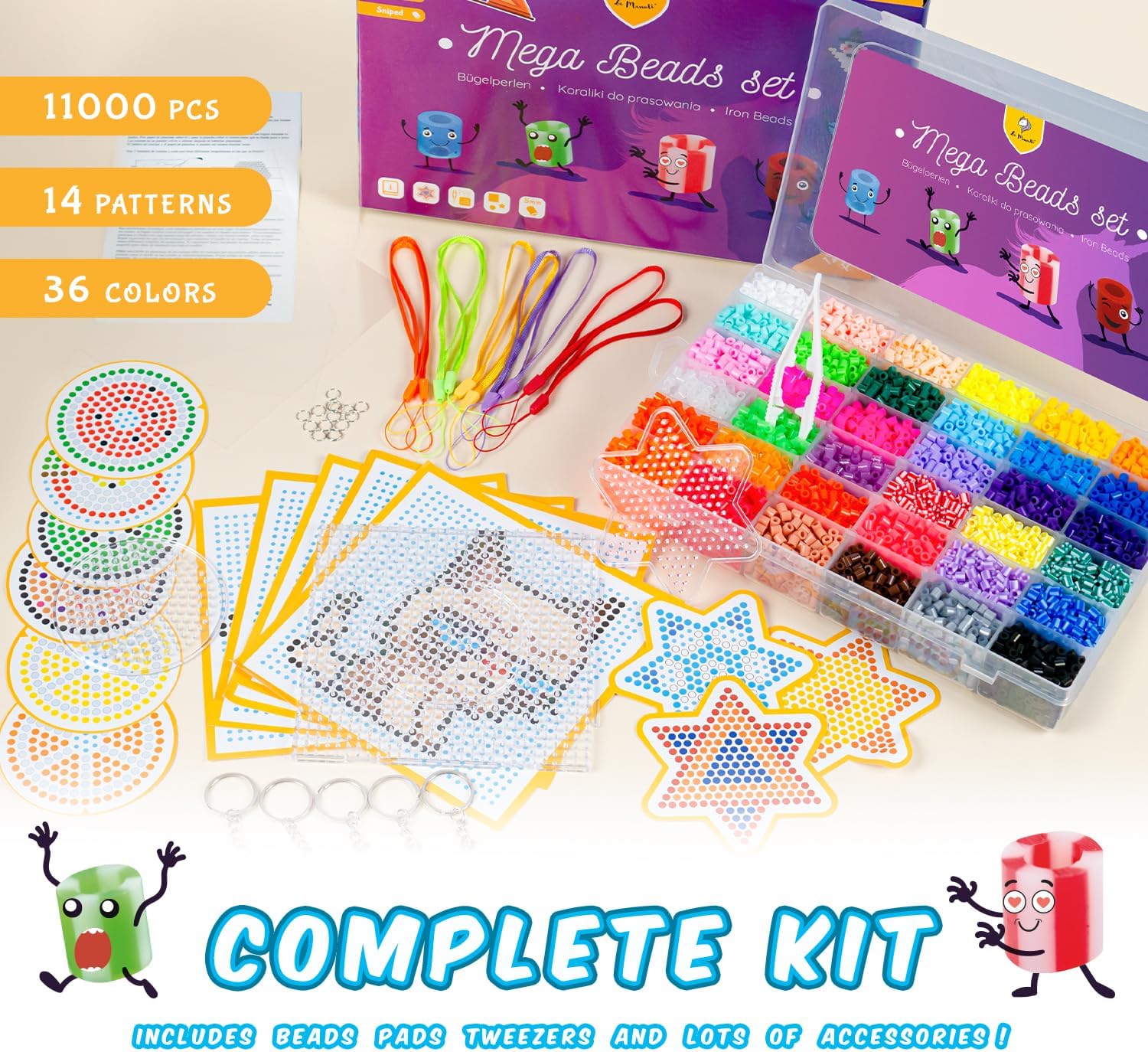 Coffret tutto-in-uno: Set di perline da stirare con circa 11.000 perline in 36 colori assortiti, incluse perline glitterate e sniped, 10 pendenti lunghi, 5 pendenti colorati, grandi basi quadrate, basi piccole (cerchi e stelle), pinzetta, 3 fogli trasparenti da stirare, 15 anelli per portachiavi e pendenti, 5 grandi modelli e 9 piccoli modelli Gioco creativo con perline da stirare: Un set completo di perline da stirare con accessori che stimola la creatività nei bambini fin dalla tenera età. I bambini possono creare motivi colorati con personaggi dei cartoni, immagini, pendenti o decorazioni per il frigorifero e portachiavi Stimola la creatività dei bambini: Guarda tuo figlio mentre usa la sua immaginazione per creare un mondo di personaggi, animali e forme, trasformando le creazioni in braccialetti o pendenti Facile da usare: Posiziona le perline sulla base trasparente, coprile con carta da forno, stira il motivo e rimuovi la carta per ammirare il risultato finale Idea regalo: Il set viene fornito in una pratica custodia trasparente, perfetto come regalo di compleanno per bambini e bambine dai 6 ai 12 anni