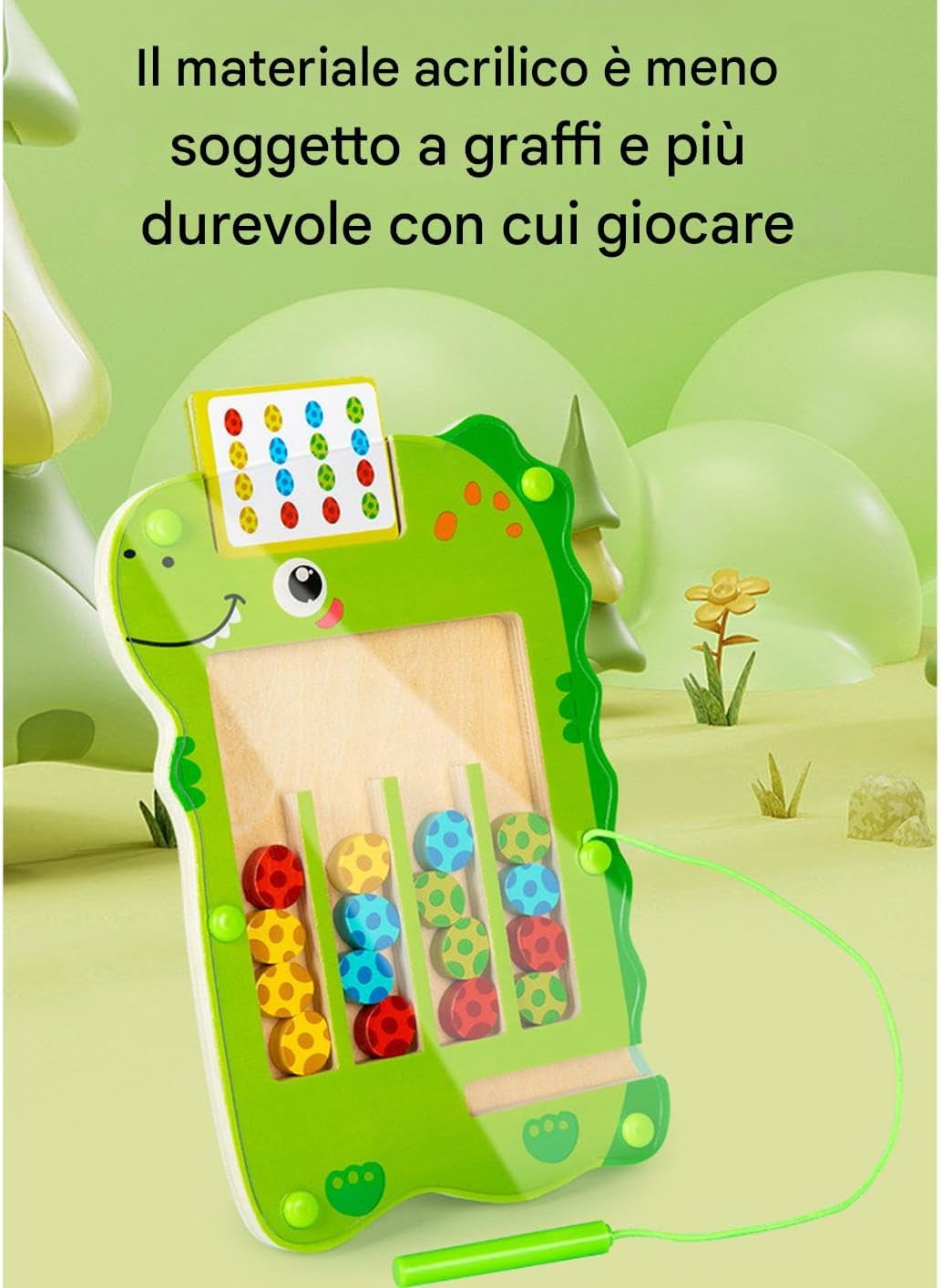 Migliora le Abilità Motorie: Il labirinto magnetico esige movimenti precisi e controllo strategico, favorendo il miglioramento delle abilità motorie fini durante il gioco e incoraggiando concentrazione e accuratezza in ogni mossa. Facile Trasporto: Focalizzato su portabilità e questo labirinto magnetico facilita momenti condivisi in famiglia a casa in aula o in viaggio con la sua struttura compatta che incoraggia interazione Stimola Curiosità: Integra i fondamenti di paleontologia con il design a labirinto stratificato, incoraggiando il gioco creativo e stimolando naturalmente la curiosità con coinvolgenti sfide a tema dinosauri per ore di divertente scoperta. Potenzia Apprendimento:Questo strumento educativo migliora la consapevolezza spaziale, affina la coordinazione occhio-mano e sviluppa il ragionamento logico, creando solide basi per lo sviluppo cognitivo precoce e il problem solving efficace Giocattolo Sicuro: Lavorato con materiale ligneo ecologico, assicura protezione durante il gioco prolungato offrendo un'opzione sostenibile e affidabile per maggiore divertimento