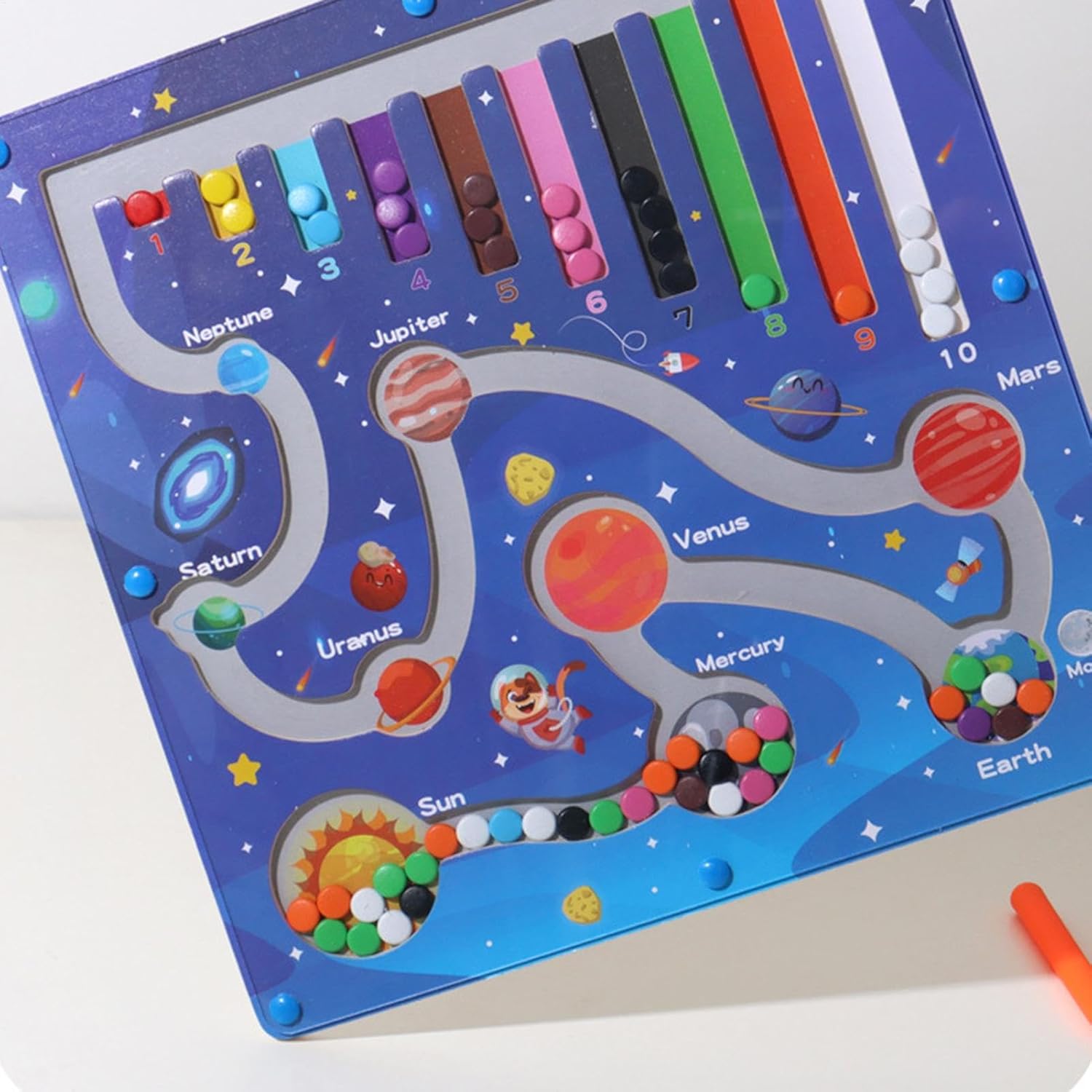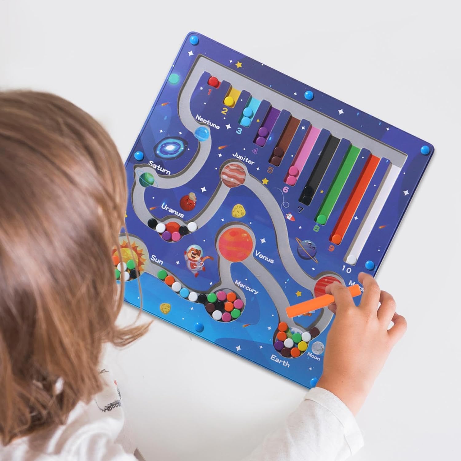 Eccellente artigianalità: la qualità di lunga durata combinata con superfici lisce fornisce un tocco delicato, realizzato in materiale naturale per migliorare il gioco del labirinto magnetico Strumento di apprendimento guidato: il controllo magnetico della penna, abbinato a schemi accurati, supporta la pratica della stabilità del polso e sviluppa le capacità di scrittura fondamentali tramite movimenti guidati Supporta il riconoscimento dei numeri: incoraggia l'apprendimento sequenziale passo dopo passo con coinvolgente movimento magnetico delle perline, migliorando il riconoscimento dei numeri, la navigazione nel labirinto e sviluppando una precisa coordinazione occhio-mano per il gioco interattivo Sfide per lo sviluppo delle abilità: la lavagna magnetica presenta sfide appropriate all'età per migliorare le capacità di risoluzione dei problemi, promuovere lo sviluppo del bambino e incoraggiare la motivazione dell'autoapprendimento attraverso standard di difficoltà progressivi su misura per le giovani menti Uso all'aperto senza sforzo: combinando una struttura leggera e un design compatto, questa lavagna magnetica per labirinto garantisce comodità di viaggio mentre l'attacco magnetico della penna impedisce la perdita per una facile conservazione e portabilità senza sforzo