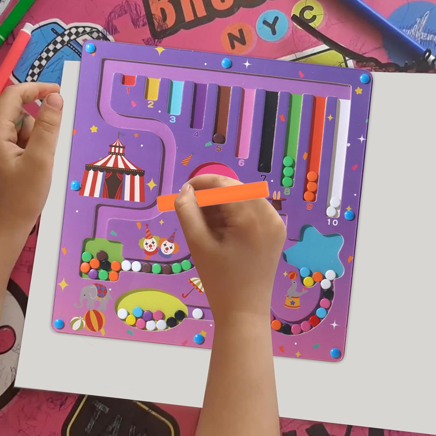 Promuove la percezione direzionale: sviluppa la consapevolezza direzionale attraverso una guida precisa dei binari, migliora la stabilità del polso e si prepara alla scrittura con la guida magnetica su percorsi specifici Design per lo sviluppo: il labirinto magnetico offre sfide graduali con difficoltà crescente per consolidare le capacità di problem solving, supportare lo sviluppo del bambino e stimolare efficacemente l'apprendimento indipendente. Migliora la coordinazione occhio-mano: rafforza le capacità di riconoscimento dei numeri insieme al pensiero logico e alla navigazione del labirinto, utilizza il movimento delle perle magnetiche liquide per sviluppare le capacità motorie e aumentare efficacemente la coordinazione occhio-mano Durata naturale: le superfici lisce e la lunga durata confermano la morbidezza al tatto, realizzata in materiale naturale per un uso duraturo sul labirinto magnetico Compatto e facile da viaggiare: il labirinto magnetico offre il massimo comfort durante gli spostamenti grazie al design compatto e alla facilità di conservazione. La penna magnetica è sempre a portata di mano e non si perde.