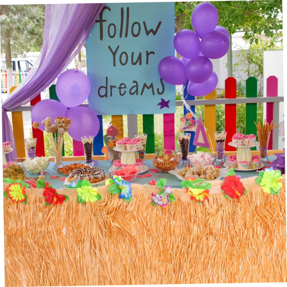 Gonna da tavolo hawaiana: puoi usarla per decorare il tuo tavolo, il muro, le scale, la porta e altri luoghi per celebrare feste e festosità, decorazione della gonna da tavolo luau Decorazioni hawaiane per feste: questa gonna da tavolo per feste è realizzata in abs, materiali in tessuto, che possono resistere a una lunga esposizione, gonna da tavolo hawaii Gonna da tavolo per feste hawaiane: la gonna da tavolo è appositamente progettata nel colore classico del tema della festa hawaiiana, piena di atmosfera da festival, decorazione per feste hawaiane Accessori per feste hawaiane: meravigliosa lavorazione, aspetto delicato e dettagli, che è pratico, gonna da tavolo per matrimonio Decorazioni per feste hawaiane per il giardino: porta una calda atmosfera da festival nella tua stanza, negozio o bar, creando una sensazione di e comfort, gonna da tavolo luau