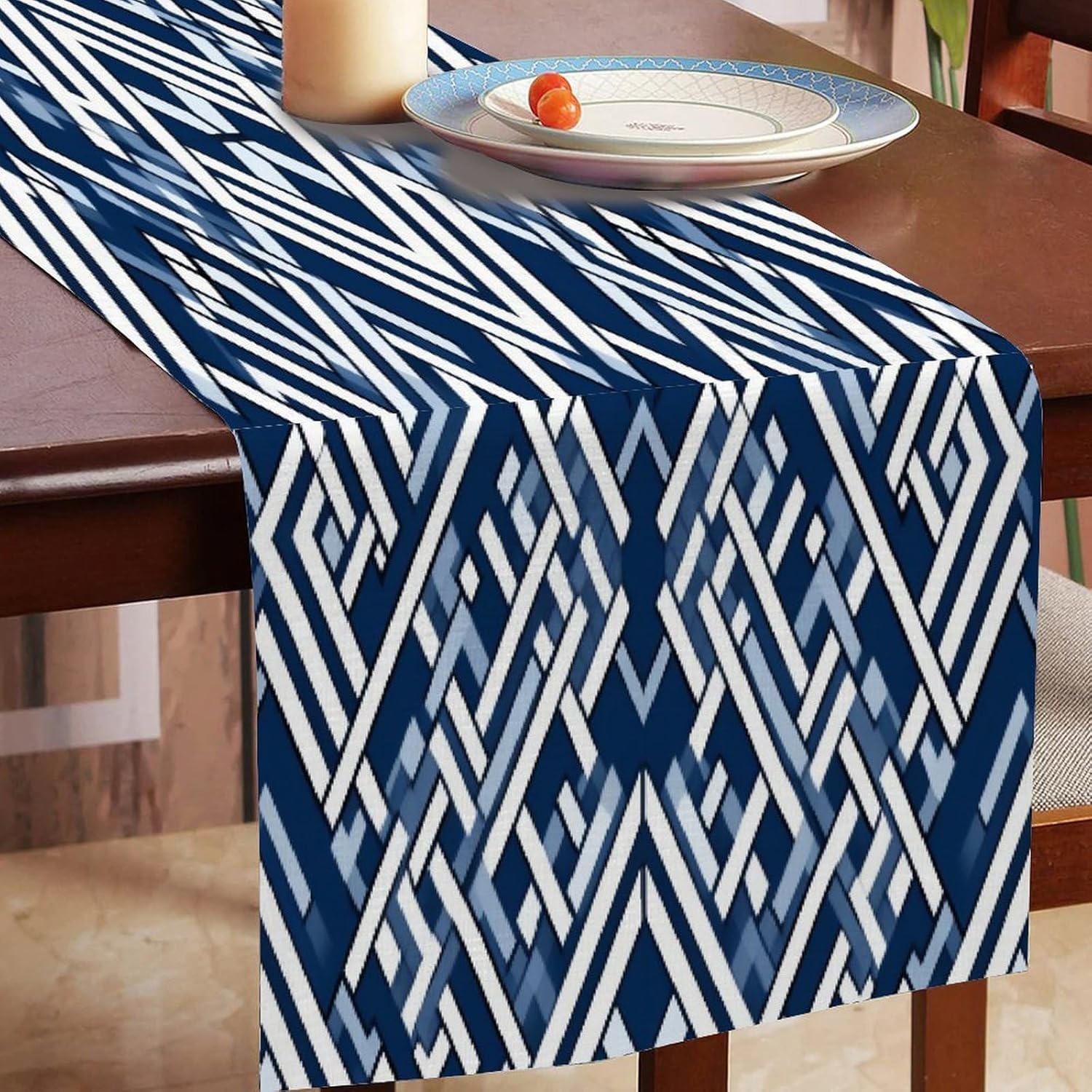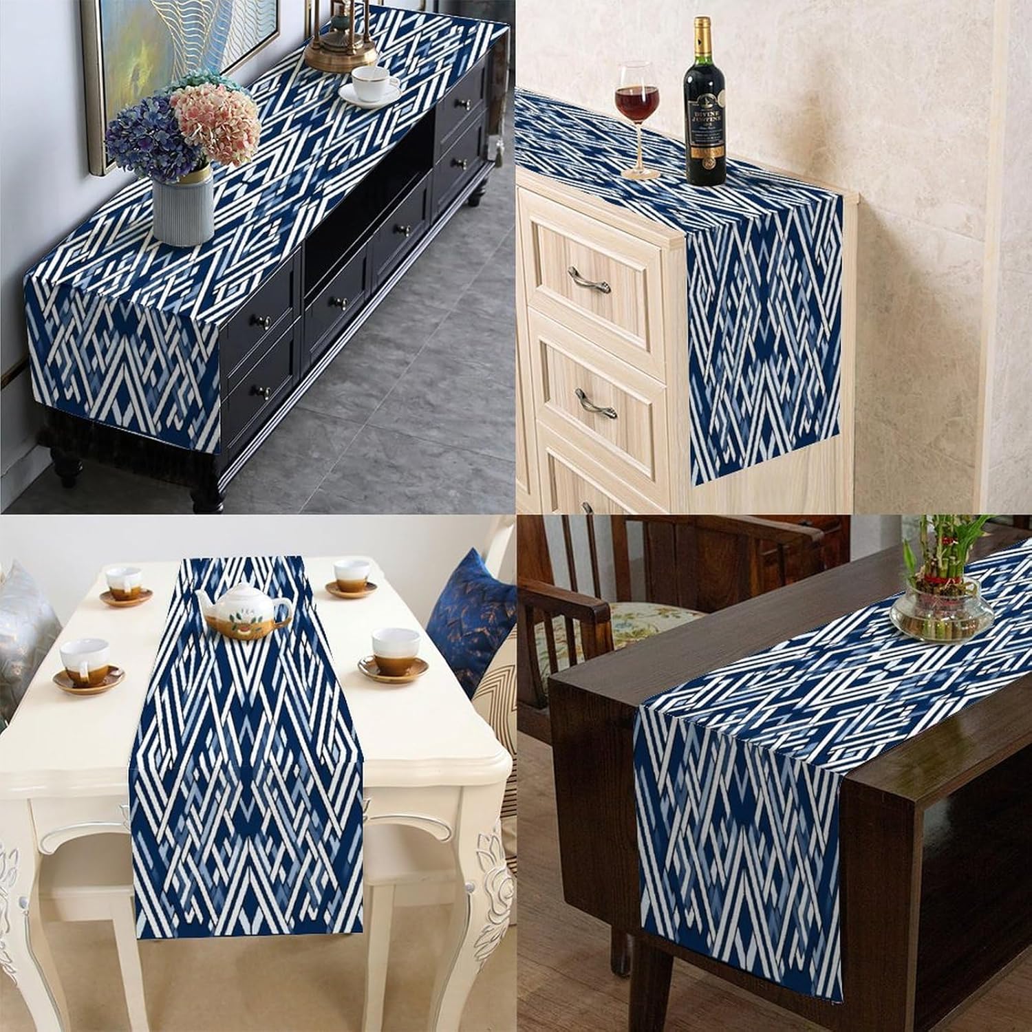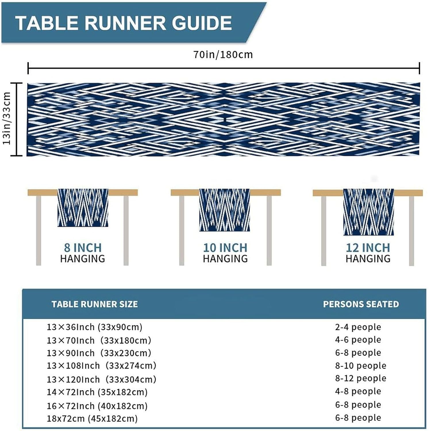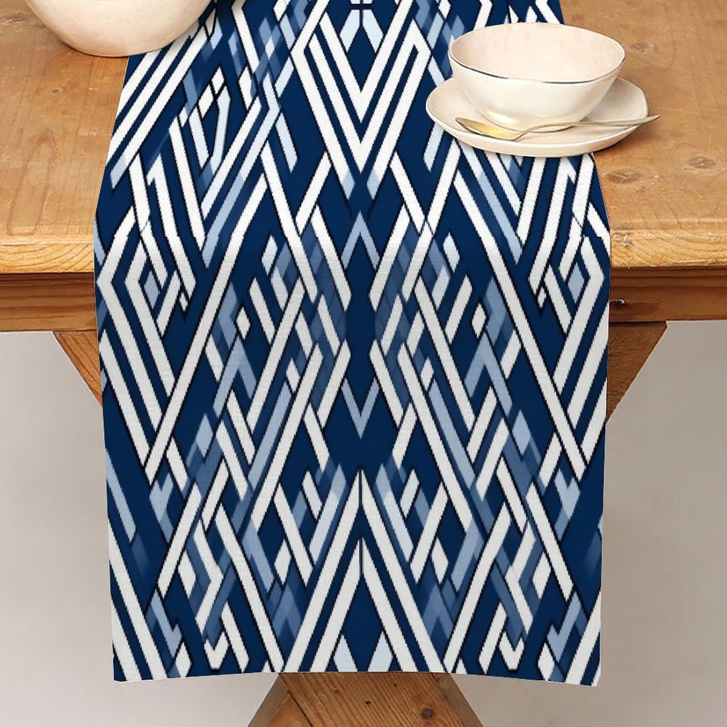 Lacefield Runner da tavolo geometrico blu con motivo a griglia, 13x70 pollici, tappetino decorativo per cucina, sala da pranzo, feste, riunioni di famiglia, decorazioni per runner da tavola