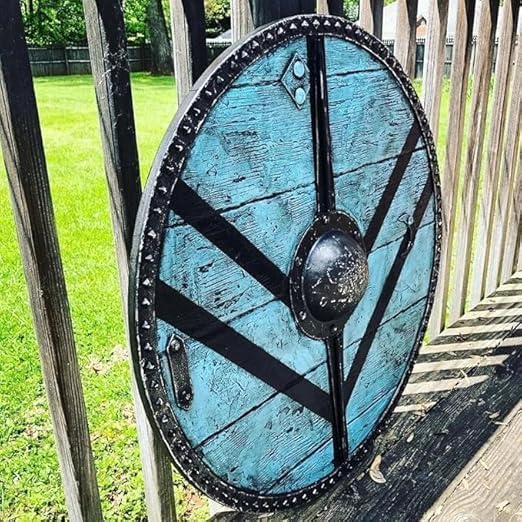 Realizzato con materiali e finiture di altissima qualità. Dimensioni: 61 x 61 cm circa. Peso: 4 kg (circa) Perfetto per decorare casa, ufficio, barca o ristorante Scudo decorativo in legno fatto a mano in stile vichingo medievale Scudo vichingo: rifinito in aspetto invecchiato naturale. Scudo nuovo e mai usato.
