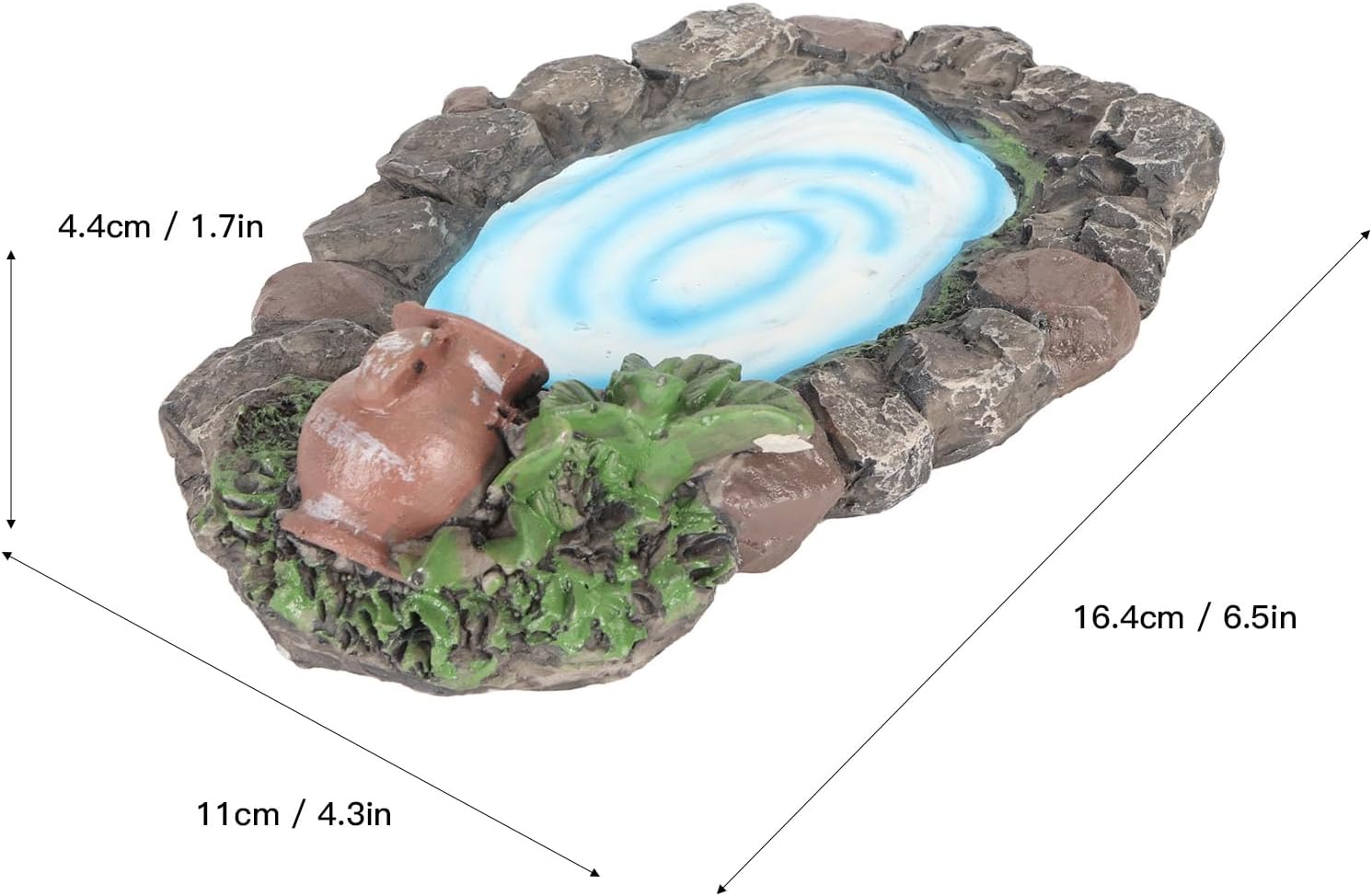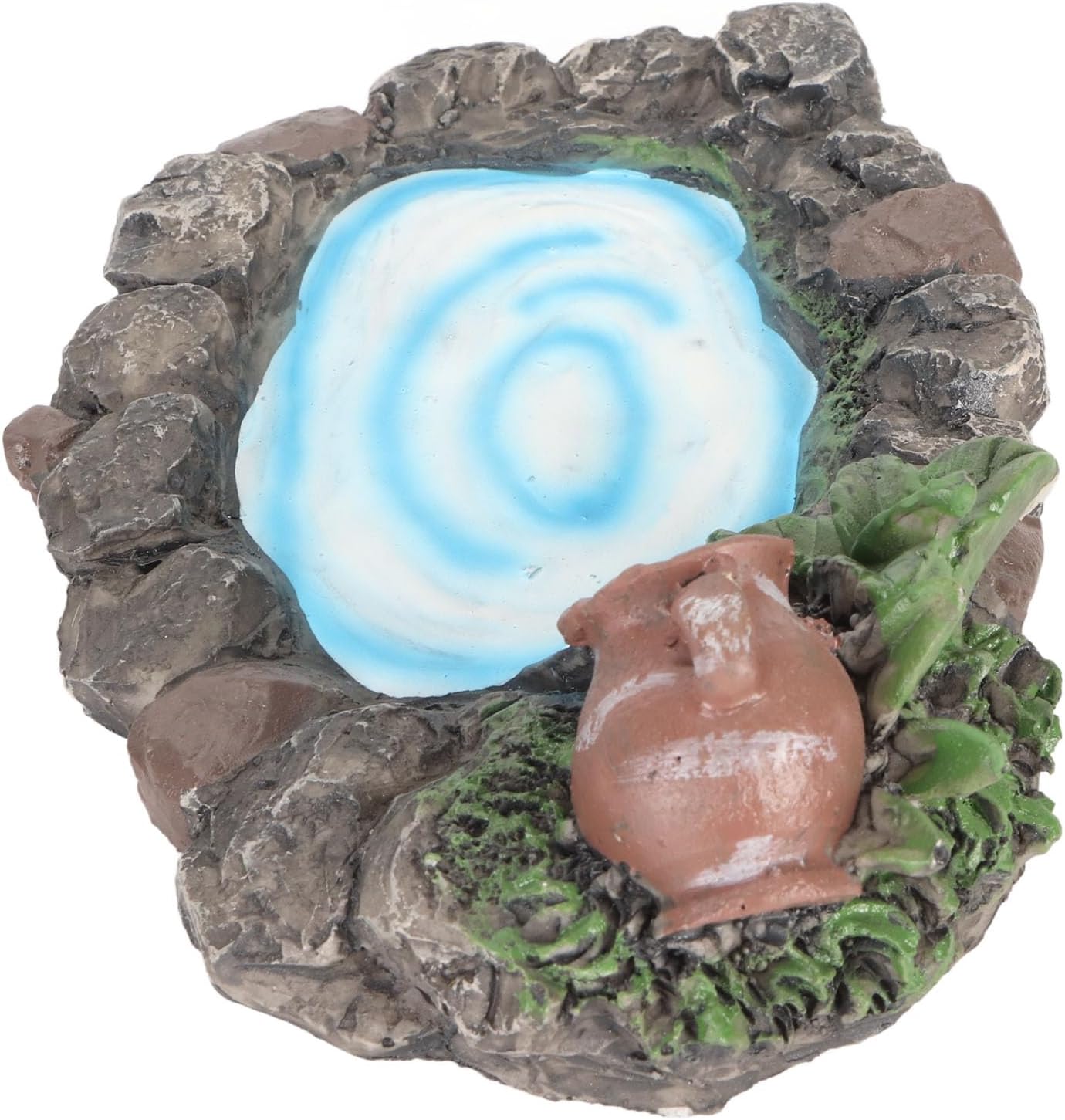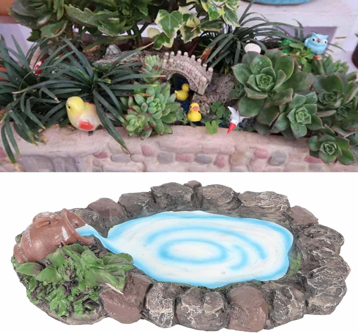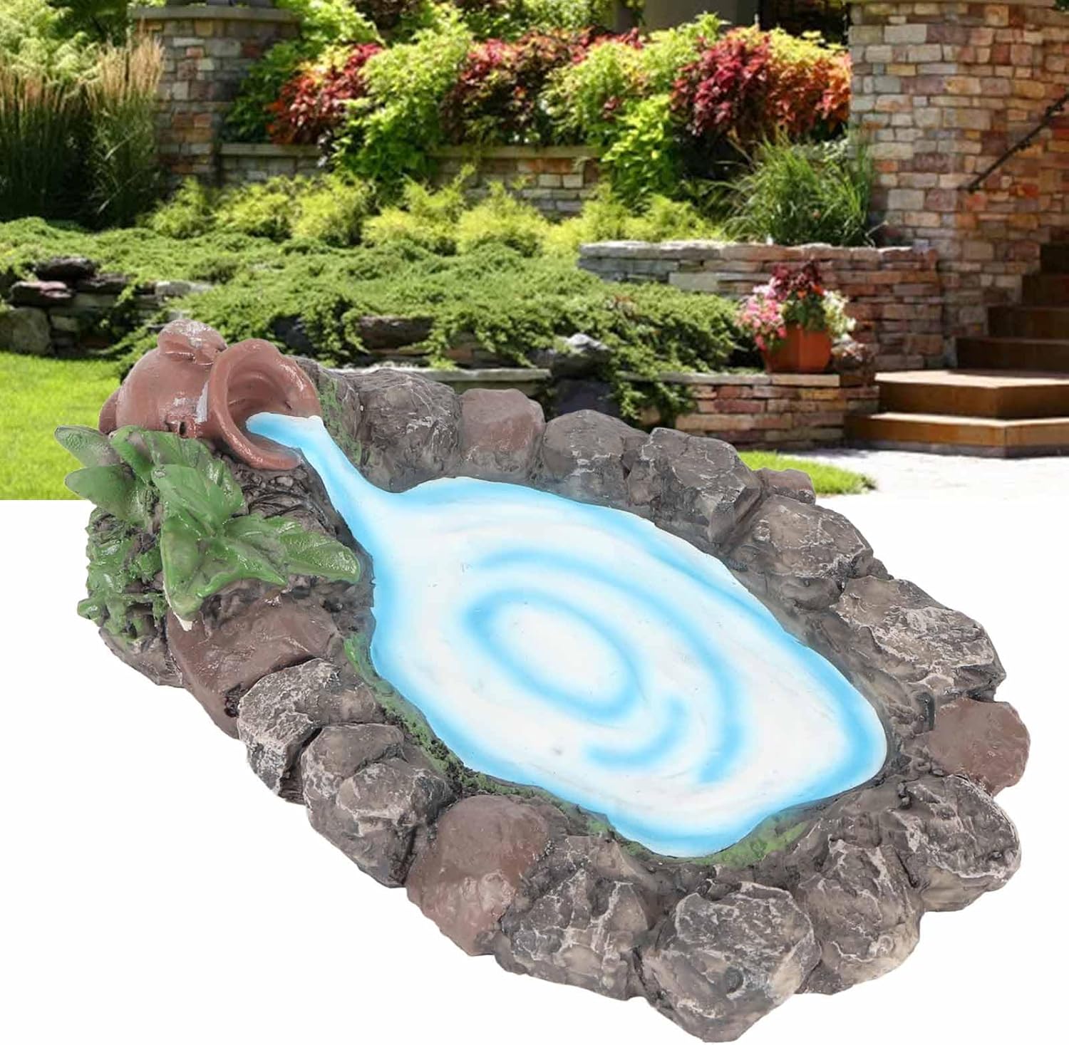 Dipinto a mano: questo laghetto roccioso da giardino fatato adotta la pittura a mano che garantisce una consistenza squisita e realistica, l'acqua e scorre costantemente nello stagno dal vaso. dettagli: questo laghetto in miniatura presenta anche pietre dettagliate con piante ed erba ai lati, essenziali per il fai-da-te e la decorazione del micro giardino. Ampia applicazione: questo laghetto roccioso da giardino in miniatura è adatto per mini giardini, terrazze, decorazioni da tavolo, ecc. Può essere abbinato a qualsiasi decorazione da giardino fatato per creare facilmente il tuo mondo meraviglioso. Materiale: questo laghetto in pietra in miniatura è realizzato in materiale di resina sintetica di alta qualità, resistente e non facile da rompere e sbiadire. ideale: questo laghetto da giardino fatato è un'ottima scelta quando vuoi dimostrare il tuo amore ad amici e familiari appassionati di giardini fatati.