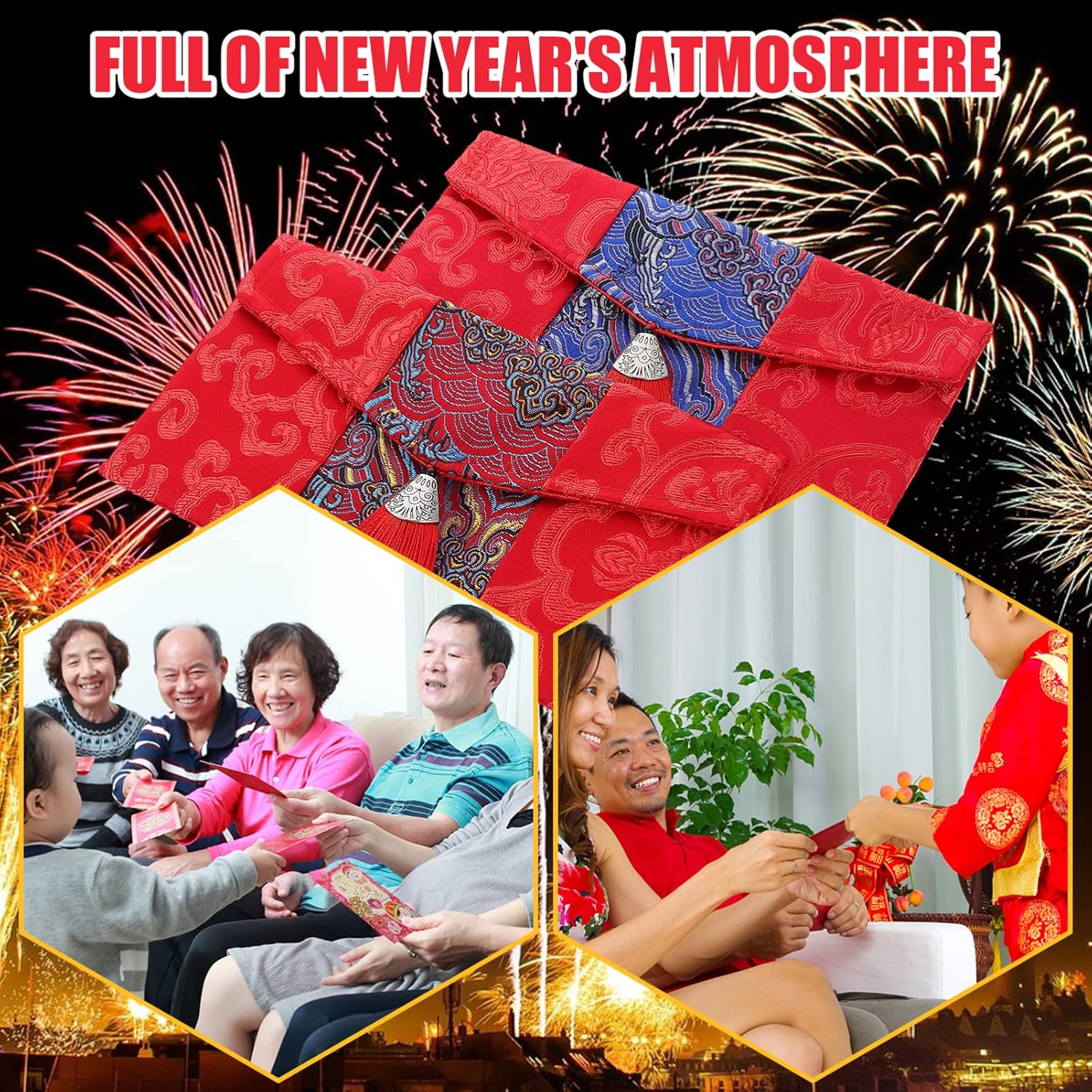 Borsa porta soldi con motivi cinesi: progettata con squisito motivo ricamato, puoi usarla per contenere soldi o biglietti di auguri, ecc., borsa porta soldi rossa in stile cinese Busta rossa ricamata: come una busta rossa, significa che auguri fortuna e salute al destinatario, busta rossa per la festa di Elegante busta rossa, realizzata con materiale in tessuto di alta qualità, squisito e lavorato con cura, busta porta soldi rossa Busta rossa per il anno: in cina, il rosso denota fortuna e ritiene che le buste rosse portino fortuna, borsa per il festival Squisito pacchetto di denaro: la che riceve la busta rossa sentirà la tua gentilezza e il tuo calore, money bag