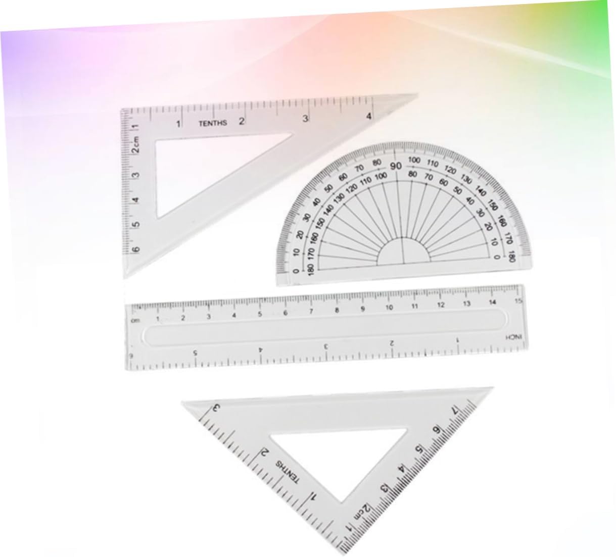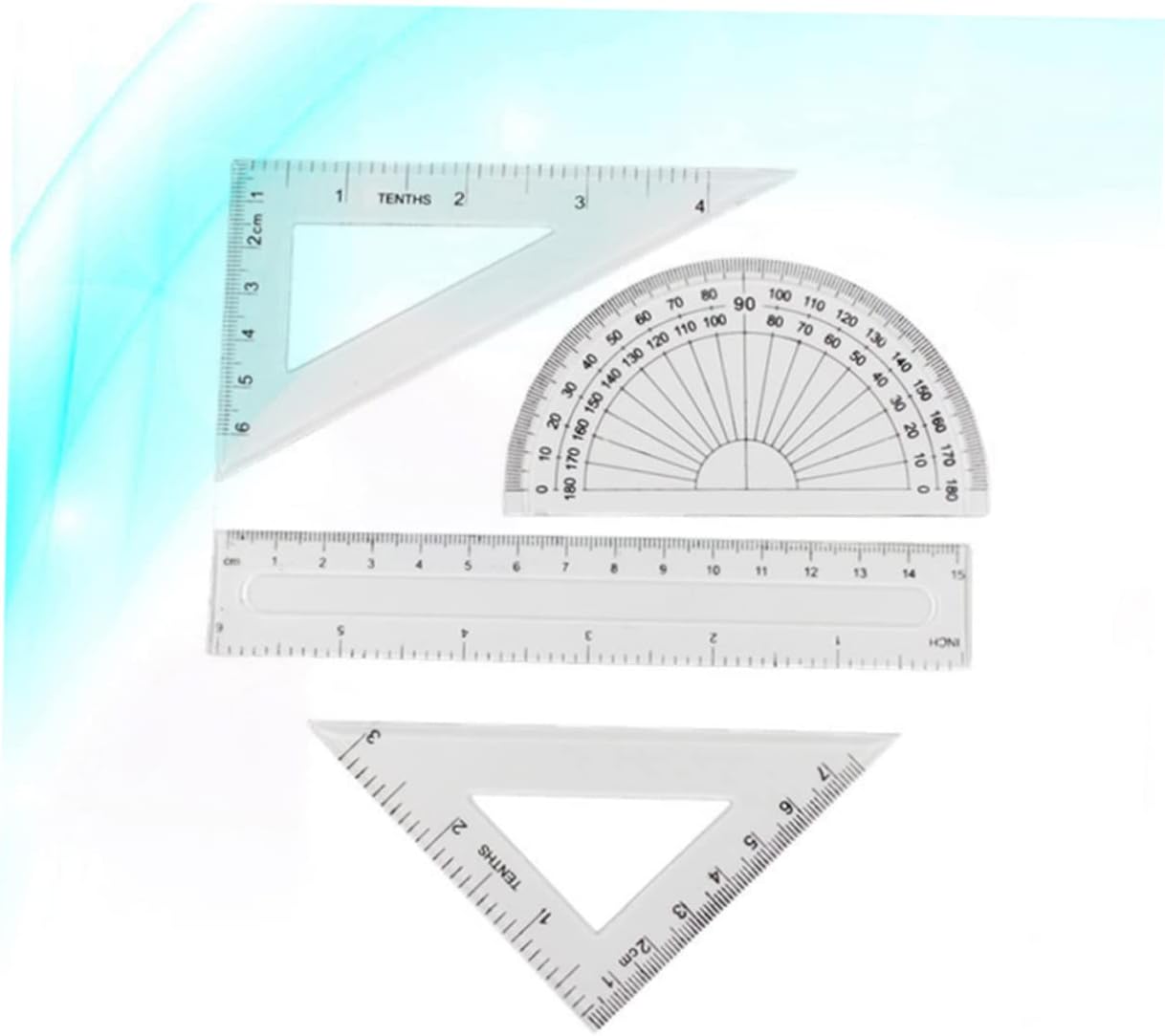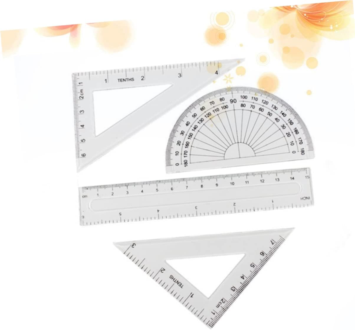 Righello trasparente: il set di strumenti geometrici è strumento utile per architetti, ingegneri, artisti, designer, studenti, insegnanti ecc., materiale scolastico Materiale scolastico: righelli trasparenti e attraverso di essi puoi vedere la pagina, righello trasparente Strumenti di disegno: lo strumento geometrico 4 in 1 contiene un righello dritto, un goniometro, 2 righelli triangolari, per uso scolastico da degli studenti, righello trasparente Dimensioni ridotte, non occupa spazio, comodo da trasportare