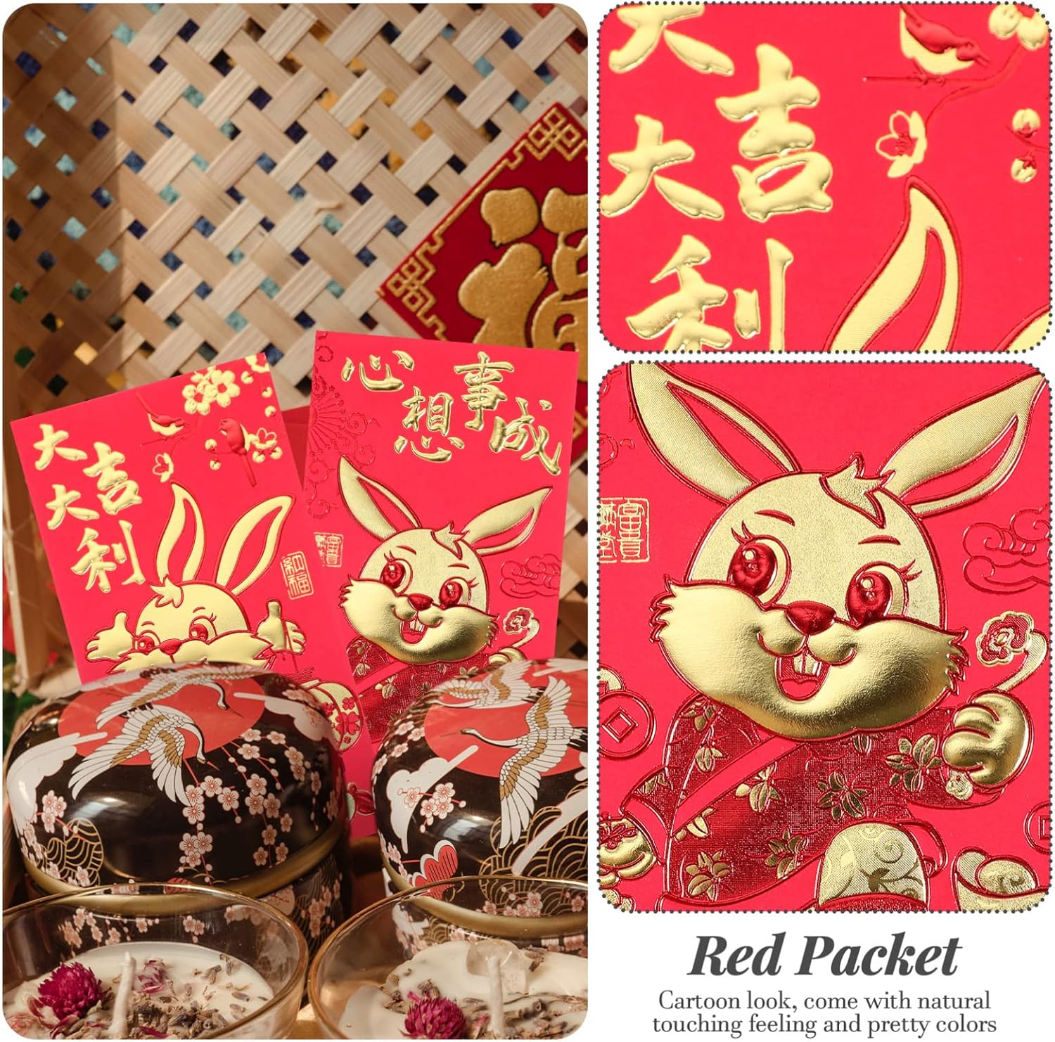 Busta rossa zodiacale 2023: sorprendi i tuoi amici o familiari con queste accattivanti buste rosse, borsa porta soldi della fortuna 2023 Porta soldi: buste rosse in stile cartone animato con motivo a coniglio, design unico e adorabile, busta rossa per festival Tasca rossa per i soldi: ti auguro felicità e salute durante il anno, capodanno Pacchetto rosso per l'anno del coniglietto: adorabile motivo a coniglio, creativo e delicato, pieno di atmosfera di capodanno, sacchetto per soldi di capodanno Sacchetto porta soldi rosso portafortuna: realizzato in carta, robusto e non facile da rompere, con superficie liscia, sacchetto porta soldi portafortuna