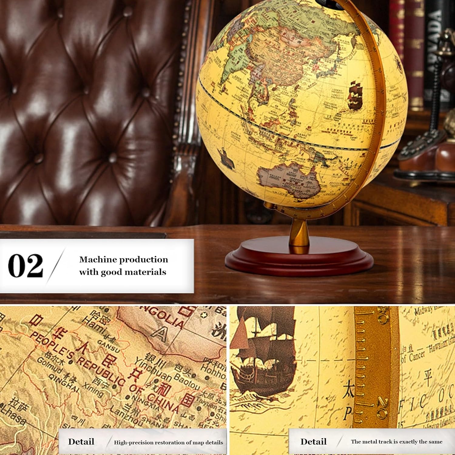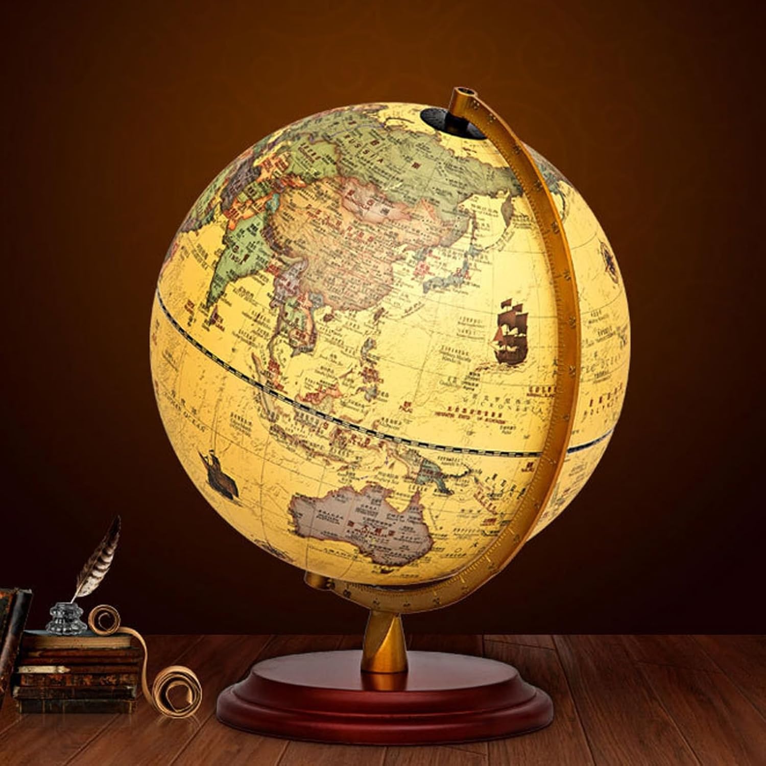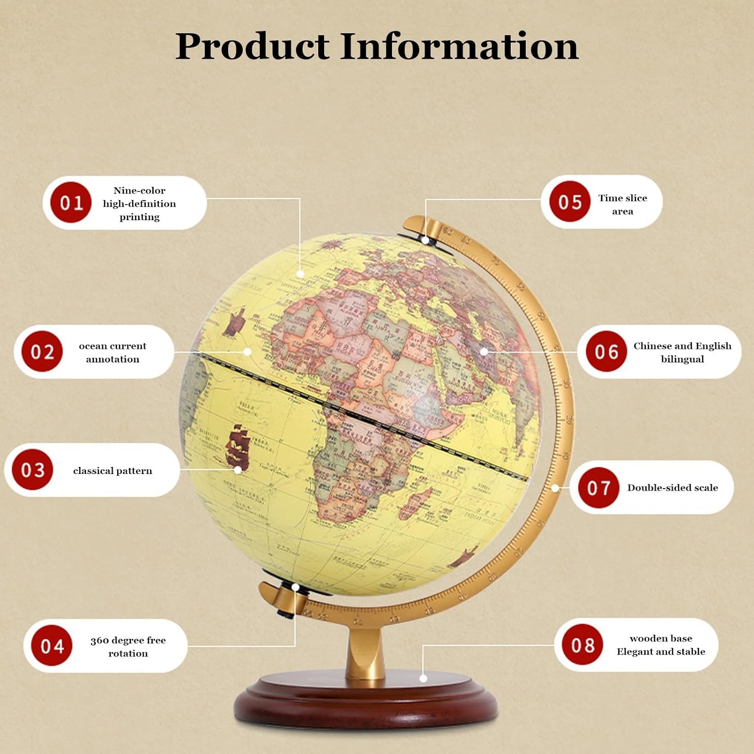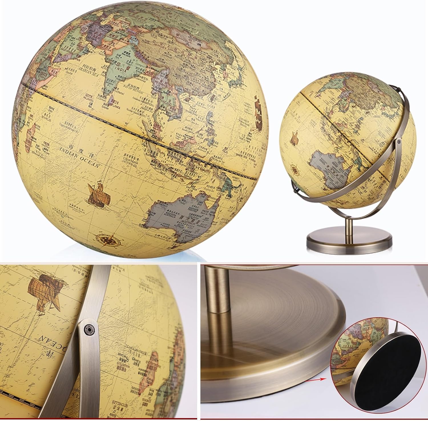 Immergiti nella geografia con questo mappamondo con etichette in inglese, che offre uno standard internazionale e mostra cinque volte più città, per una visualizzazione completa e coinvolgente. - Regala conoscenza e decorazioni con questo mappamondo da tavolo, perfetto per sviluppare competenze linguistiche, cognitive e geografiche, che lo rendono un regalo di Natale ideale per amici o genitori. - Il mappamondo è realizzato in materiale ABS di alta qualità, con stampa Word dettagliata e un robusto supporto in legno/metallo, per garantire un'esperienza lussuosa e appagante. - Arricchisci le tue conoscenze geografiche con questo esclusivo mappamondo in stile antico, dotato di illuminazione a LED per identificare facilmente paesi, confini politici, capitali e molto altro. - Questo mappamondo di alta gamma è caratterizzato da una precisione eccezionale e da materiali di prima qualità, che lo rendono un'aggiunta straordinaria a qualsiasi arredamento per la casa o l'ufficio, oppure un regalo premuroso per gli amanti dell'arredamento.