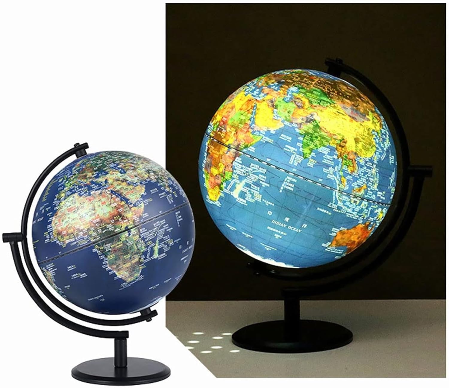 - OGGETTO DA SCRIVANIA - Perfetto per persone di tutte le età, questo mappamondo è un regalo unico e premuroso per compleanni, festività o qualsiasi occasione speciale. - REGALO PERFETTO - Combinando estetica e valore educativo, questo mappamondo da tavolo è un regalo perfetto per amici o familiari, in particolare per i genitori che desiderano arricchire le conoscenze e le competenze dei propri figli. GLOBO DI ALTA QUALITÀ - Realizzato in materiale PVC di alta qualità con stampa ad alta definizione e base in metallo, questo globo trasuda lusso e qualità. - STRUMENTO EDUCATIVO - Questo mappamondo è dotato di illuminazione a LED, il che lo rende uno strumento pratico e visivamente straordinario per imparare a conoscere paesi, città e confini. - DECORAZIONE ELEGANTE - Grazie alla sua lavorazione precisa e ai materiali di prima qualità, questo globo non è solo una mappa, ma anche una splendida decorazione per qualsiasi ambiente domestico o d'ufficio.