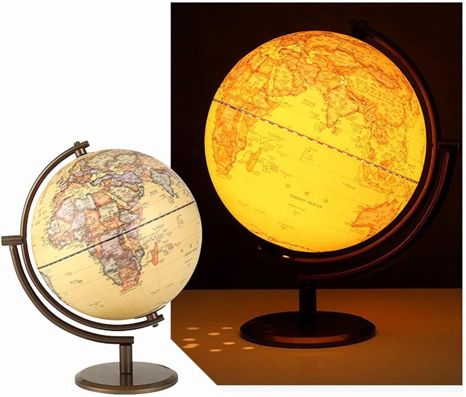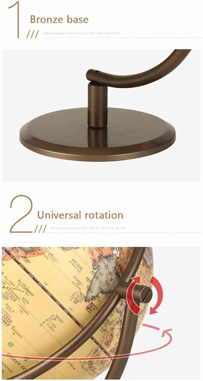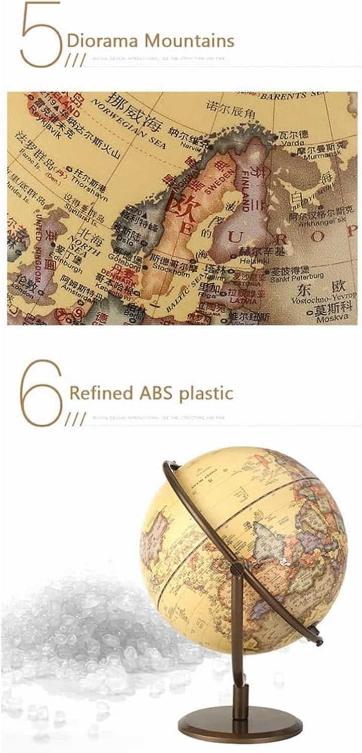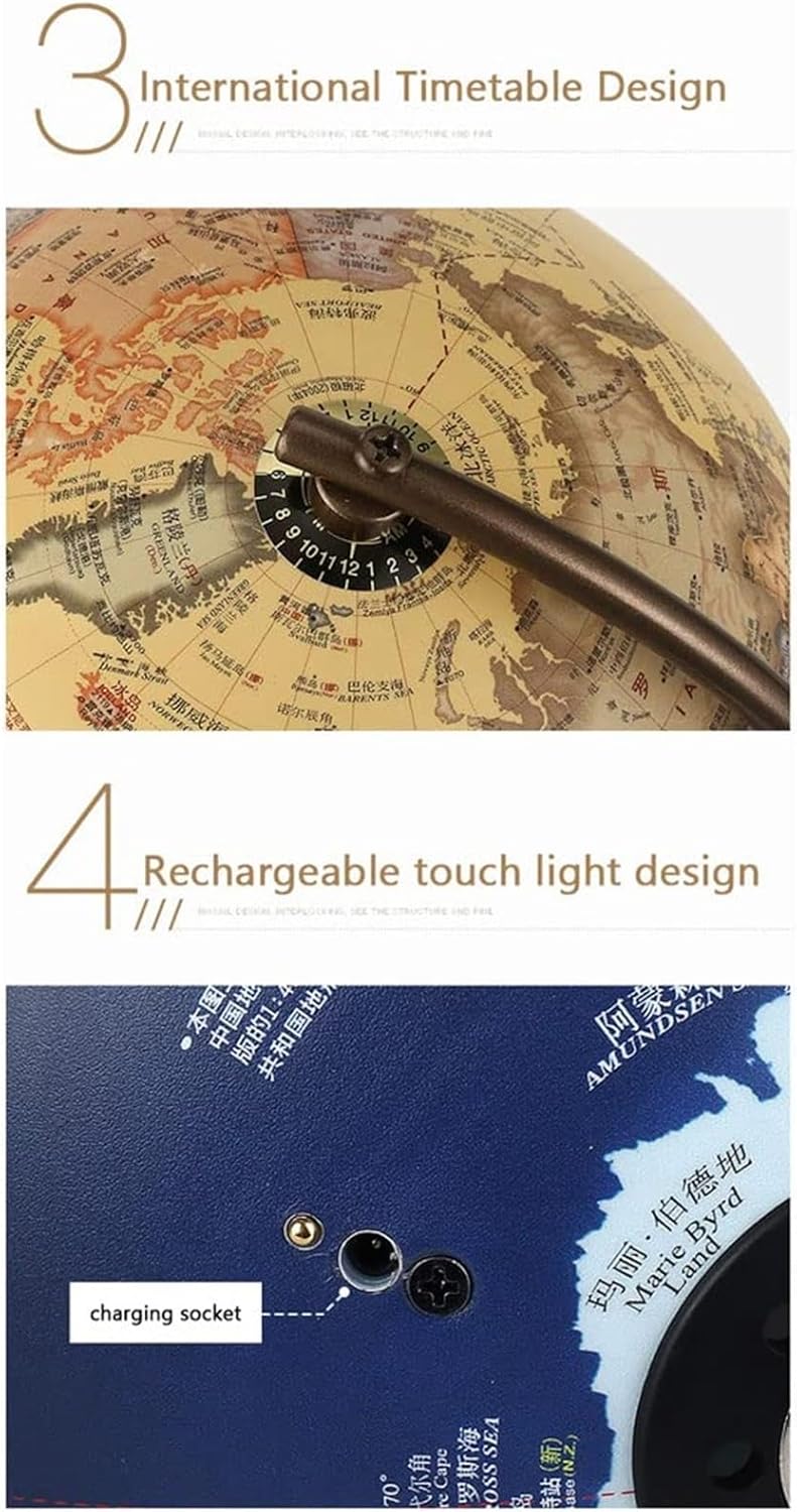 - OGGETTO DA SCRIVANIA - Perfetto per persone di tutte le età, questo mappamondo è un regalo unico e premuroso per compleanni, festività o qualsiasi occasione speciale. - REGALO PERFETTO - Combinando estetica e valore educativo, questo mappamondo da tavolo è un regalo perfetto per amici o familiari, in particolare per i genitori che desiderano arricchire le conoscenze e le competenze dei propri figli. GLOBO DI ALTA QUALITÀ - Realizzato in materiale PVC di alta qualità con stampa ad alta definizione e base in metallo, questo globo trasuda lusso e qualità. - STRUMENTO EDUCATIVO - Questo mappamondo è dotato di illuminazione a LED, il che lo rende uno strumento pratico e visivamente straordinario per imparare a conoscere paesi, città e confini. - DECORAZIONE ELEGANTE - Grazie alla sua lavorazione precisa e ai materiali di prima qualità, questo globo non è solo una mappa, ma anche una splendida decorazione per qualsiasi ambiente domestico o d'ufficio.