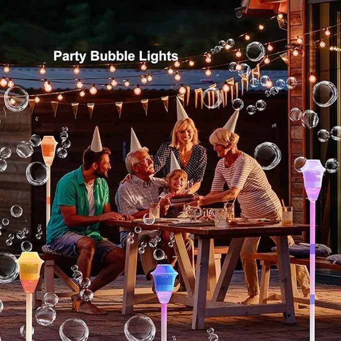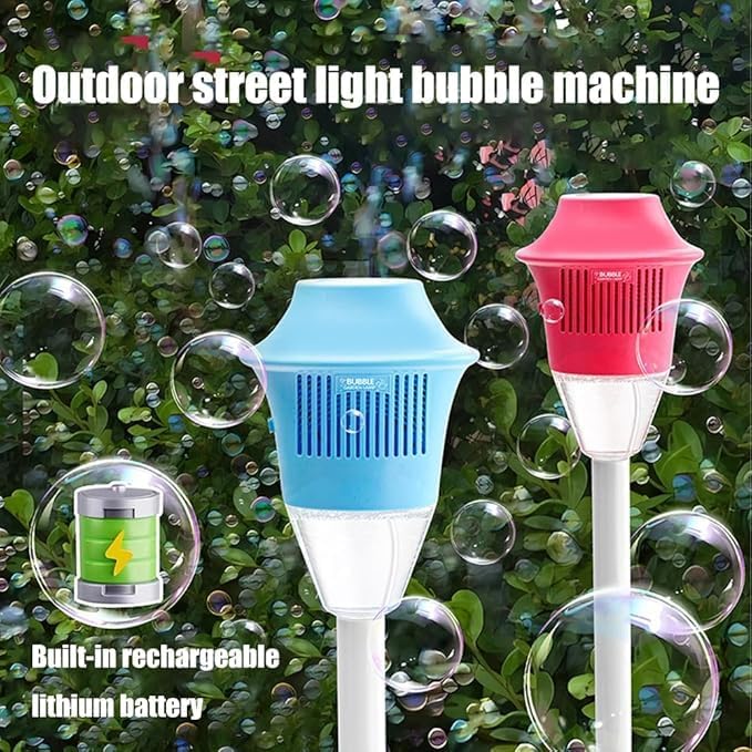Altezza regolabile e uso versatile: la lampada da giardino Bubble Torch presenta un design personalizzabile del tubo a tre sezioni, che consente un'altezza regolabile adatta a varie occasioni e preferenze dell'utente Elevata produzione di bolle e funzionamento semplice: con la capacità di produrre oltre 20.000 bolle al minuto, questa macchina per bolle offre divertimento continuo con una semplice operazione con un solo pulsante per un intrattenimento senza sforzo Luci LED colorate per un divertimento aggiuntivo: Le luci LED colorate integrate creano un'atmosfera magica, Progettata sia per uso interno che esterno Opzioni di montaggio stabili e multi-superficie: La macchina per bolle può essere fissato saldamente riempiendo la base con acqua o inserendola nel terreno, garantendo stabilità durante il funzionamento su varie superfici Luci a LED colorate e regalo ideale: le vivaci luci a LED integrate migliorano l'esperienza creando un'atmosfera magica, rendendo questa macchina per bolle un regalo ideale per bambini, animali domestici o come strumento di intrattenimento per feste