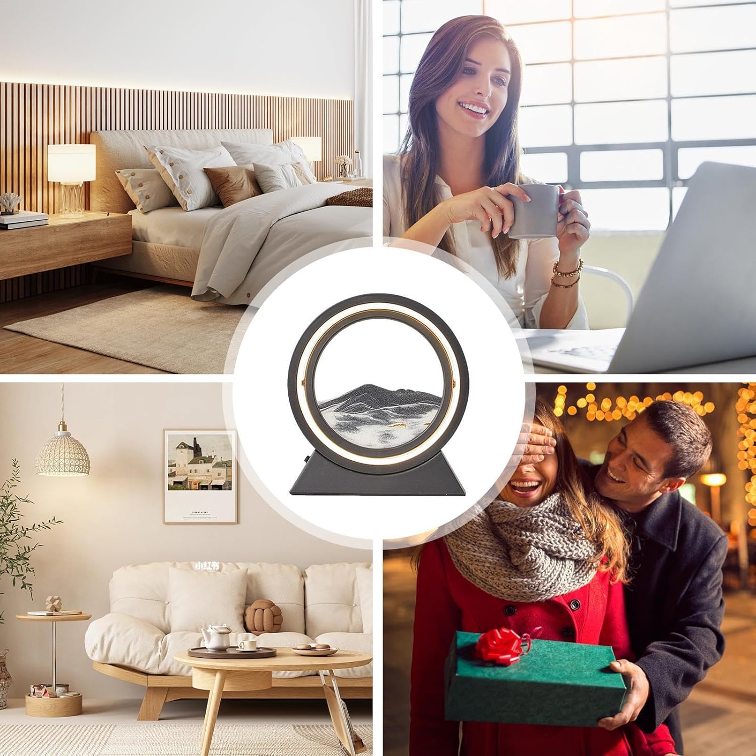 Esperienza visiva dinamica: assisti a un'affascinante miscela di luce e liquido in questa Moving Sand Art. La sabbia fine abbinata alla luce tricolore regolabile crea paesaggi visivi dinamici con rotazione completa di 360 Flessibilità atmosferica: trasforma qualsiasi stanza in un luogo tranquillo con la nostra Moving Sand Art, dotata di opzioni di illuminazione regolabili calde, neutre e bianche, perfette per creare un ambiente sereno adatto a qualsiasi stato d'animo o occasione, un must per alleviare lo stress e bisogni di ringiovanimento decorazione per la casa: trasforma qualsiasi spazio in un incantevole santuario con questa arte della sabbia in movimento. La sua accattivante esposizione di sabbie mobili che scendono lentamente come una cascata, assomigliando alla sabbia volante, funge da accento elegante e sorprendente nella stanza. La base antiscivolo garantisce sicurezza e lo rende un complemento perfetto per qualsiasi arredamento domestico Comodo da usare: crea immagini affascinanti di sabbie mobili che cadono e si bolle e ruota in modo sorprendente la sand art di 180; goditi un divertimento senza sforzo per 10 minuti; libera la tua creatività Ottimo regalo: crea momenti indimenticabili con questa affascinante arte della sabbia in movimento. Perfetto per ogni occasione, mette in mostra straordinario scenario naturale che si trasforma continuamente, donando un'atmosfera unica a ogni stanza