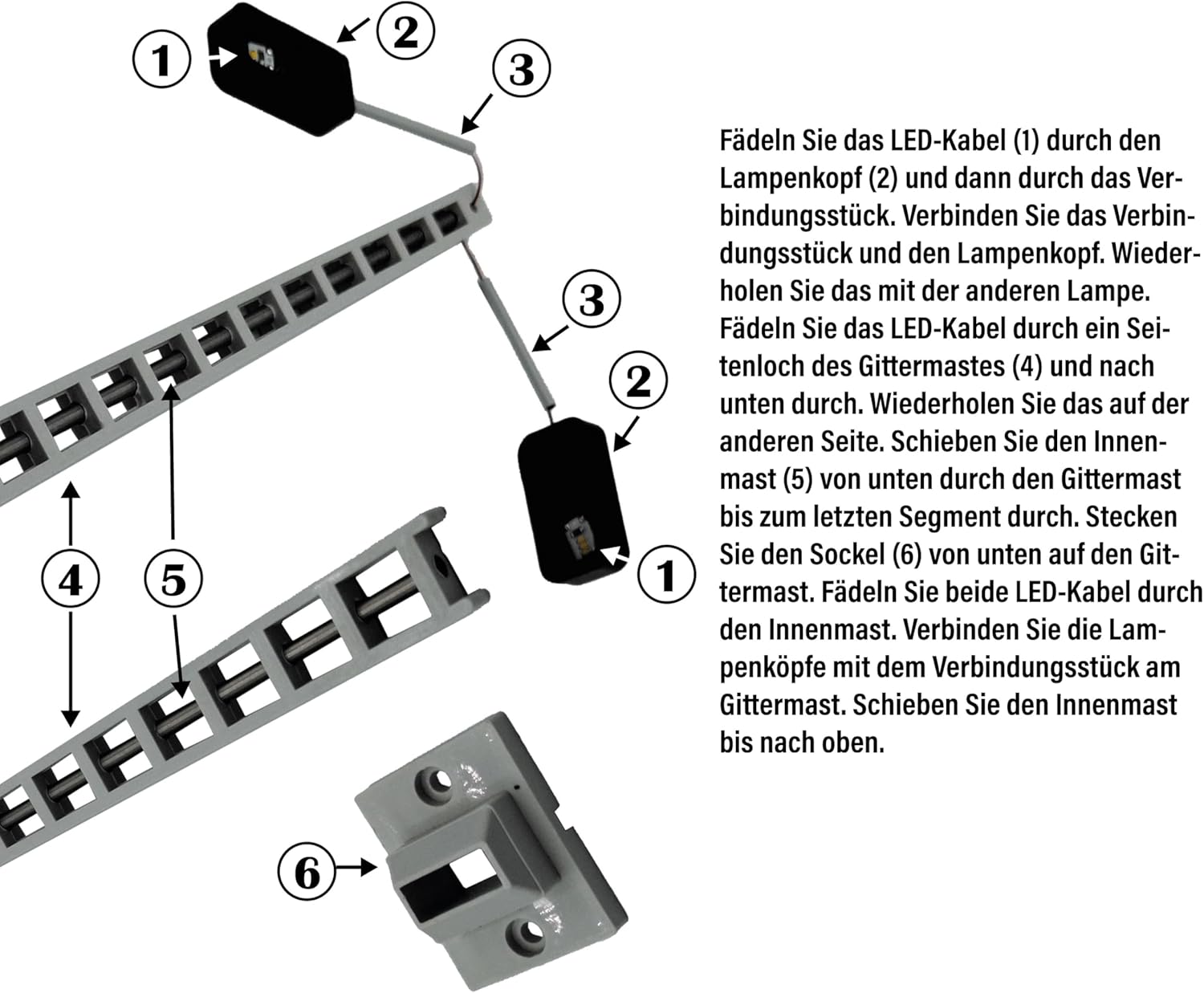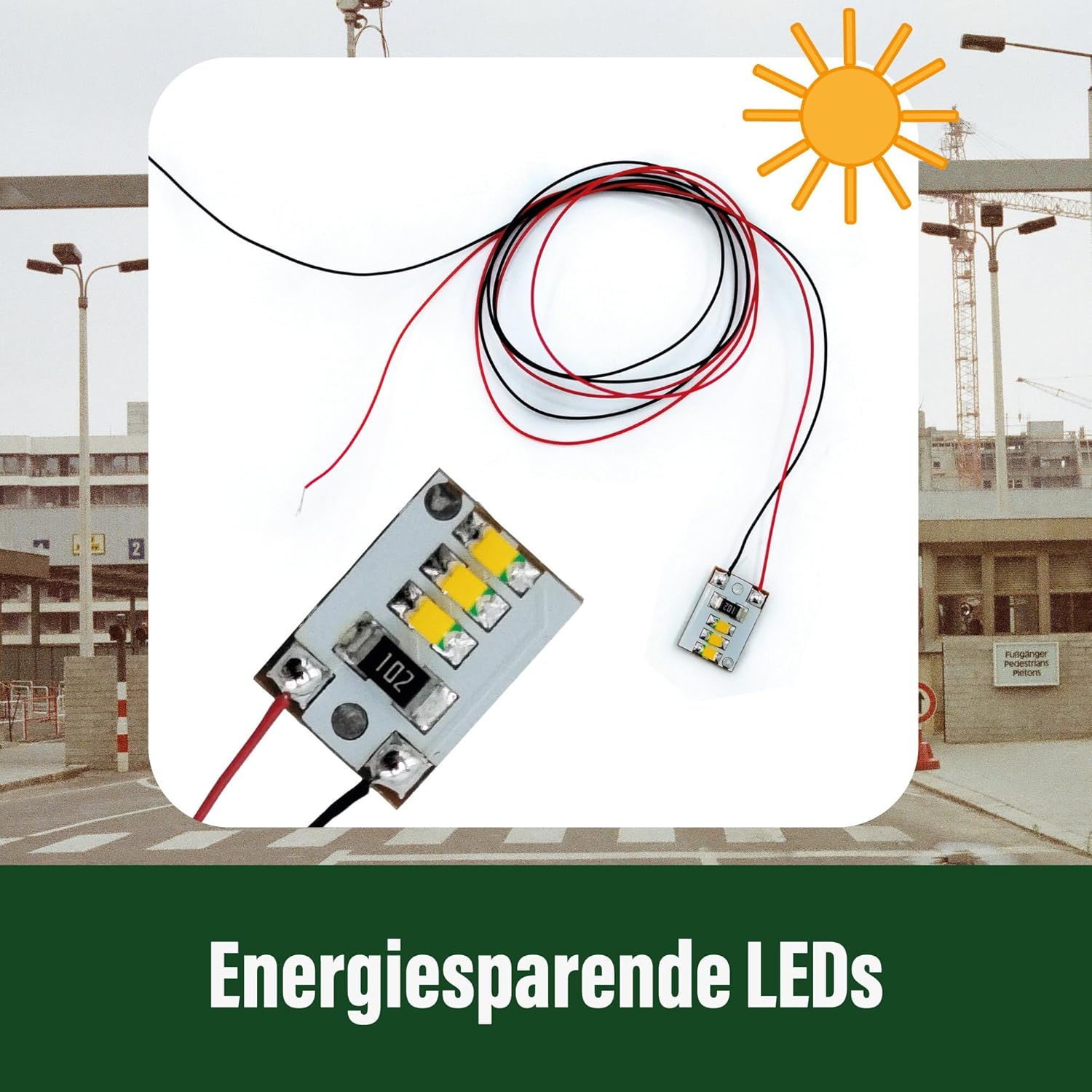 REPLICA FEDELE ALL'ORIGINALE DELLA DDR: replica a due fiamme di una classica lampada industriale della DDR, perfetta per scenari storici di modellismo ferroviario e per collezionisti. ILLUMINAZIONE A LED A EFFICIENZA ENERGETICA: dotata di LED a lunga durata e a risparmio energetico che forniscono un'illuminazione uniforme e brillante con una tensione operativa di 5-24 V. Palo a traliccio RESISTENTE ALLE INTEMPERIE: robusto palo a traliccio realizzato in plastica resistente agli agenti atmosferici, ideale per uso esterno e resistente a condizioni atmosferiche estreme. DUREVOLE E AFFIDABILE: materiali di alta qualità e un'attenta lavorazione garantiscono una lunga durata e prestazioni affidabili della lampada. FACILE MONTAGGIO E INTEGRAZIONE: La lampada è facile da montare e può essere facilmente integrata nei sistemi ferroviari in miniatura esistenti, rendendola versatile.