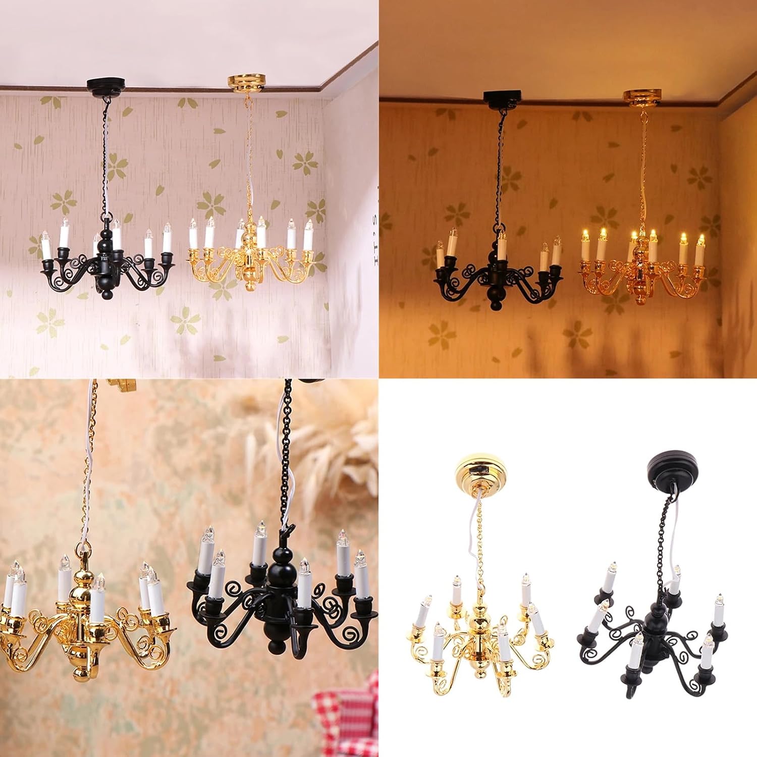 Utilizza materiali selezionati in metallo e ABS. Questo lampadario dorato presenta sei teste con design a luce calda che catturano perfettamente le essenze degli stili classici europei Questa lampada da soffitto in miniatura per gli appassionati di case delle bambole, collezionisti di modelli e hobbisti migliora la creatività e nei tuoi progetti Questa lampada decorativa non è solo un accessorio ma anche un pezzo importante che trasforma i mobili della tua casa delle bambole in una vetrina di artigianato e stili Perfetto per il soggiorno e la zona pranzo delle case delle bambole, crea atmosfere calde e sofisticate, dando vita alla tua scena in miniatura Aumenta le tue case delle bambole con la lampada da tavolo in miniatura che aggiunge un tocco di eleganza e è realistica a qualsiasi ambiente in miniatura