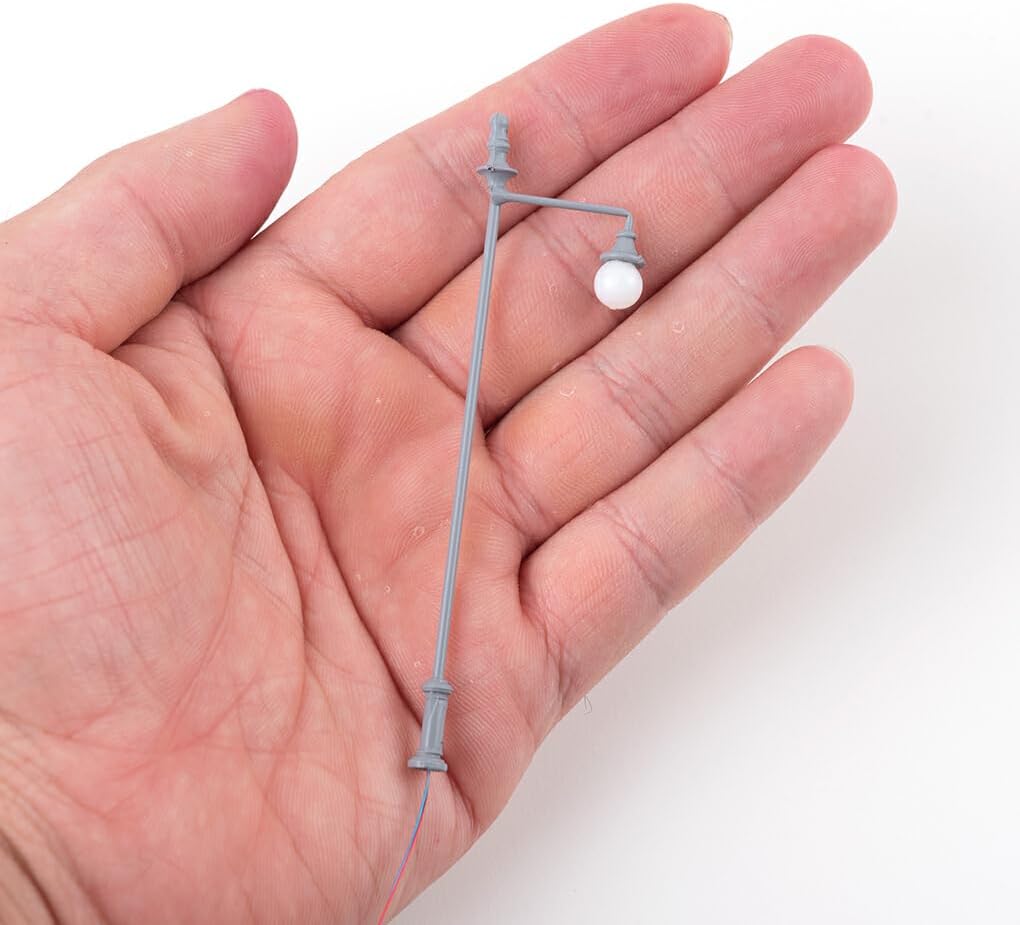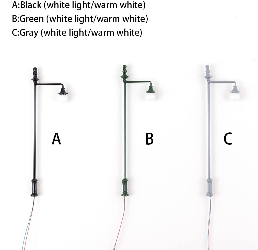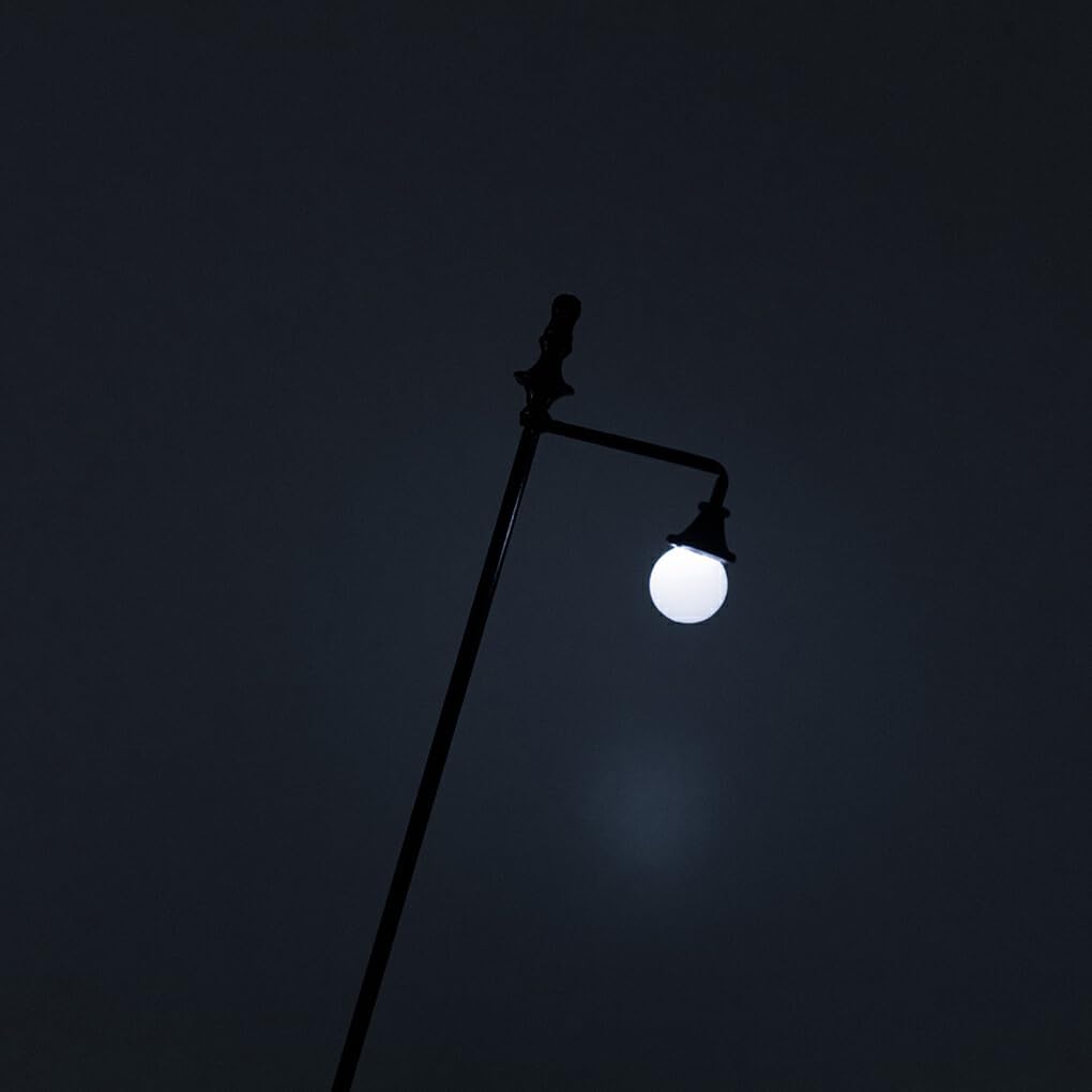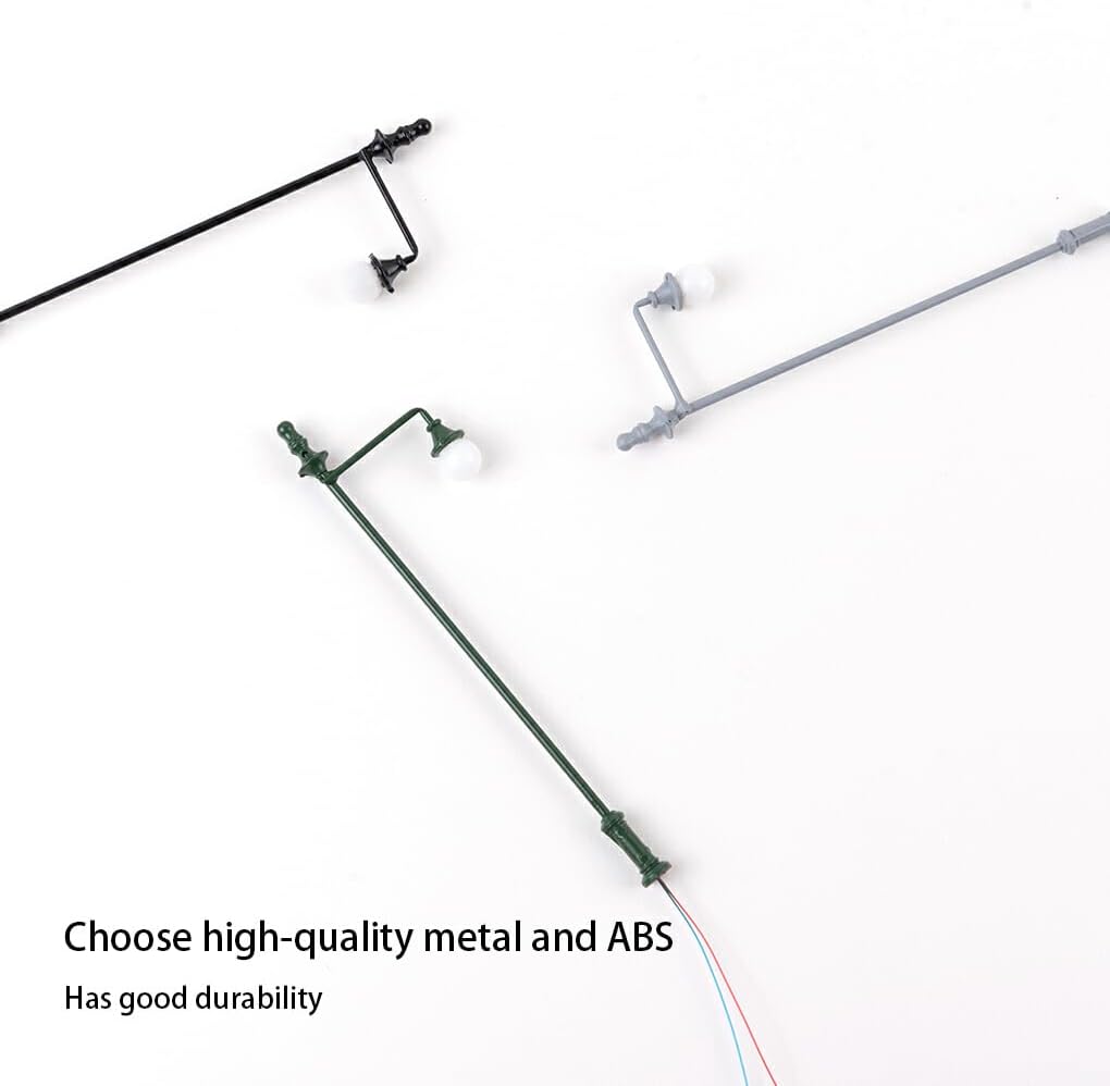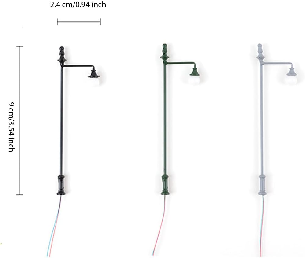 Materiale premium: il lampione in miniatura sceglie metallo e ABS di prima qualità, che godono di una buona durata Set di accessori: la mini lampada viene fornita con cavi e lampadine, che sono comodi da usare e da illuminare Dettagli fini: la lampada in miniatura è di piccole dimensioni e presenta pregevole fattura e dettagli squisiti Luce soffusa: il lampione ha un'illuminazione morbida che non abbaglia e può proteggere i tuoi occhi Ampiamente usato: la lampada è adatta per decorare strade, treni, edifici, giardini, muschi, parchi e strutture ferroviarie