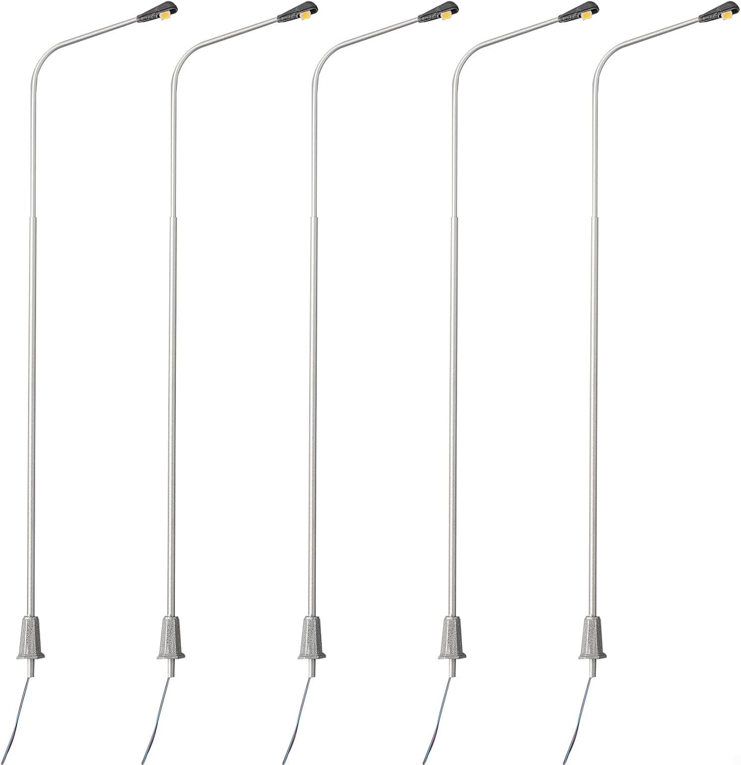 Set completo di lampioni: questo set include 5 lampioni dal design accattivante, ciascuno alto 20 cm, perfetto per migliorare il layout del modello ferroviario e le decorazioni bonsai. [Illuminazione a LED] Dotate di LED ad alta efficienza energetica, queste lampade forniscono una luce calda che dà vita alle tue scene in miniatura mentre funzionano con una tensione sicura di 3 V. [ADATTO PER SCALA 0] Specificamente progettati per ferrovie in scala 0, questi lampioni si integrano perfettamente nelle configurazioni esistenti, aggiungendo un tocco di realismo. [Include resistori serie] La confezione viene fornita con 5 resistori serie per l'uso con trasformatori da 12 V e 16 V, garantendo compatibilità e facilità d'uso senza danneggiare i LED. [Promemoria dimensioni] Si prega di controllare le misure della scala prima dell'acquisto per queste lampade si adattano alle esigenze del modello.