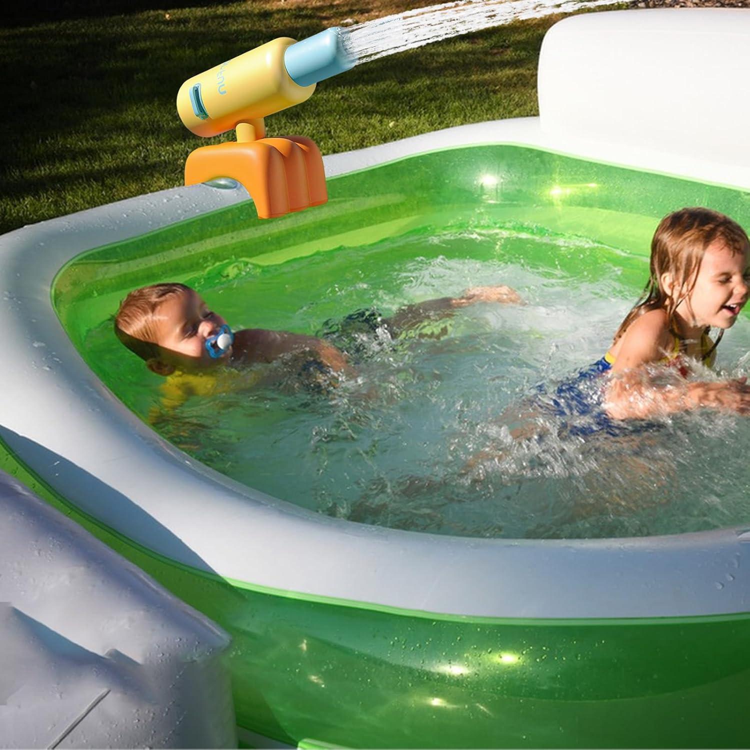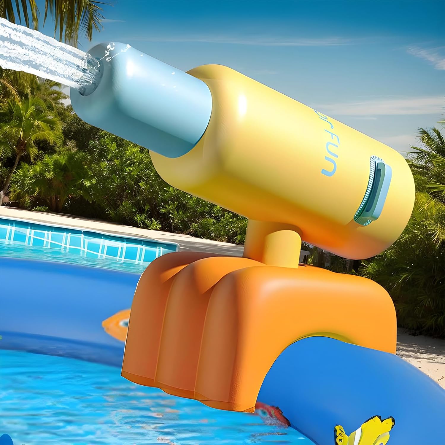 Gioco all'aperto: scopri varie modalità di spruzzo per divertirti ancora di più. Facile collegamento a qualsiasi tubo standard grazie al raccordo, che consente un utilizzo organizzato durante le attività all'aperto e promuove momenti familiari attivi intorno all'acqua Tempo libero in famiglia: Compagno ideale per le giornate soleggiate, questa pistola ad acqua intrattiene grandi e piccini durante le attività all'aperto, portando freschezza e divertimento continuo per mantenere l'interesse senza sforzo Maggiore piacere del nuoto: Goditi un'installazione attenta grazie a questa lancia ad acqua compatibile con piscine adatte, portando immediatamente eccitazione e divertimento alle tue attività acquatiche senza procedure complesse. Resistenza solare: realizzato in PVC resistente ai raggi UV per una lunga durata, rimanendo morbido e sicuro per bambini e animali domestici durante i giochi acquatici all'aperto. Controllo dinamico: partecipa a divertenti attività all'aperto con alta pressione di 5 secondi, direzioni di spruzzo adattabili e un sistema gonfiabile intuitivo per anni.