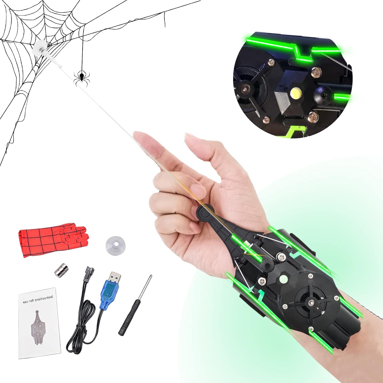 Prodotto durevole: il trasmettitore di rete utilizza materiale ABS, processo di lucidatura manuale. Dopo numerosi test anticaduta e di flessione, la qualità è garantita, le cuciture sono strette, resistenti, affidabili, flessibili e facili da trasportare Ben progettato: questo è un lanciatore dal design luminoso, con cinturino da polso regolabile, comodo da indossare, può lanciare ragnatele, indossarlo for immaginarti come il tuo supereroe preferito e simulare vari scenari, è un fantastico giocattolo for lanciare ragnatele Modi di gioco interessanti e diversi: premere l'interruttore di lancio for lanciare, la distanza effettiva del lanciatore di ragnatele può raggiungere 9,8 piedi, la testa magnetica con magnete può essere assorbita su prodotti in ferro dopo il lancio o utilizzare una ventosa invece di un magnete e la testa può essere fissata su una superficie liscia (come piastrelle di ceramica, vetro) Facile da usare: metti il trasmettitore web al polso e allaccia il cinturino, premi l'interruttore sul palmo con il dito medio for mirare all'oggetto, premi a lungo l'interruttore sulla coda for ritrarre completamente il filo. Dopo aver ripreso la linea, premere la testa del trasmettitore for immagazzinare la potenza; dopo aver immagazzinato l'energia, premere nuovamente l'interruttore di riavvolgimento Questi fantastici gadget sono perfetti per feste in maschera, giochi interattivi, giochi di ruolo, feste di Halloween, spettacoli teatrali, uso quotidiano o altre occasioni. Fanno parte dell'equipaggiamento dei supereroi e trasformano le tue fantasie più folli in realtà. Anche gli adulti possono rivivere l'emozione dei loro momenti comici preferiti.