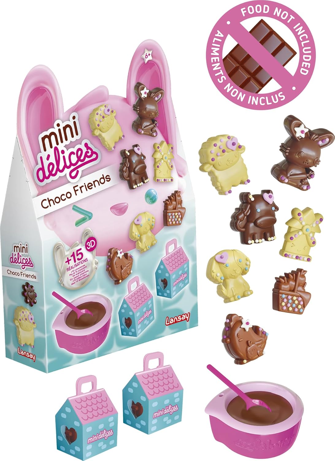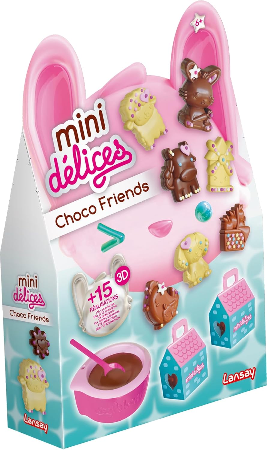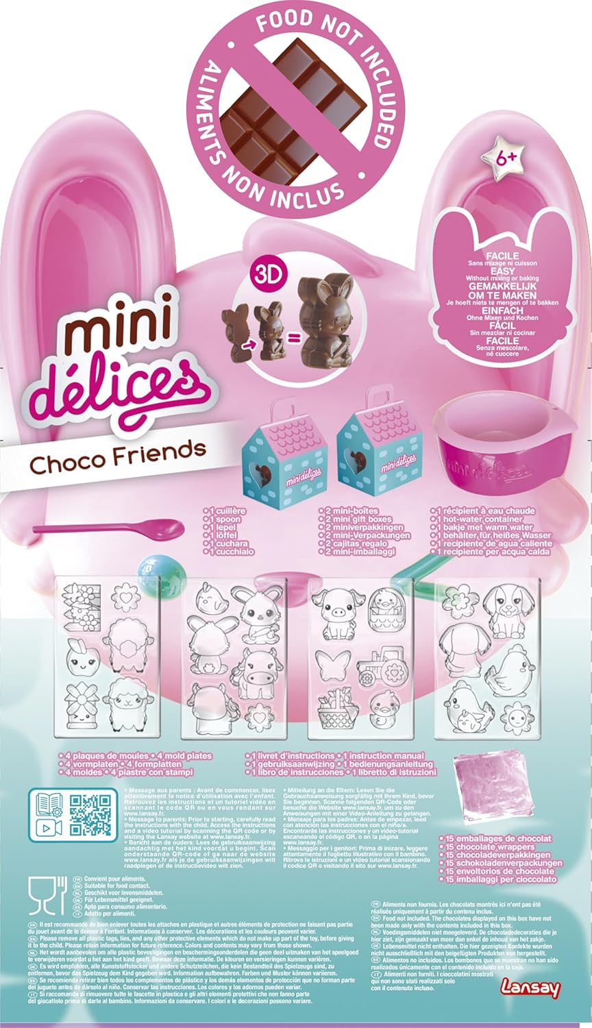 CREAZIONE DI ANIMALI DI CIOCCOLATO: Questa scatola divertente e creativa permette ai bambini dai 6 anni in su di creare fino a 15 cioccolatini in 3D e 2D. Possono facilmente sciogliere il cioccolato, riempire stampi e creare dolcetti adorabili e unici. Non sono previste cioccolata fondente e decorazioni. KIT DI ATTIVITÀ COMPLETO E DELIZIOSO: questo kit per la creazione di cioccolato contiene tutto il necessario: un contenitore per sciogliere il cioccolato, un pratico cucchiaio, quattro stampi a forma di animale, 15 involucri da regalare, due mini scatole regalo e un libretto di istruzioni dettagliato. CIOCCOLATI FACILI DA FARE: Sciogliere il cioccolato, riempire gli stampini a forma di animale con il cucchiaio incluso, quindi lasciare raffreddare in frigorifero. I bambini potranno poi personalizzare i loro cioccolatini con dolci decorazioni (non incluse) per un look ancora più originale. SVILUPPA LA CREATIVITÀ IN CUCINA: Grazie al kit per la preparazione del cioccolato Choco Friends, i bambini scoprono il piacere della cucina creativa. Progettano cioccolatini personalizzati che possono condividere o regalare nella confezione inclusa, aggiungendo un tocco speciale e festoso alle loro creazioni. IDEA REGALO PER BAMBINI DAI 6 ANNI: Questo kit per fare il cioccolato è perfetto per compleanni o momenti di condivisione in famiglia. Offre un'attività interattiva e deliziosa che stimola l'immaginazione e il senso artistico. Ogni cioccolatino diventa un'opera d'arte gustosa e unica.